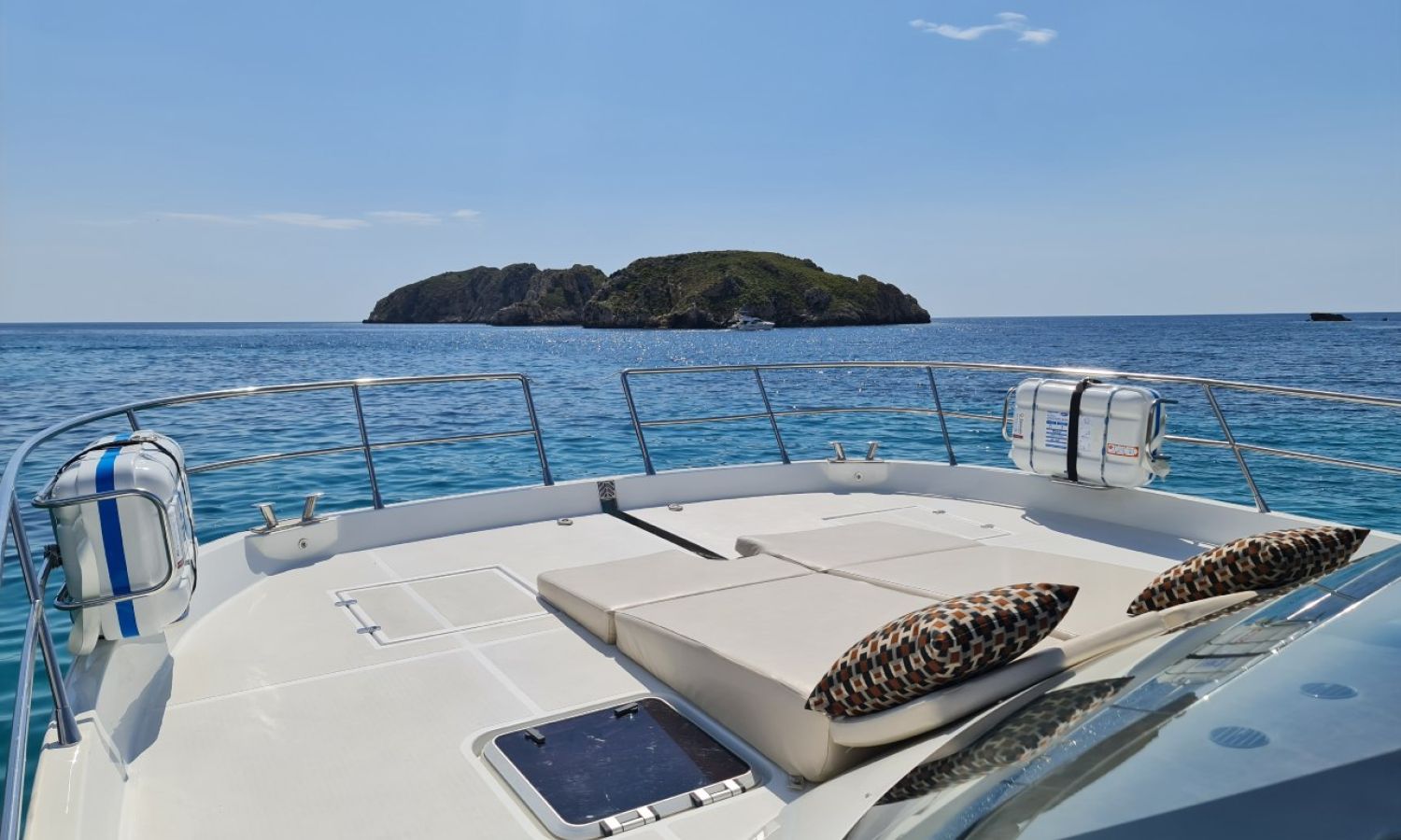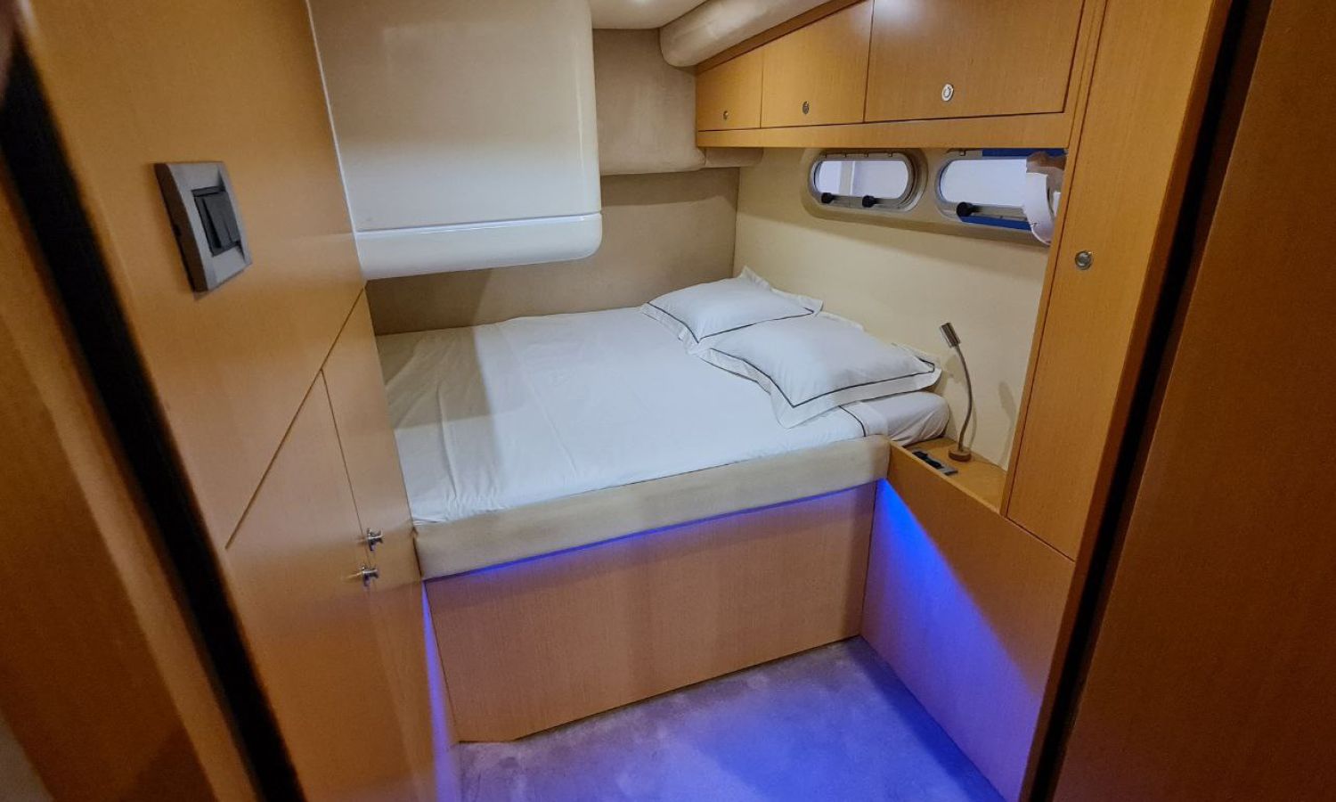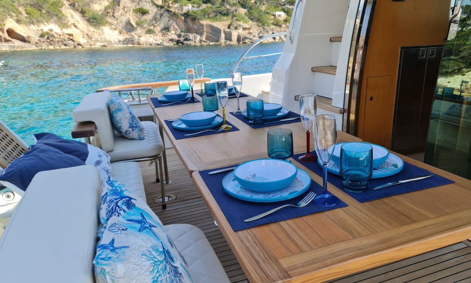 Toldo bimini - Molinete de ancla eléctrico - Mesa en la bañera - Pasarela de acero inoxidable y teca - Lona de fondeo - 2 escaleras de baño - Flybridge - Solàrium de popa - Equipo audio - Cargador de baterías - Toma de puerto - Generador - Aire acondicionado - Calentador de agua - Cocina a gas - Nevera - Horno-microondas - Fregadero - Gps/Plotter/Sonda - Vhf - 4 camarotes dobles.Descripción embarcación