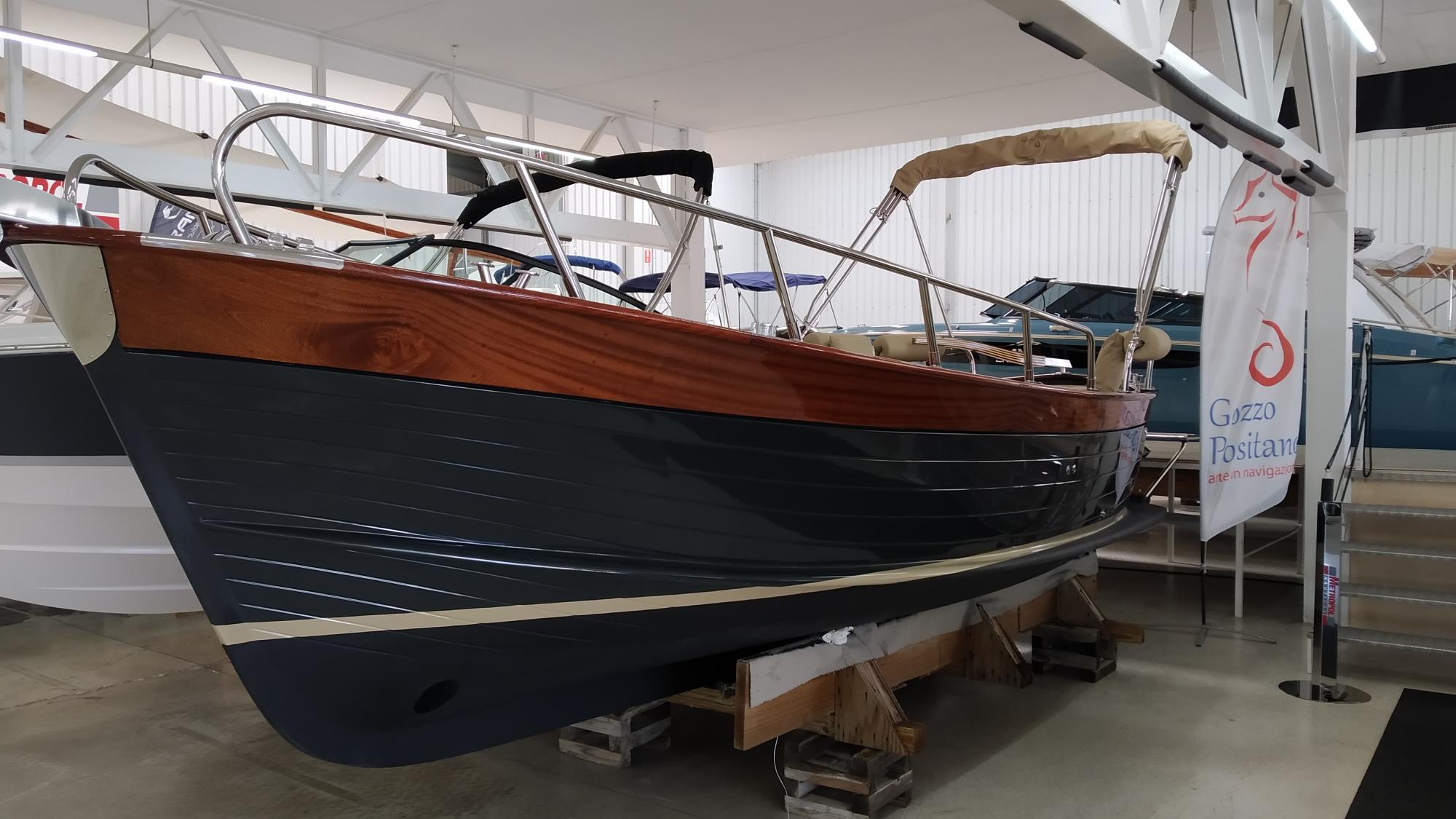 Embarcación en fabricación. Entrega en febrero 2026. Fotos de archivo, los colores y el equipamiento pueden no corresponder exactamente a la unidad ofrecida. Modelo Positano 23 del astillero napolitano Gozzo Positano, de 7 metros de eslora total. Barco con cómoda plataforma de baño, distribución espaciosa.AST-Nº 02