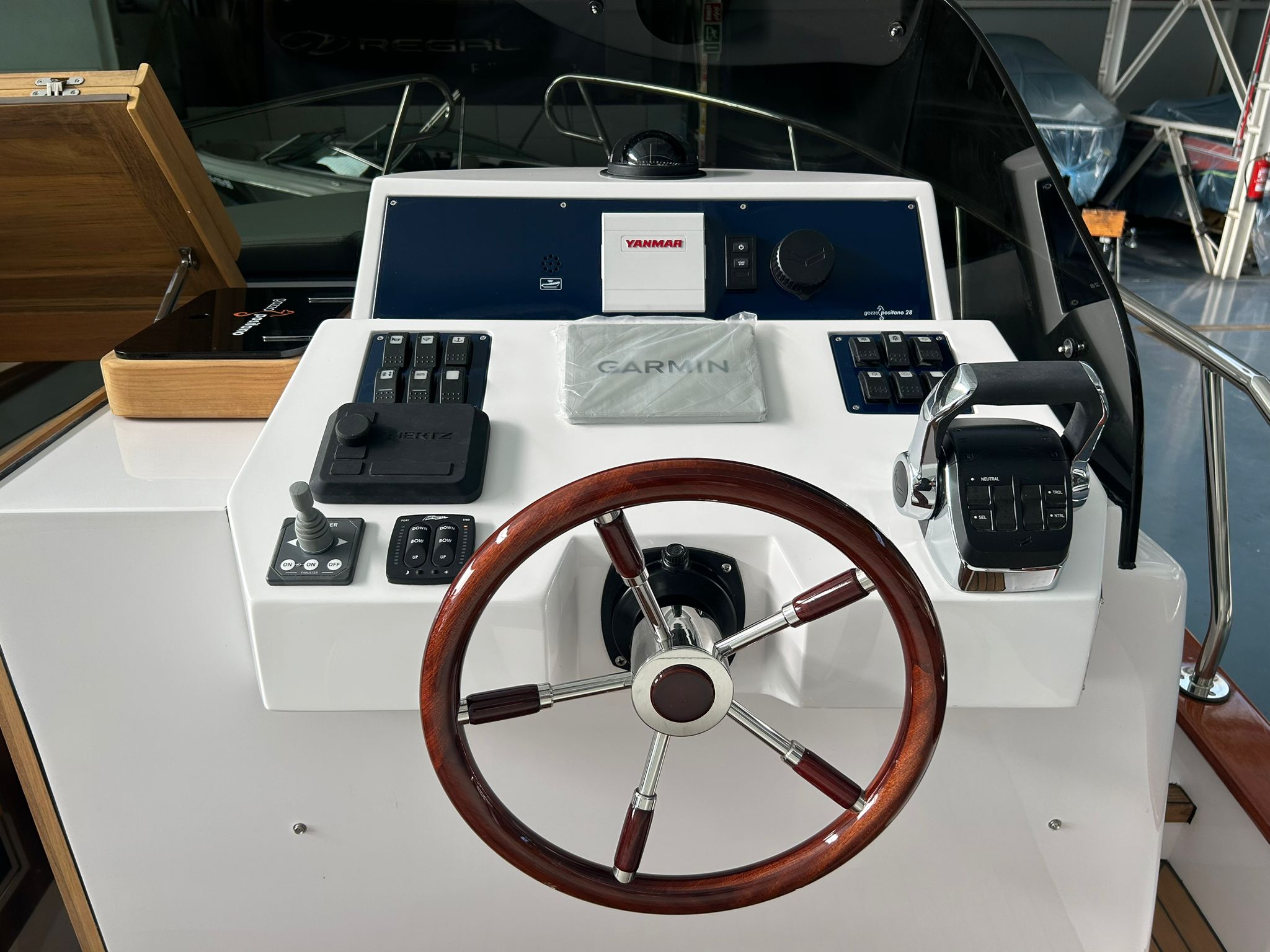 Toldo parasol - Molinete eléctrico con ancla y cadena - Nevera bañera - Mesa bañera - Cocina de gas y fregadero - Hélice de proa - Colchonetas exteriores cubierta y asientos bañera - Funda cuadro de mandos - Plataforma de popa en teka con escalera - Cargador de batería y toma puerto 220 V - Equipo de música y altavoces - Suplemento toldo parasol microperforado (1 posterior y 1 lateral) - GPS Garmin 7" - Luces led bañera - Preparación, botadura y entrega con prueba de mar - Transporte astillero a Costa Brava.Descripción embarcación