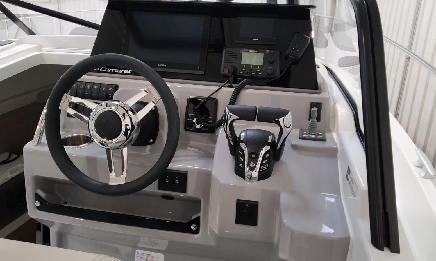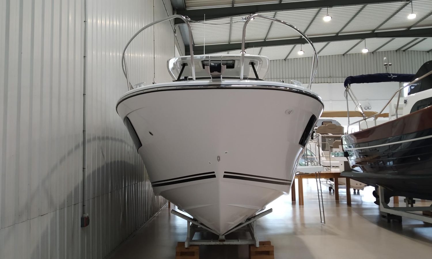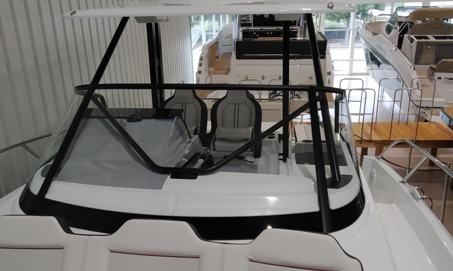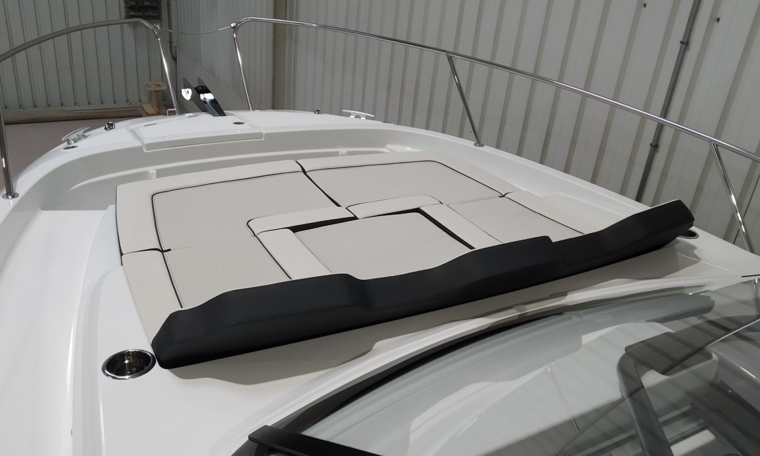 Nivel de Equipamiento Premiere - Pack Confort - Pack Audio Fusión - Cortinas interiores - T-TOP techo de Polyester - Kit de amarre - Kit de Fondeo - Toldo para bañera de popa para T-Top - Toldo para bañera en proa - Pack electrinico Garmin mejorado 1223 XSV - Radio VHF GARMIN 215I AIS - Propulsor de proa - Claxón - Plataformas de baño en Polyester - Mesa de bañera en Polyester - Panel en T-Top de apertura manual - Extra para baño de sol en proa XXL - Banco lateral retractil babor - Respaldo ajustable para baño de sol bañera popa - Flaps automáticos Zipwake - Frigorífico en bañera y almacenamiento en Leaning Post - Cama doble en el salón - Panel de ducha + tapa de aseo - Plancha de gas en la cocina de bañera - Tapicería de bañera en proa con asientos Meridian - Funda de consola y de bancada puesto de pilotaje - Escalera de baño y guardamancebos para terraza lateral - Mástil de Esquí estraible - Pre-Rigging motores Yamaha 2x200-250 DBW eléctrico - Tranporte desde Astillero, Costa-Brava - Instalación motores incluido - Pintura Antifouling - Botadura y entrega.Descripción embarcación