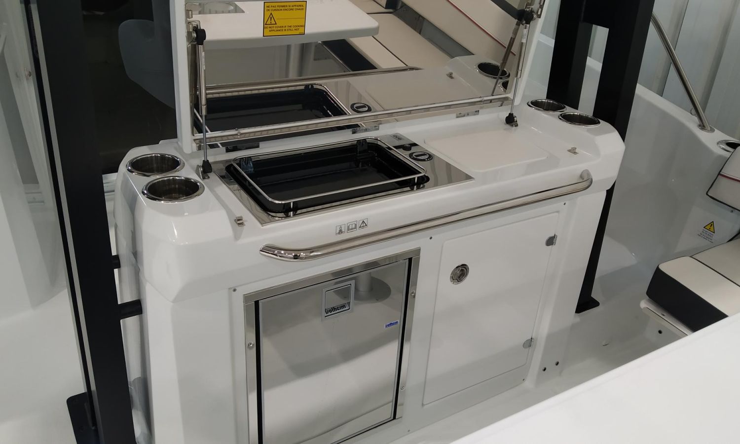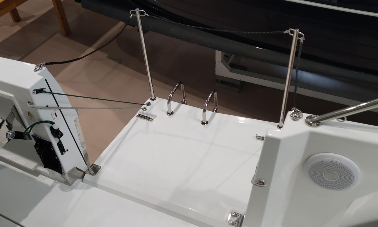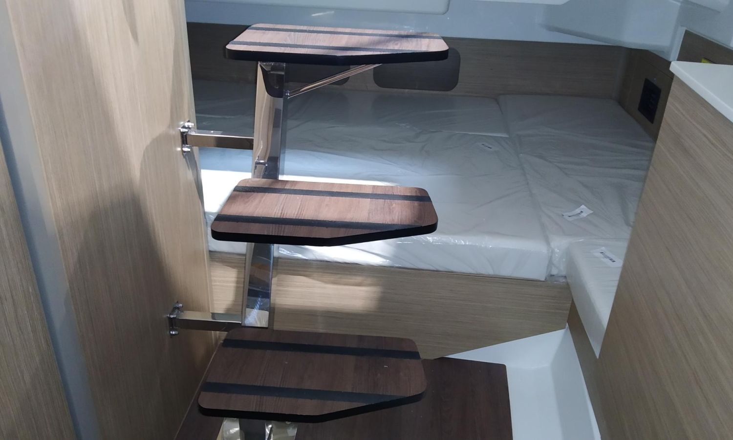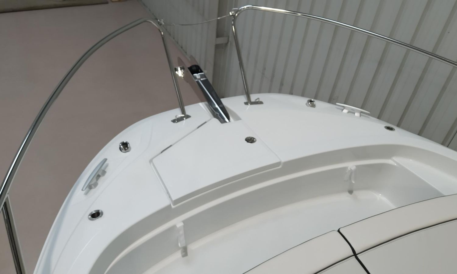 Nivel de Equipamiento Premiere - Pack Confort - Pack Audio Fusión - Cortinas interiores - T-TOP techo de Polyester - Kit de amarre - Kit de Fondeo - Toldo para bañera de popa para T-Top - Toldo para bañera en proa - Pack electrinico Garmin mejorado 1223 XSV - Radio VHF GARMIN 215I AIS - Propulsor de proa - Claxón - Plataformas de baño en Polyester - Mesa de bañera en Polyester - Panel en T-Top de apertura manual - Extra para baño de sol en proa XXL - Banco lateral retractil babor - Respaldo ajustable para baño de sol bañera popa - Flaps automáticos Zipwake - Frigorífico en bañera y almacenamiento en Leaning Post - Cama doble en el salón - Panel de ducha + tapa de aseo - Plancha de gas en la cocina de bañera - Tapicería de bañera en proa con asientos Meridian - Funda de consola y de bancada puesto de pilotaje - Escalera de baño y guardamancebos para terraza lateral - Mástil de Esquí estraible - Pre-Rigging motores Yamaha 2x200-250 DBW eléctrico - Tranporte desde Astillero, Costa-Brava - Instalación motores incluido - Pintura Antifouling - Botadura y entrega.Descripción embarcación