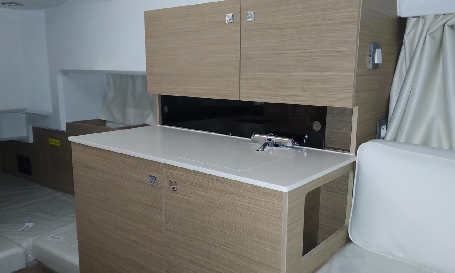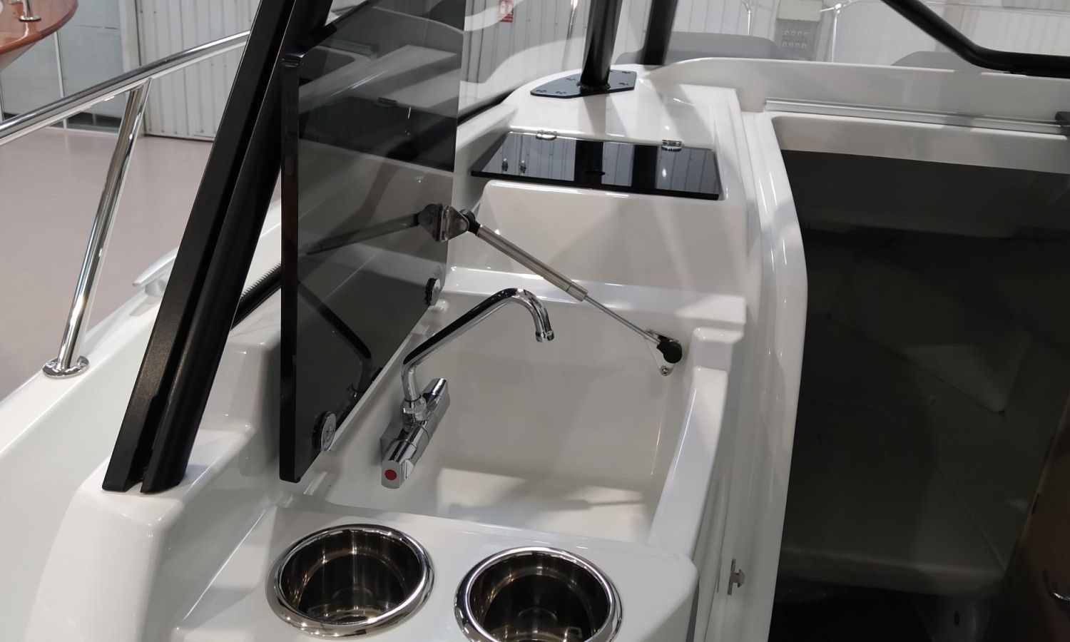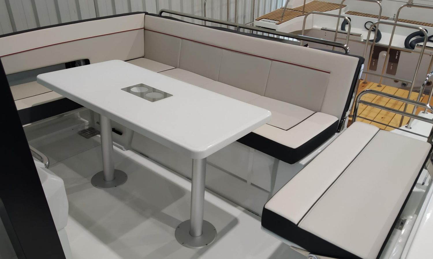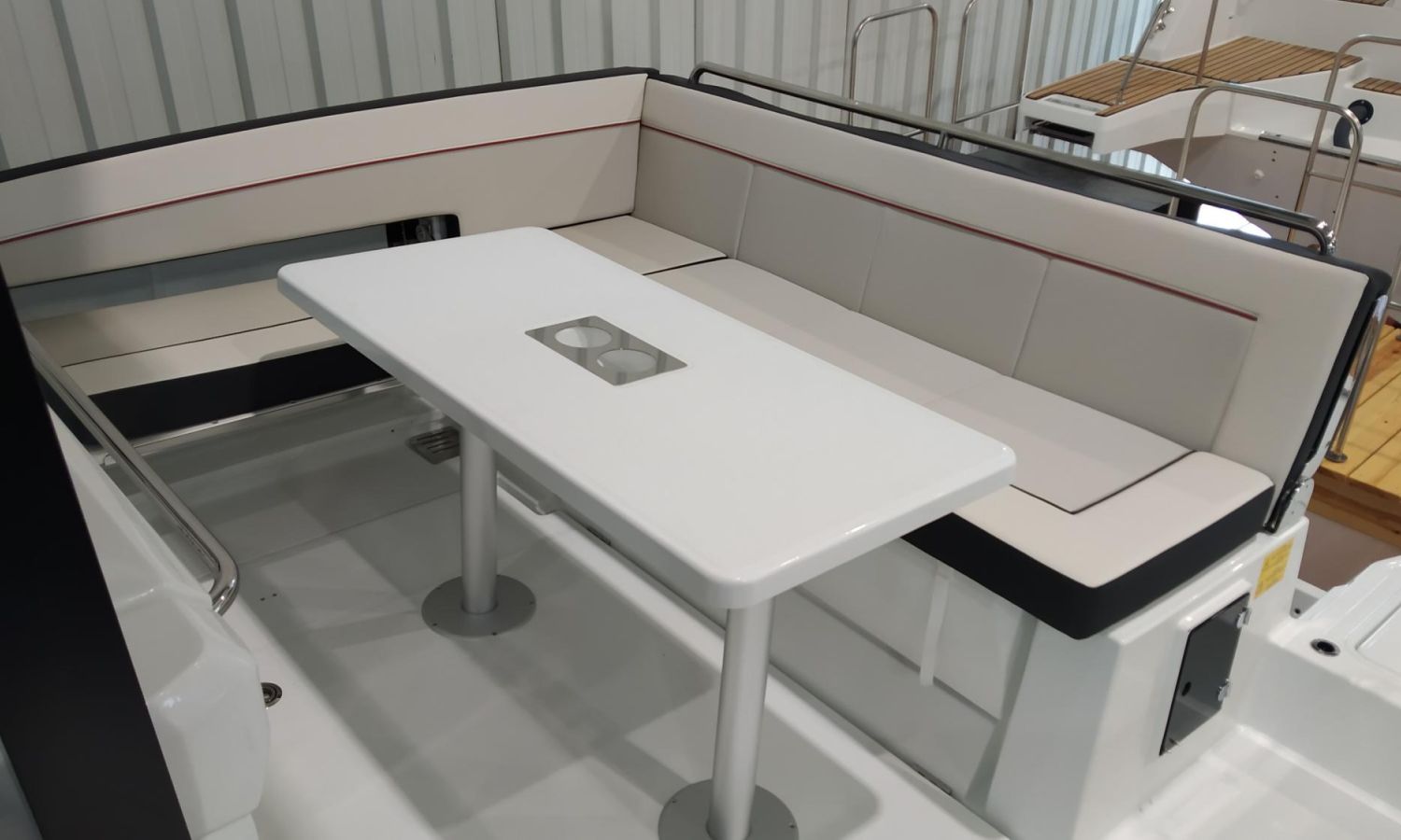Nivel de Equipamiento Premiere - Pack Confort - Pack Audio Fusión - Cortinas interiores - T-TOP techo de Polyester - Kit de amarre - Kit de Fondeo - Toldo para bañera de popa para T-Top - Toldo para bañera en proa - Pack electrinico Garmin mejorado 1223 XSV - Radio VHF GARMIN 215I AIS - Propulsor de proa - Claxón - Plataformas de baño en Polyester - Mesa de bañera en Polyester - Panel en T-Top de apertura manual - Extra para baño de sol en proa XXL - Banco lateral retractil babor - Respaldo ajustable para baño de sol bañera popa - Flaps automáticos Zipwake - Frigorífico en bañera y almacenamiento en Leaning Post - Cama doble en el salón - Panel de ducha + tapa de aseo - Plancha de gas en la cocina de bañera - Tapicería de bañera en proa con asientos Meridian - Funda de consola y de bancada puesto de pilotaje - Escalera de baño y guardamancebos para terraza lateral - Mástil de Esquí estraible - Pre-Rigging motores Yamaha 2x200-250 DBW eléctrico - Tranporte desde Astillero, Costa-Brava - Instalación motores incluido - Pintura Antifouling - Botadura y entrega.Descripción embarcación
