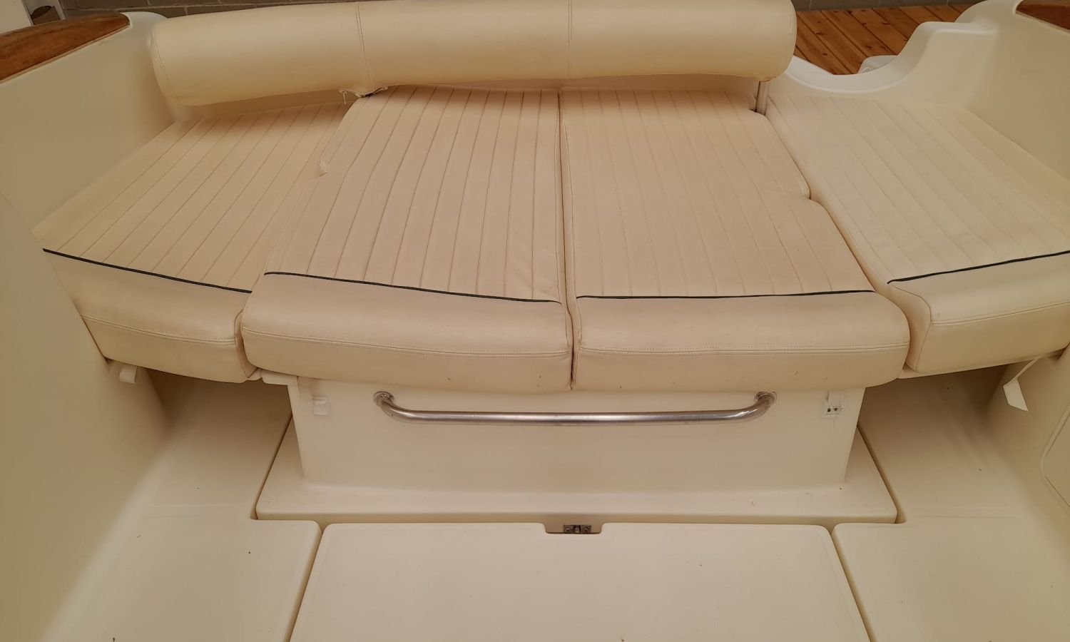 Toldo parasol - Escalera de baño - Ducha en popa - Cojines solárium popa - Mesa en la bañera - Equipo de audio - Sonda Garmin - Nevera 12 V. - Cocina electrica - Molinete de ancla y cadena - Antifouling.Descripción embarcación