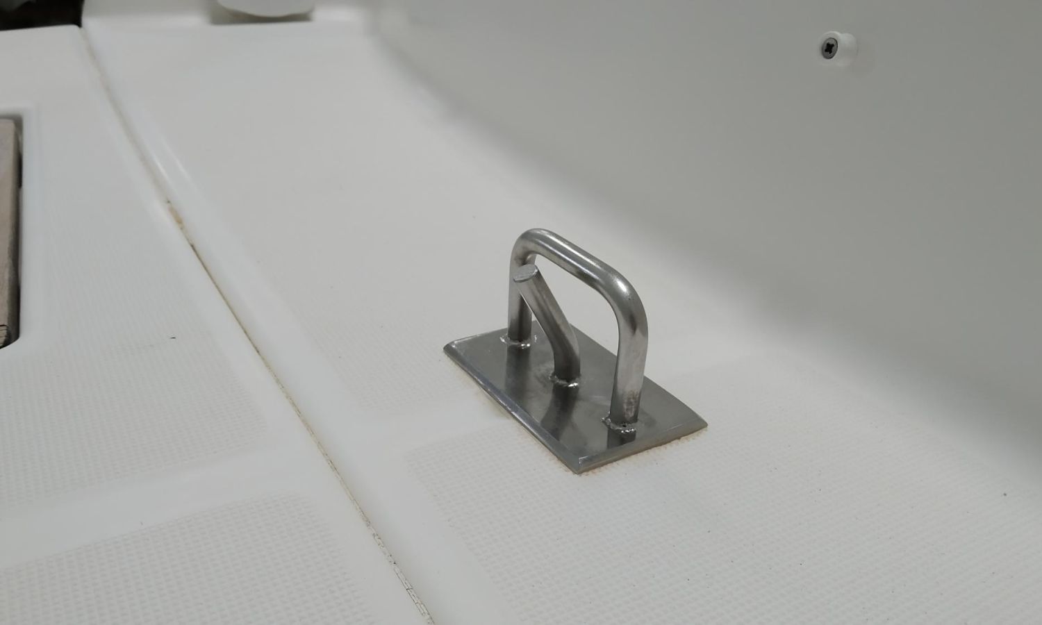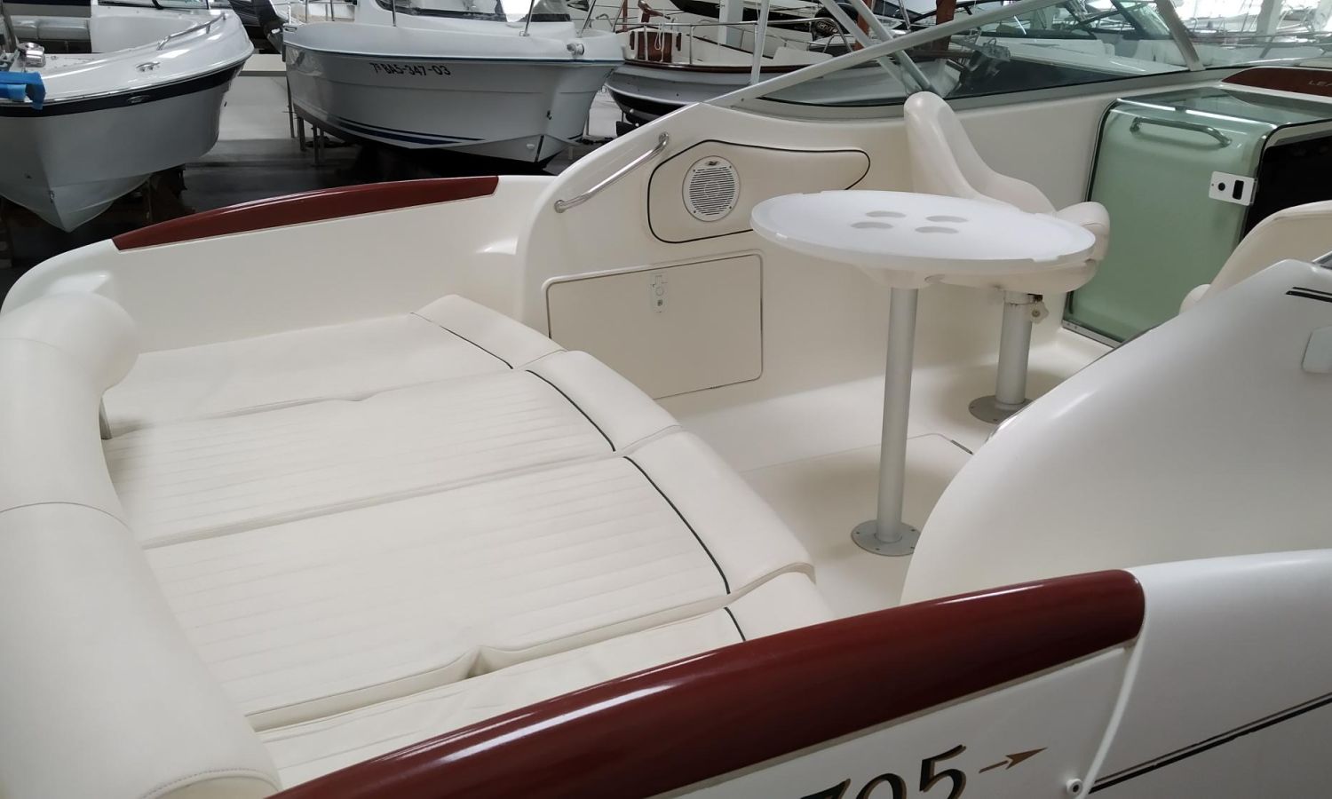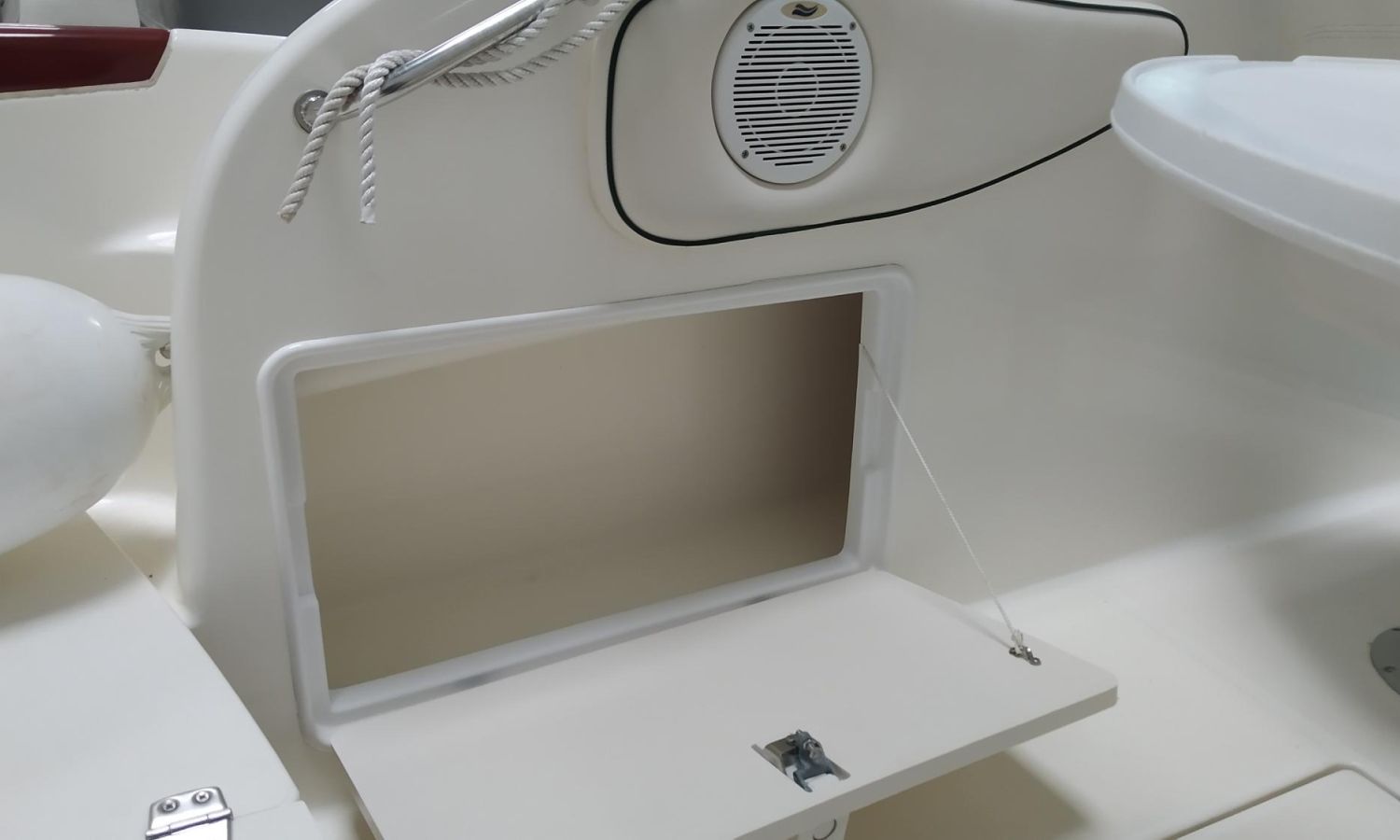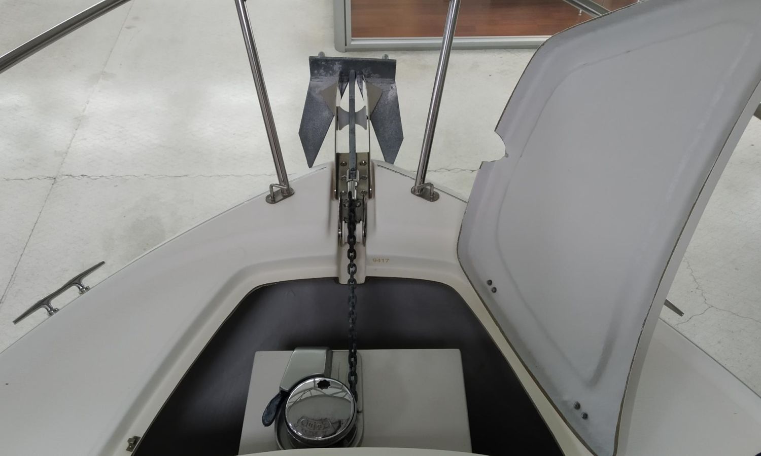 Ducha a popa - Toldo parasol - Molinete eléctrico con ancla y cadena - Radio - Mesa en bañera - Compás - Nevera eléctrica en cabina - Solárium popa - Plataforma de baño con escalera.Descripción embarcación