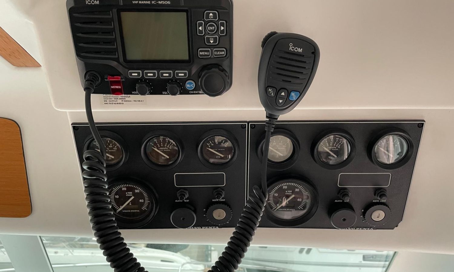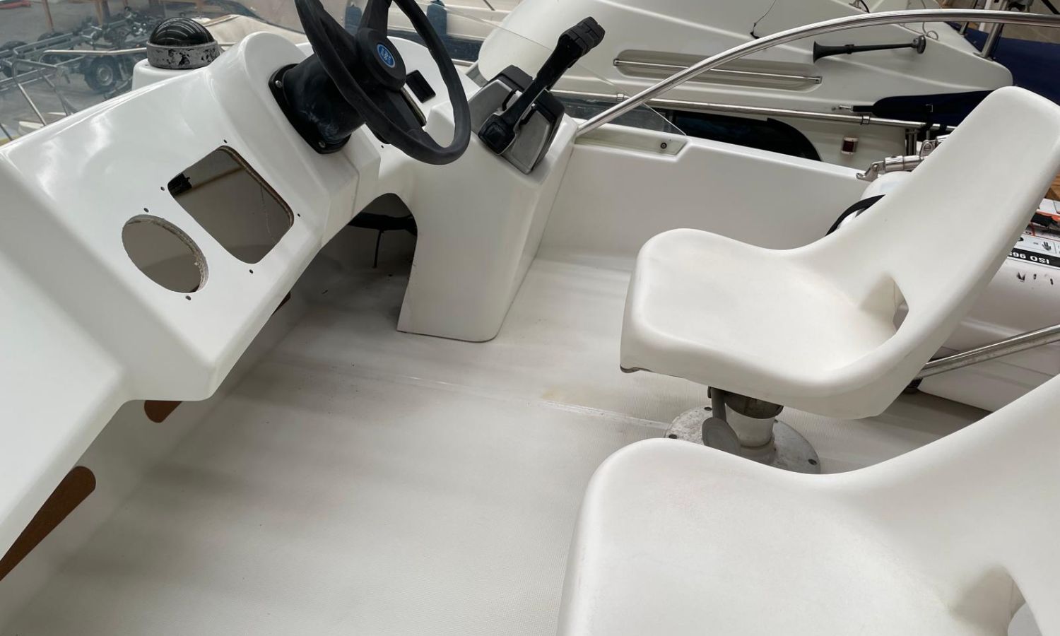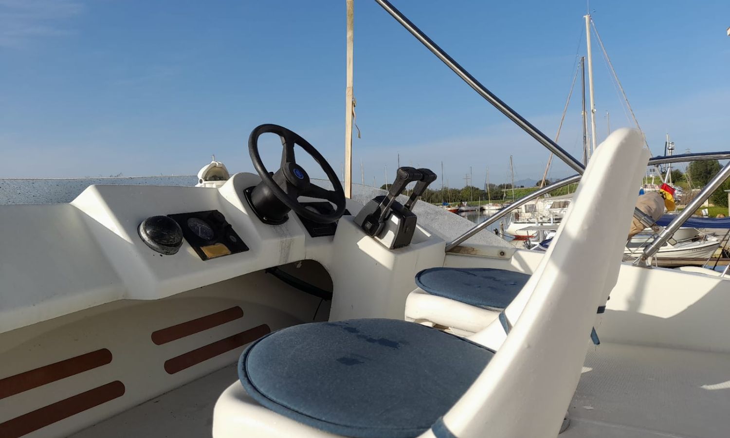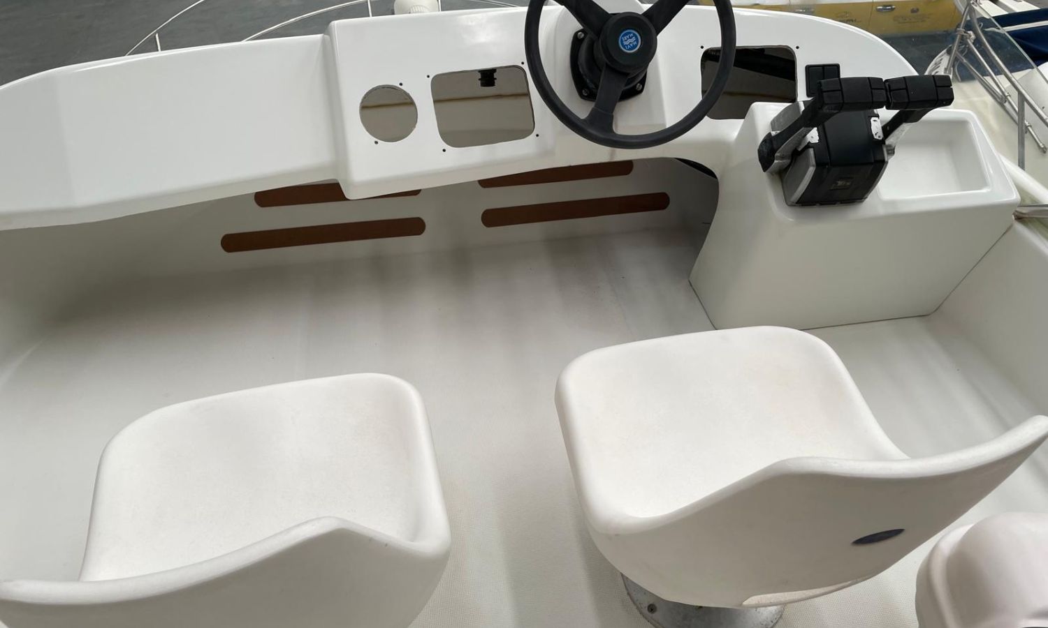 Molinete de ancla eléctrico - Toma de puerto 220 V - Cargador de baterías - WC marino con depósito de aguas negras - VHF - Piloto automático - GPS/Plotter/Sonda - Nevera 12 V - Cocina de gas - Bimini en fly - Plataforma de baño - Convertidor 12 V / 220 V.Descripción embarcación