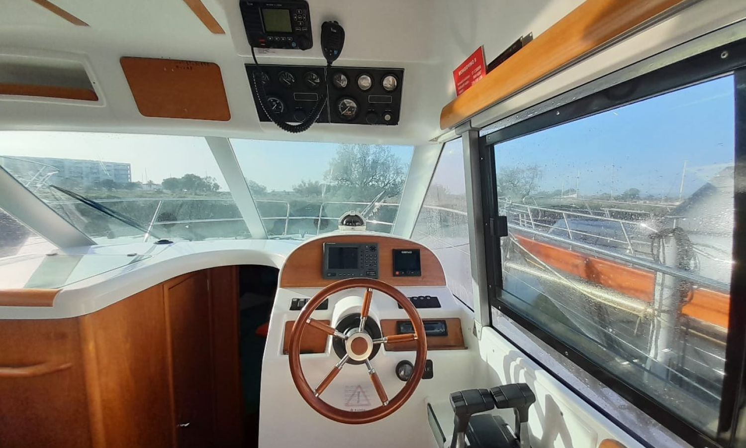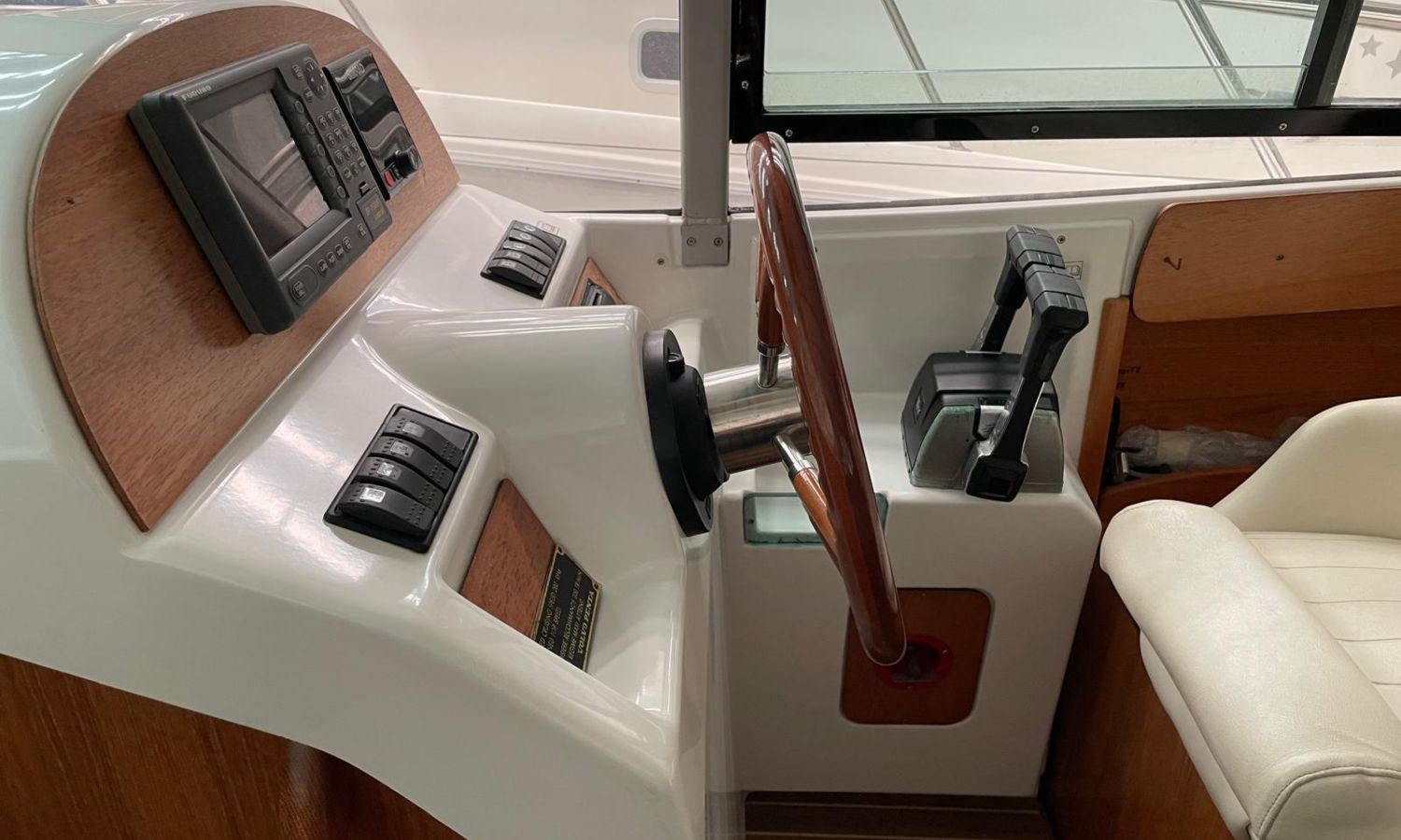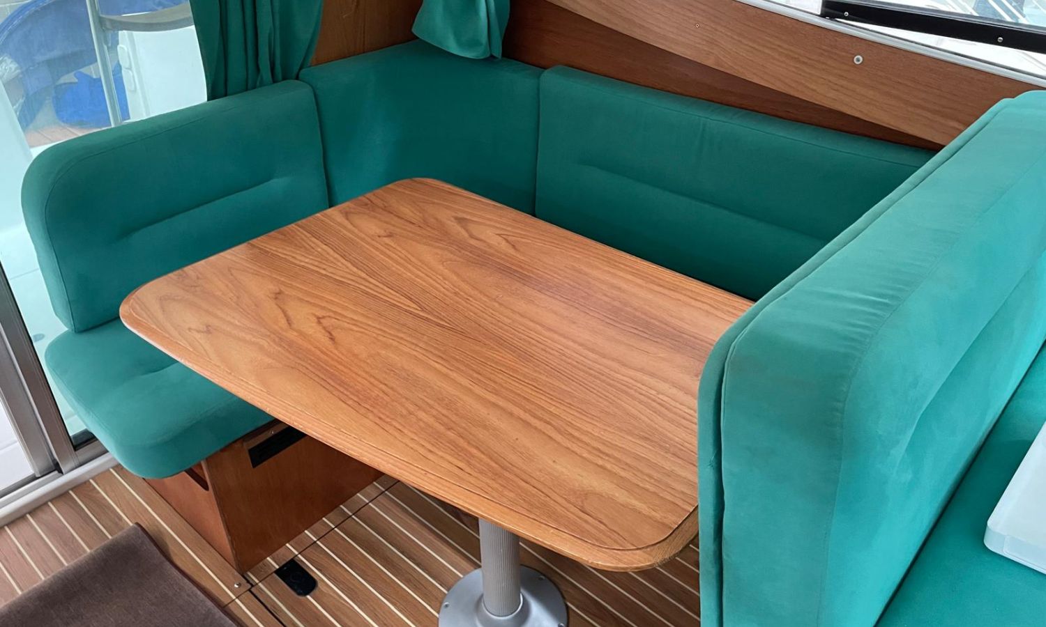 Molinete de ancla eléctrico - Toma de puerto 220 V - Cargador de baterías - WC marino con depósito de aguas negras - VHF - Piloto automático - GPS/Plotter/Sonda - Nevera 12 V - Cocina de gas - Bimini en fly - Plataforma de baño - Convertidor 12 V / 220 V.Descripción embarcación