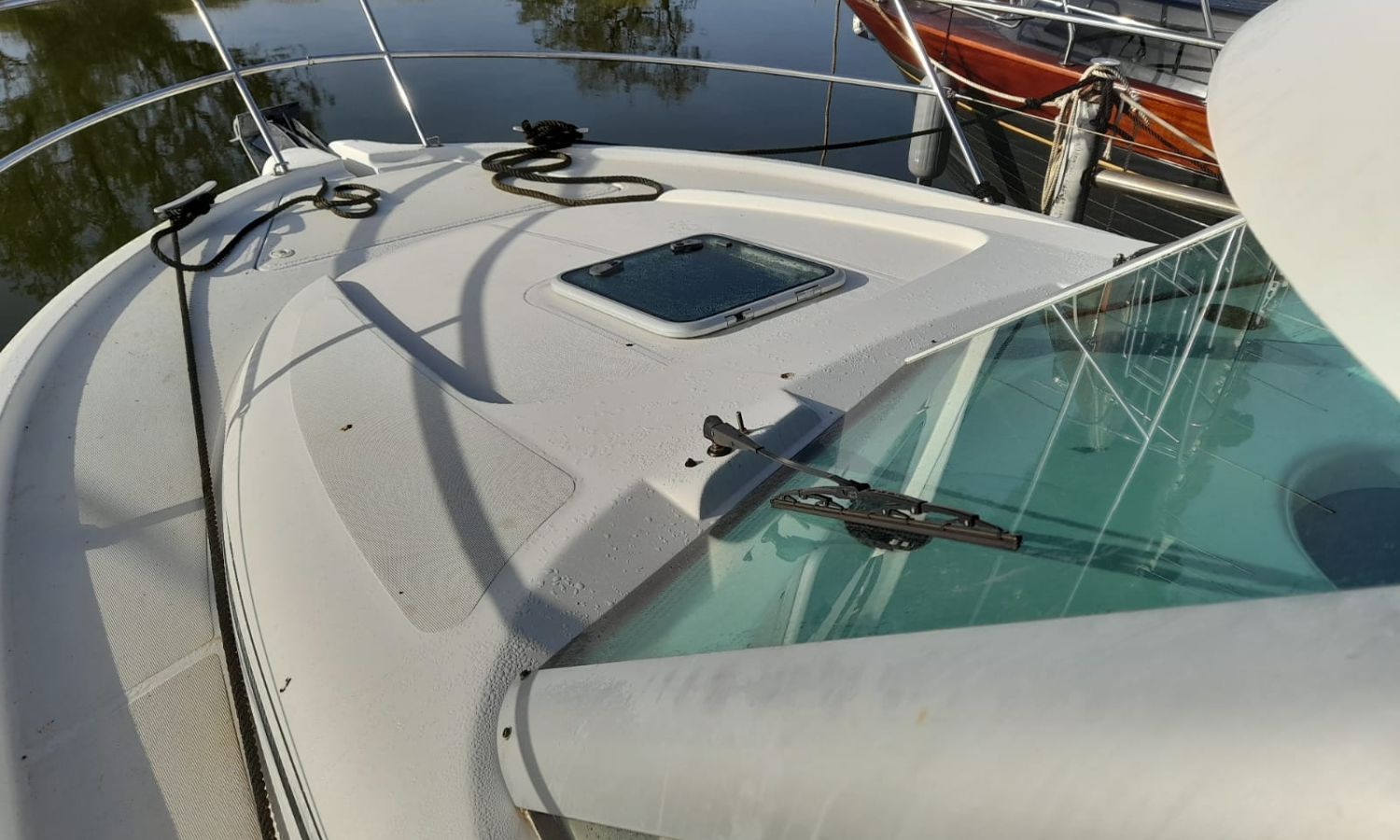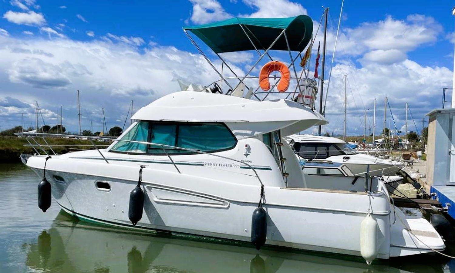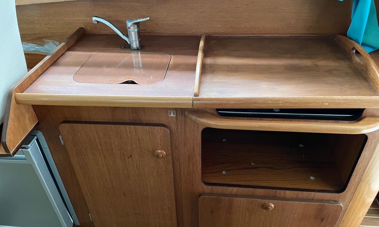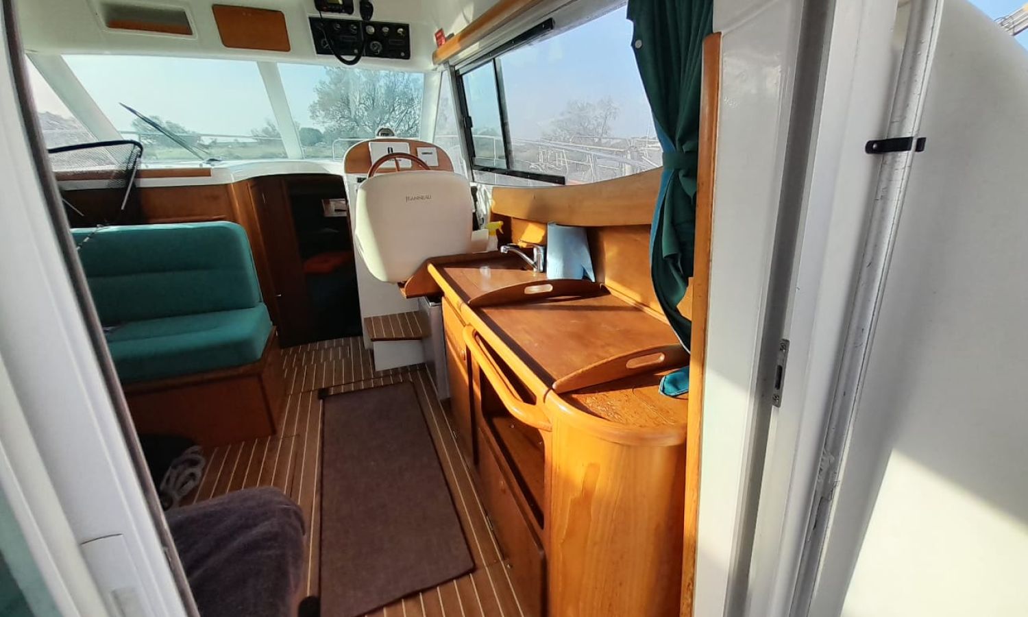 Molinete de ancla eléctrico - Toma de puerto 220 V - Cargador de baterías - WC marino con depósito de aguas negras - VHF - Piloto automático - GPS/Plotter/Sonda - Nevera 12 V - Cocina de gas - Bimini en fly - Plataforma de baño - Convertidor 12 V / 220 V.Descripción embarcación