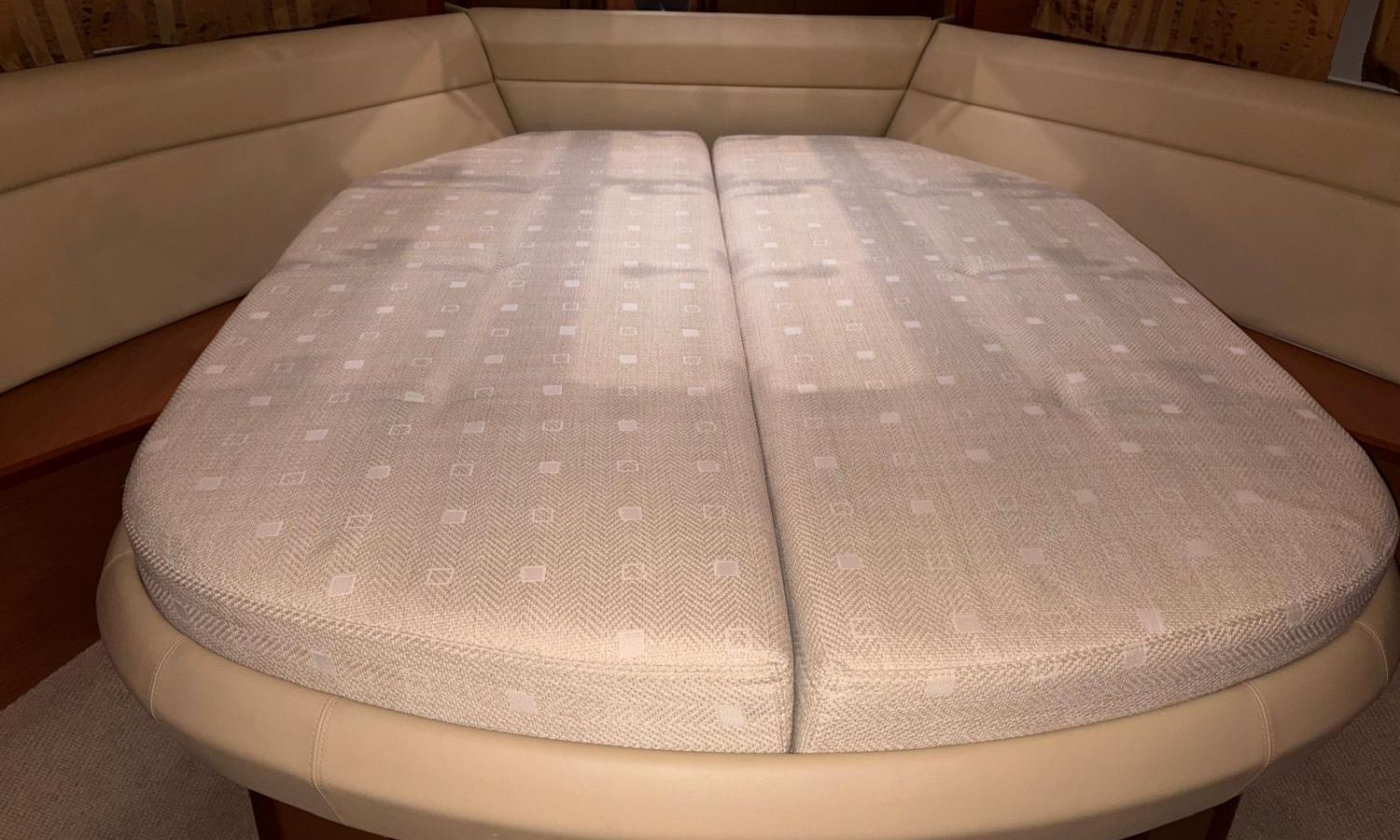Solárium proa - Lona cierre - Frigorífico bañera - Parrilla eléctrica - Molinete eléctrico con cadena y ancla - Hélice de proa - Contador de cadena - VHF - GPS+Plotter - Radar - Piloto automático - Generador - Aire acondicionado - Frigorífico en salón - Horno microondas - WC eléctrico - Depósito de aguas negras - Colchoneta mesa bañera - 2ª mesa bañera - Hard top eléctrico - Cargador de batería - Ducha a popa - Toma corriente puerto.Descripción embarcación
