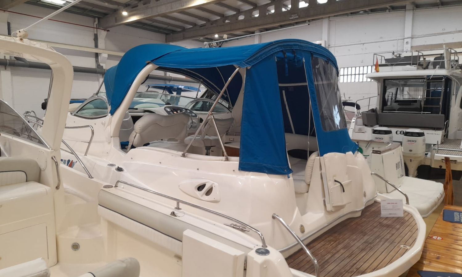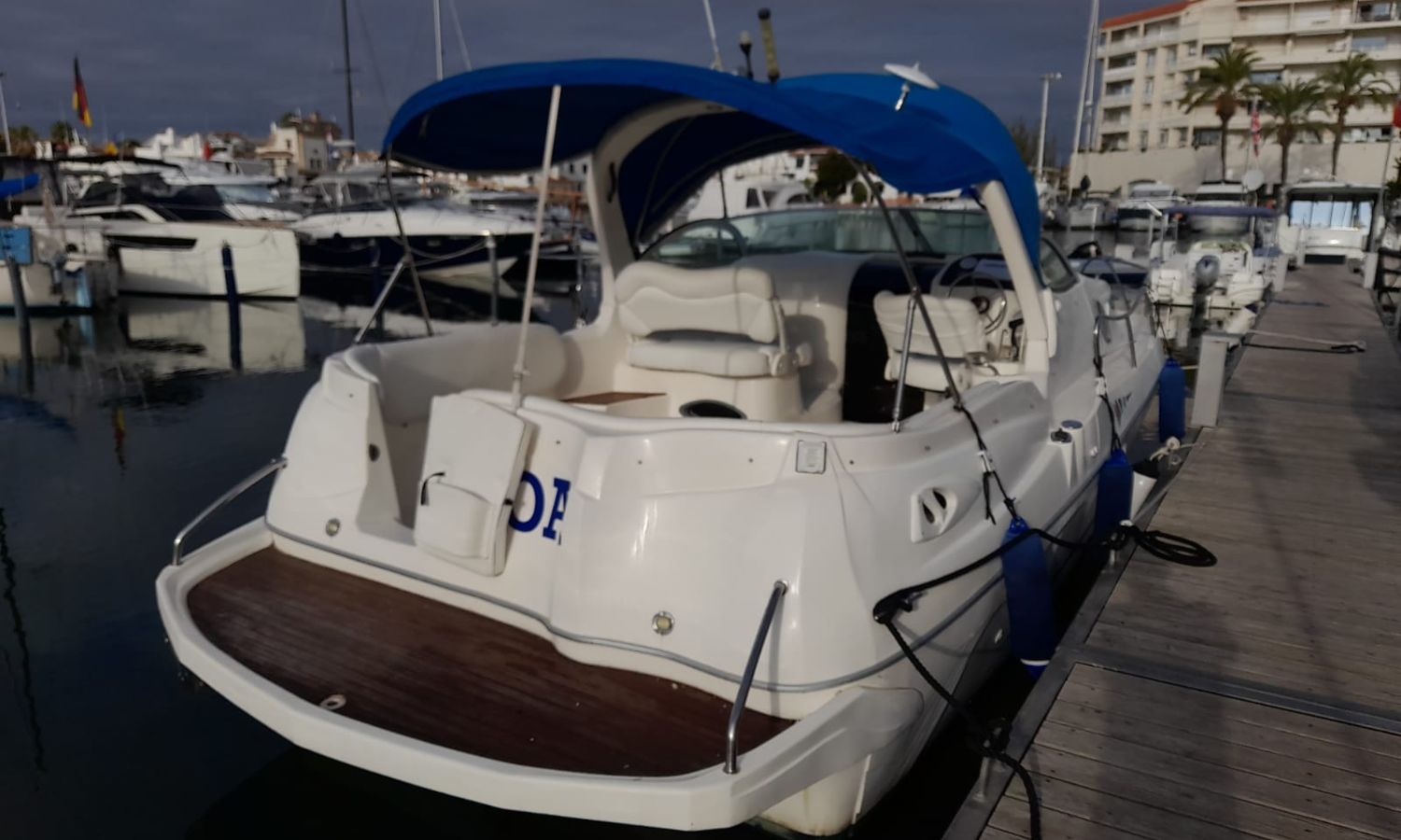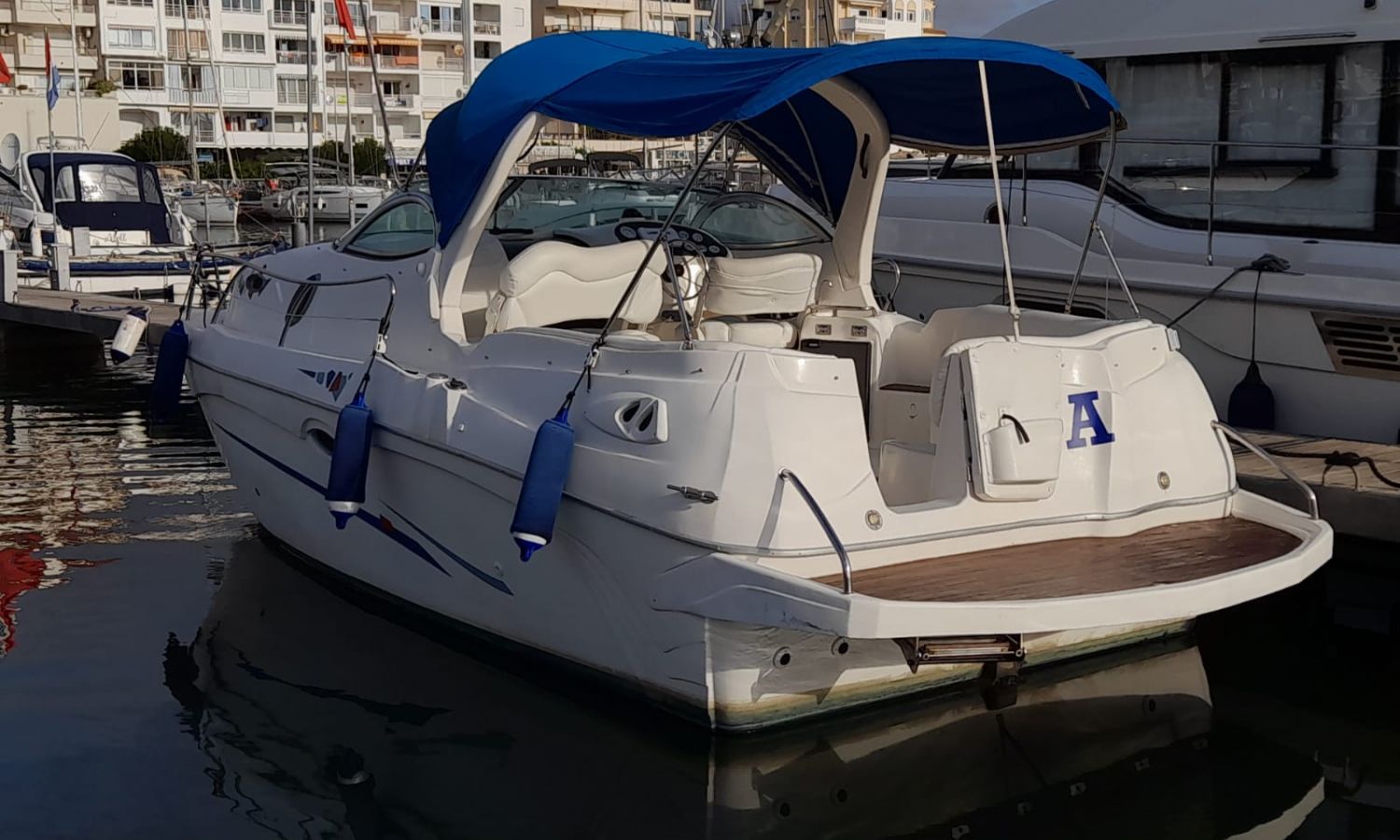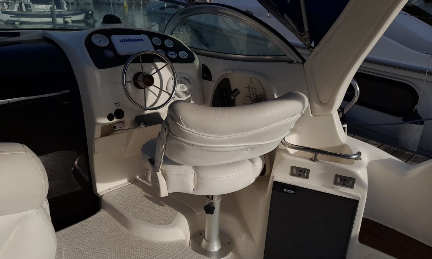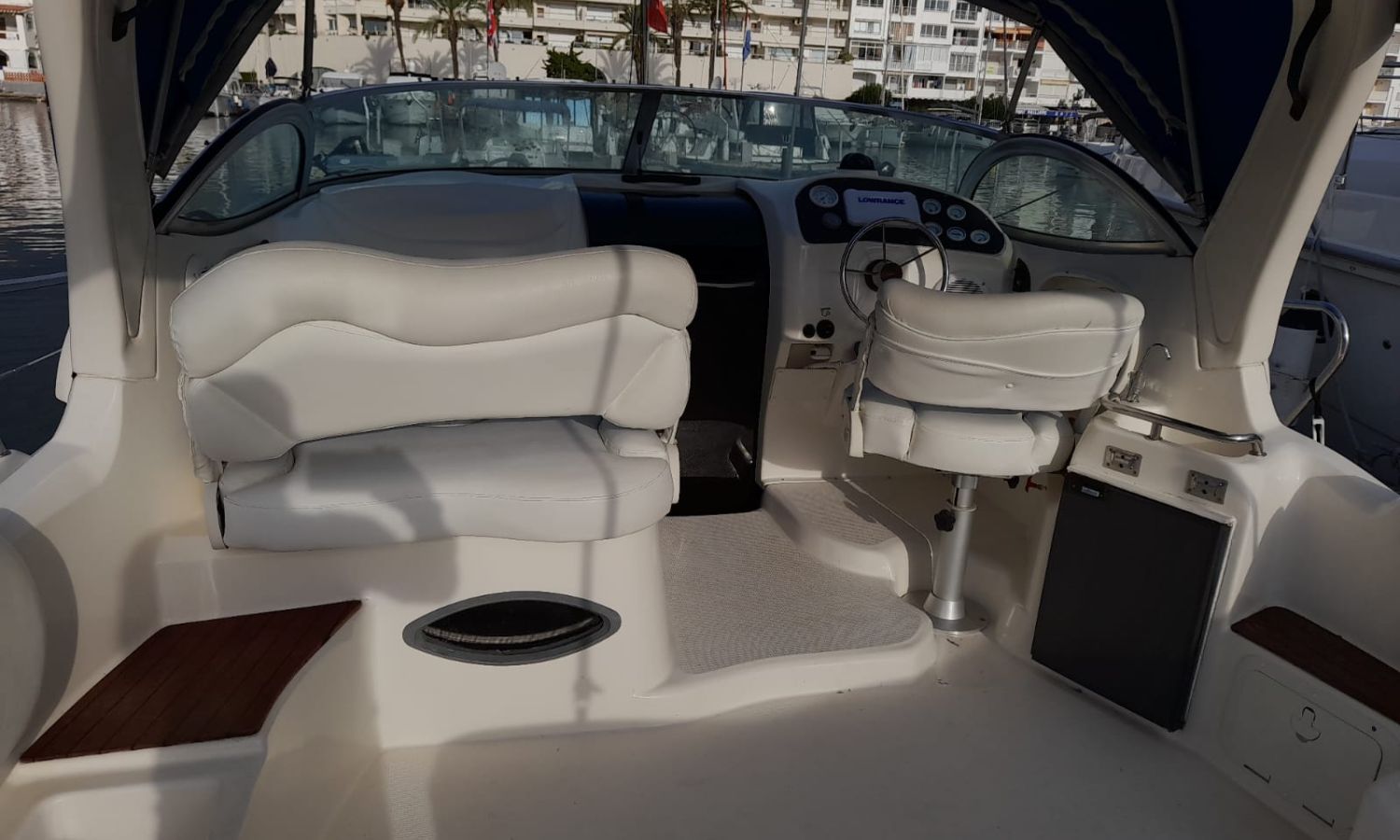 Toldo parasol - Lona de fondeo - Plataforma de baño con escalera - Ducha en popa - Mesa en la bañera - Nevera 12 V. - Toma de puerto - Cargador de baterias - Gps/Plotter/Sonda - VHF - Equipo de audio - Compás - Wc químico - Fregadero - Molinete de ancla eléctrico - Cojines solárium proa - Motor nuevo 2021 - Antifouling.Descripción embarcación