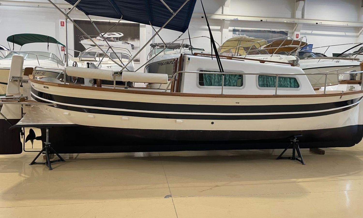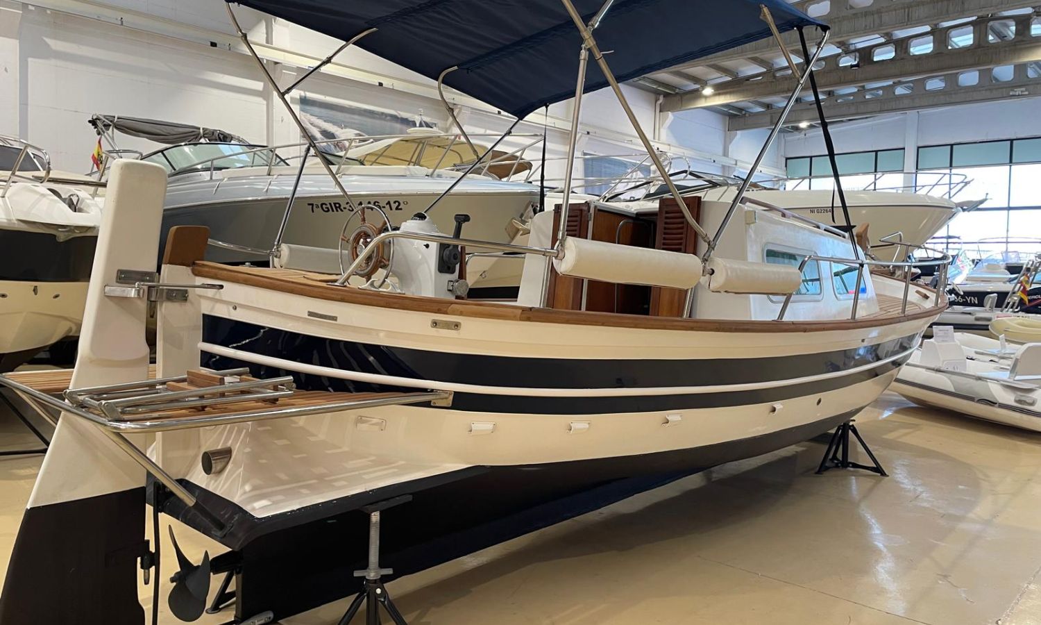 Toldo parasol - Molinete de ancla eléctrico - Teca - Cabina - Fregadero - Cocina de gas - Sonda - Compás - WC marino - Antifouling.