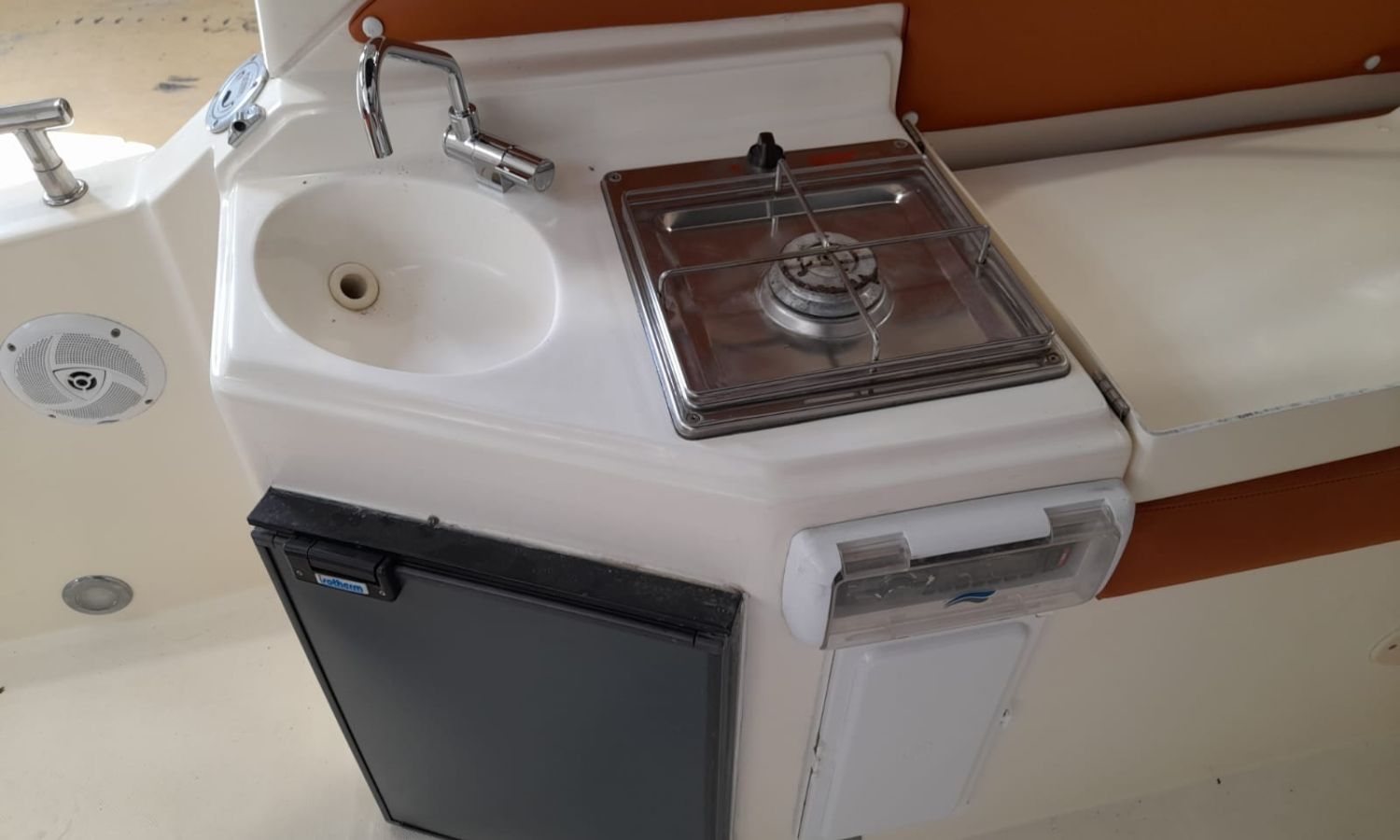 Toldo parasol - Ducha en popa - Plataforma de baño con escalera - Solárium de proa - Mesa el la bañera - Mueble-bar con fregadero - Nevera en la bañera 12V. - Cocina de gas - Compas - Equipo de audio - Sonda - Molinete eléctrico con ancla y cadena - WC marino con depósito de aguas negras - Cabina - Motor nuevo - Lona de fondeo - Antifouling.