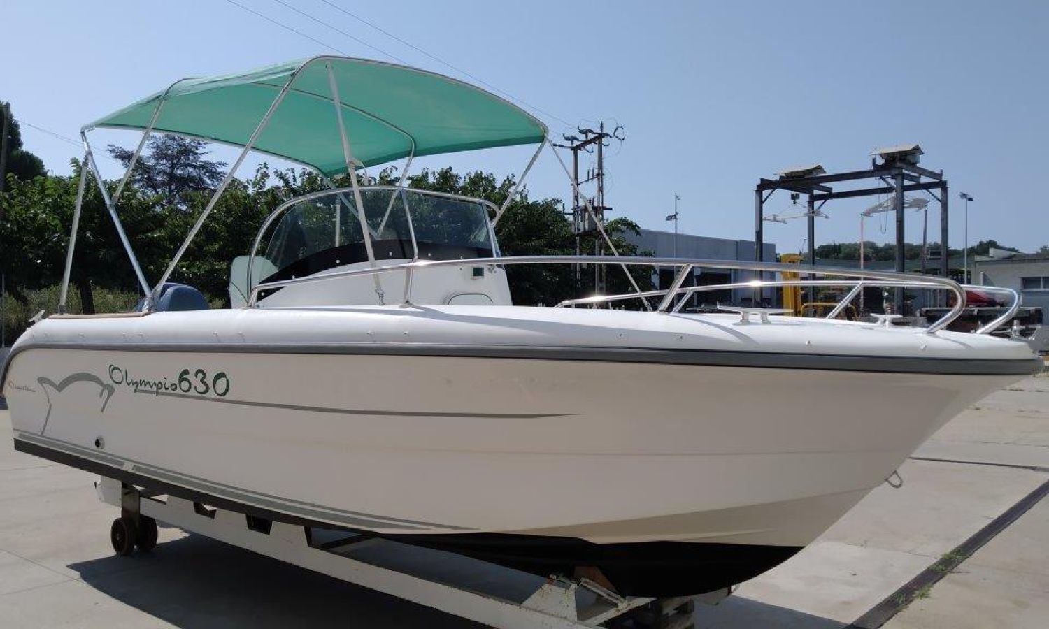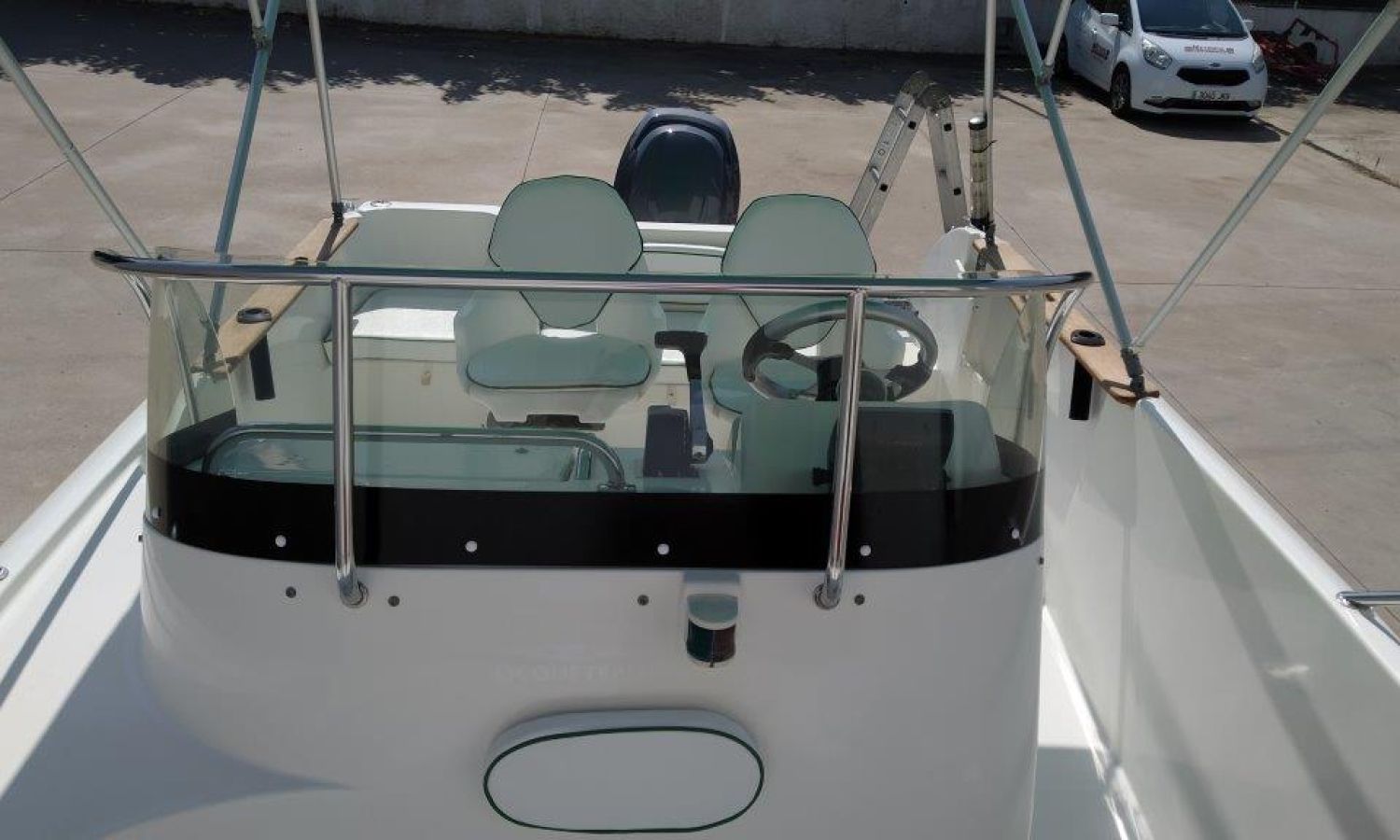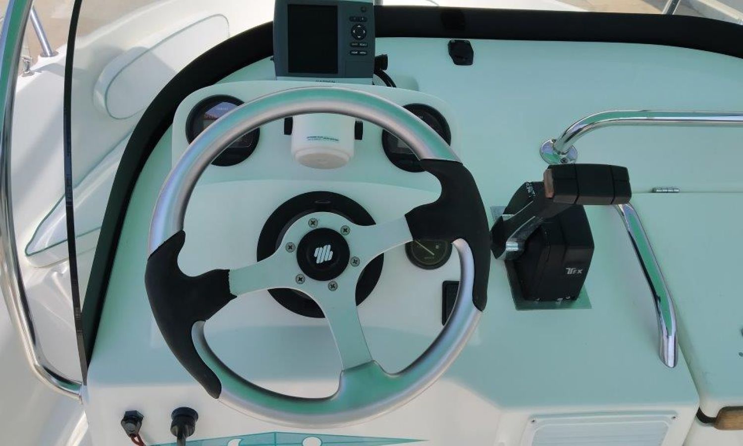 Bimini - Ducha en popa - Lona de consola - Dirección hidráulica - Mesa en proa - Solárium de proa - Sonda Garmin.Descripción embarcación