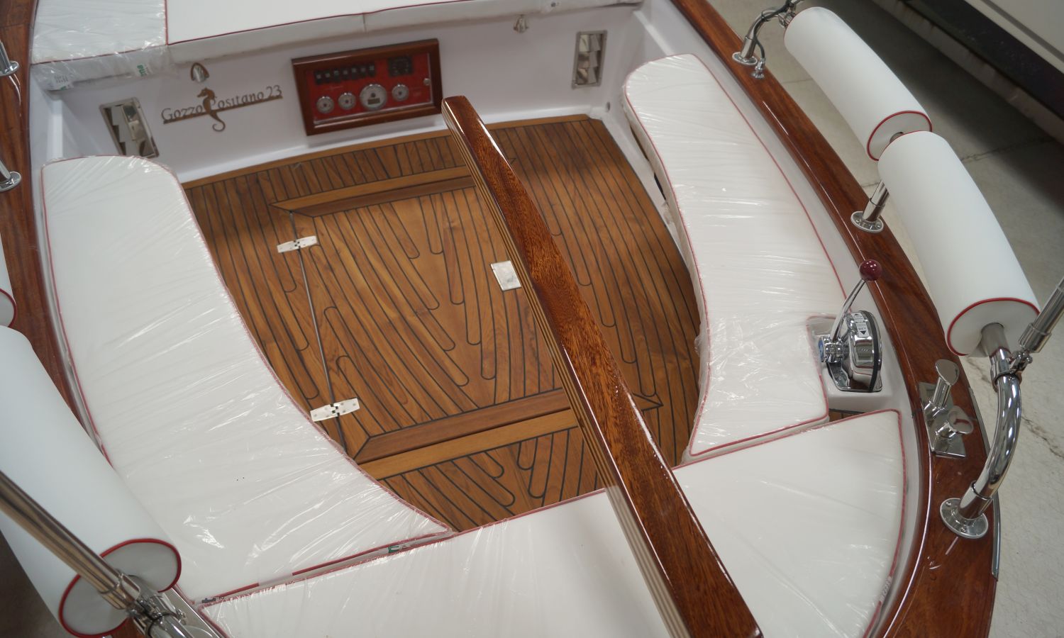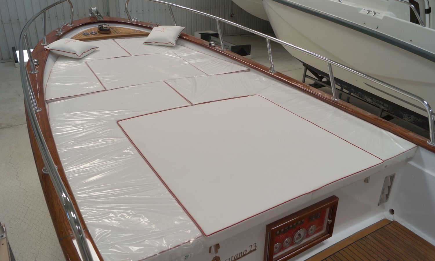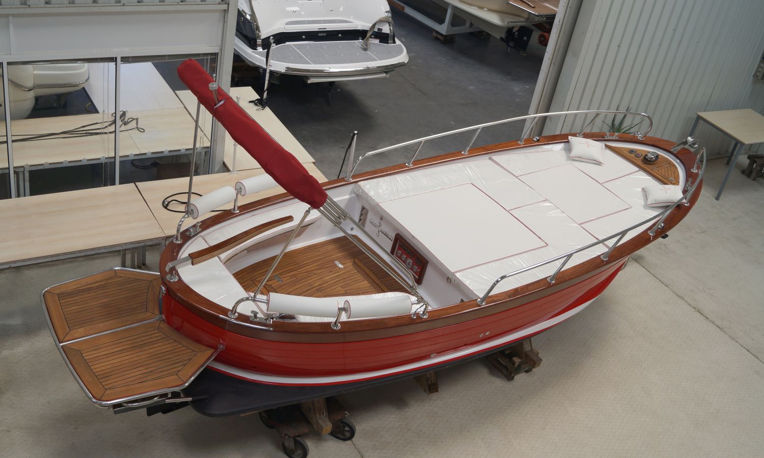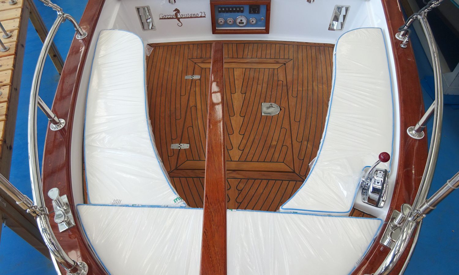 Toda una clásica Gozzo, con un solarium enorme para disfrutar al máximo de los días soleados.Además de su completo equipo estándar, dispone también de múltiples accesorios extra que le harán disfrutar de magníficos ratos en el mar. Hecha especialmente para nosotros, la Positano 23 sólo la encontrará aquí ya que es un modelo especialmente diseñado con detalles y materiales que hemos seleccionado. Esta embarcación sorprenderá por sus fantásticos acabados.