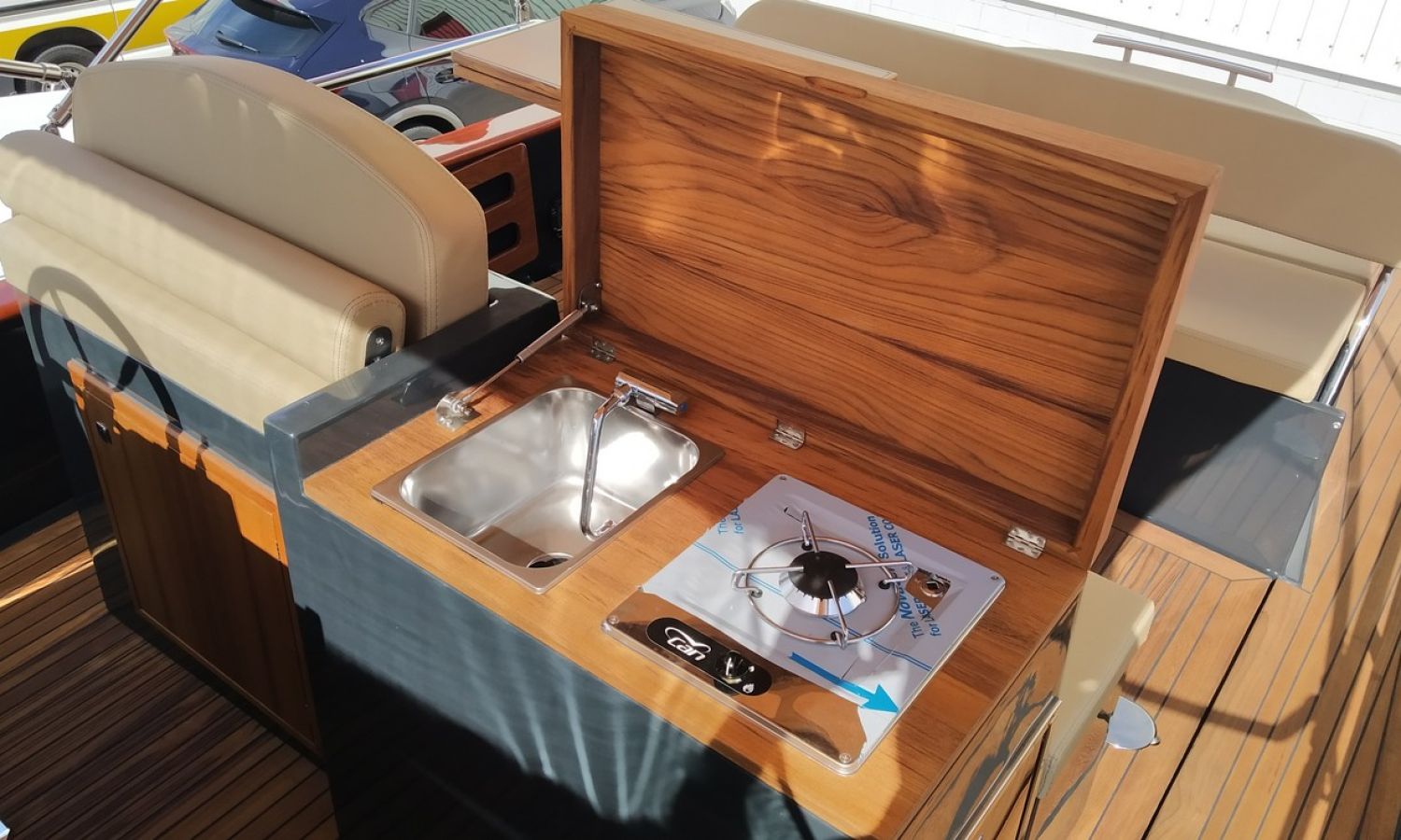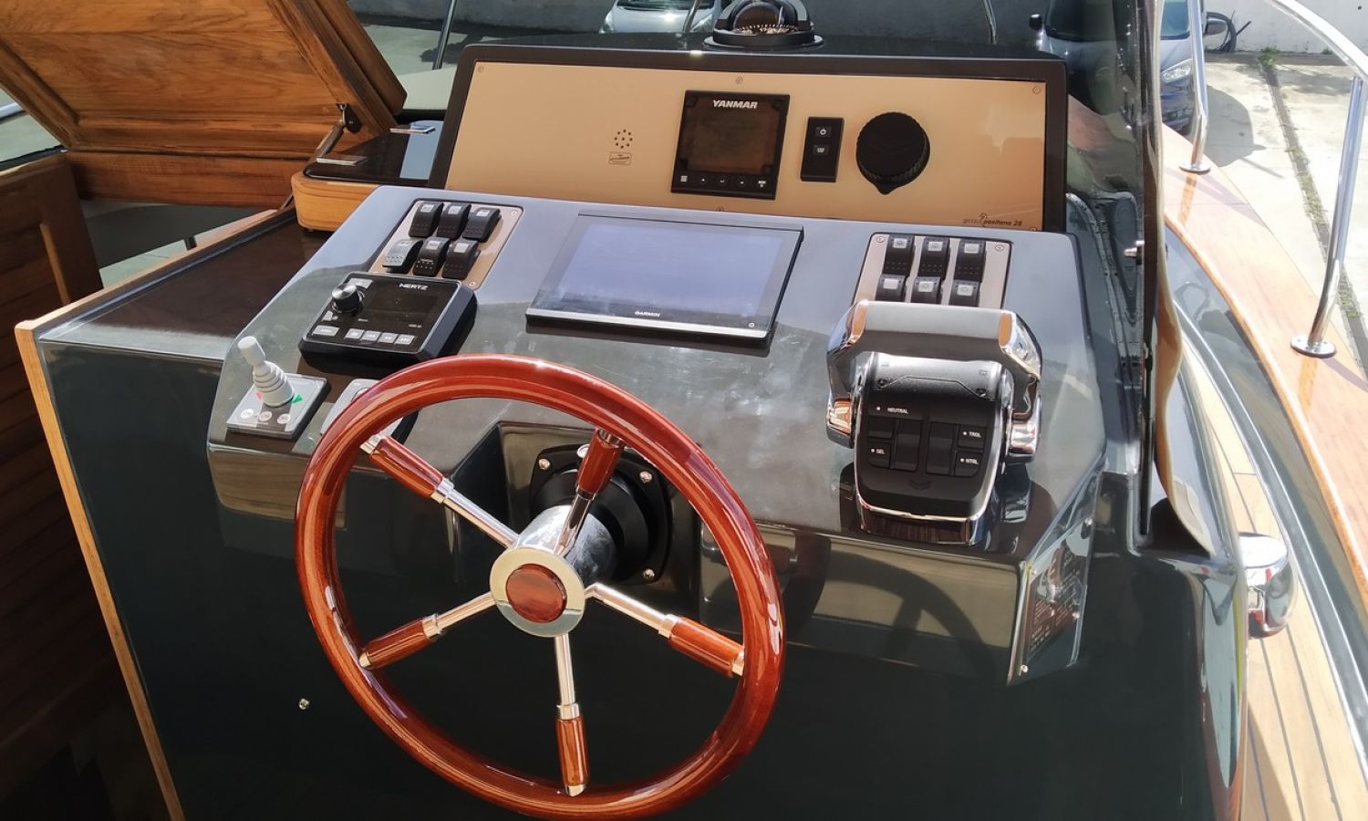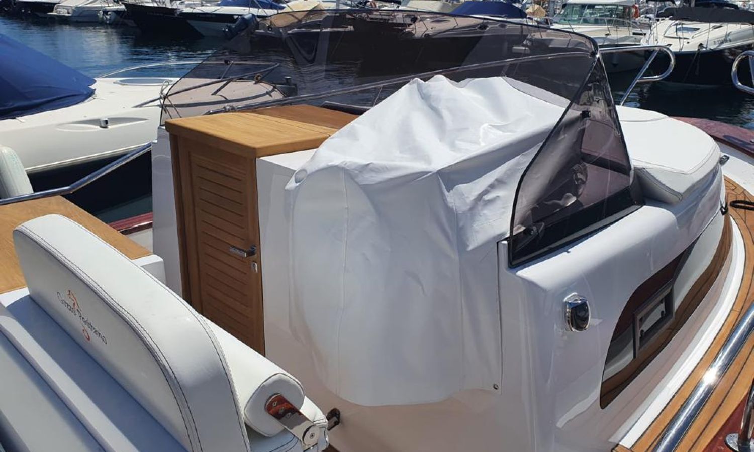 Con sólo 28 pies, el modelo Gozzo Positano 28 Sole ofrece la posibilidad de disfrutar del mar, sin renunciar a los grandes espacios y a la elegancia de un clásico.Exteriores con grandes soláriums a proa y popa, amplia plataforma de baño y una zona de mesa con capacidad para 8 personas. Interiores con una espaciosa cabina con baño, todo ello fabricado con maderas nobles, materiales de alta calidad y accesorios imprescindibles para la vida a bordo.