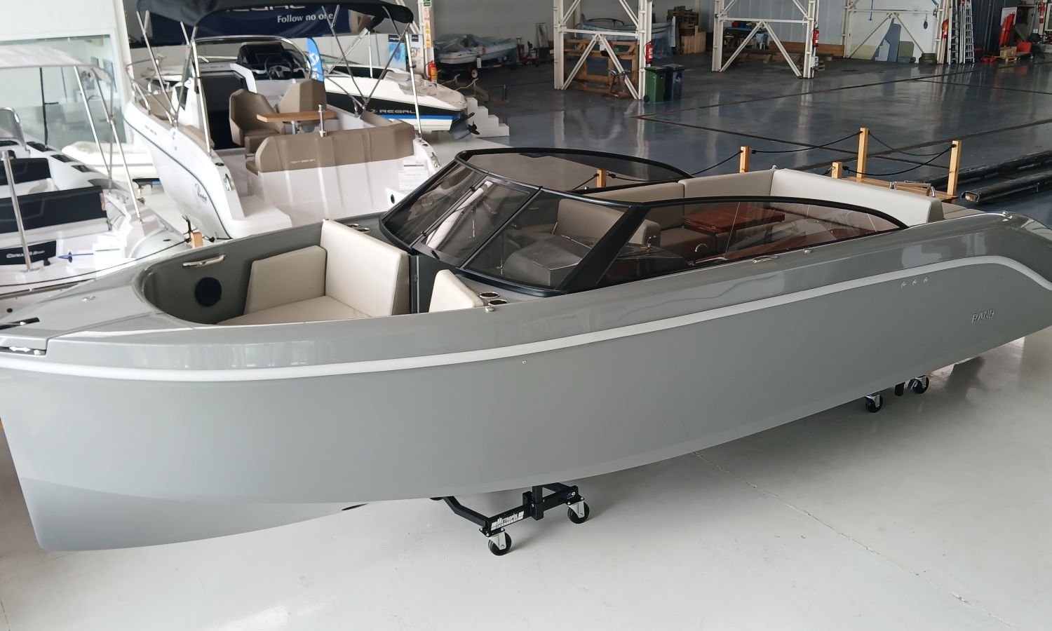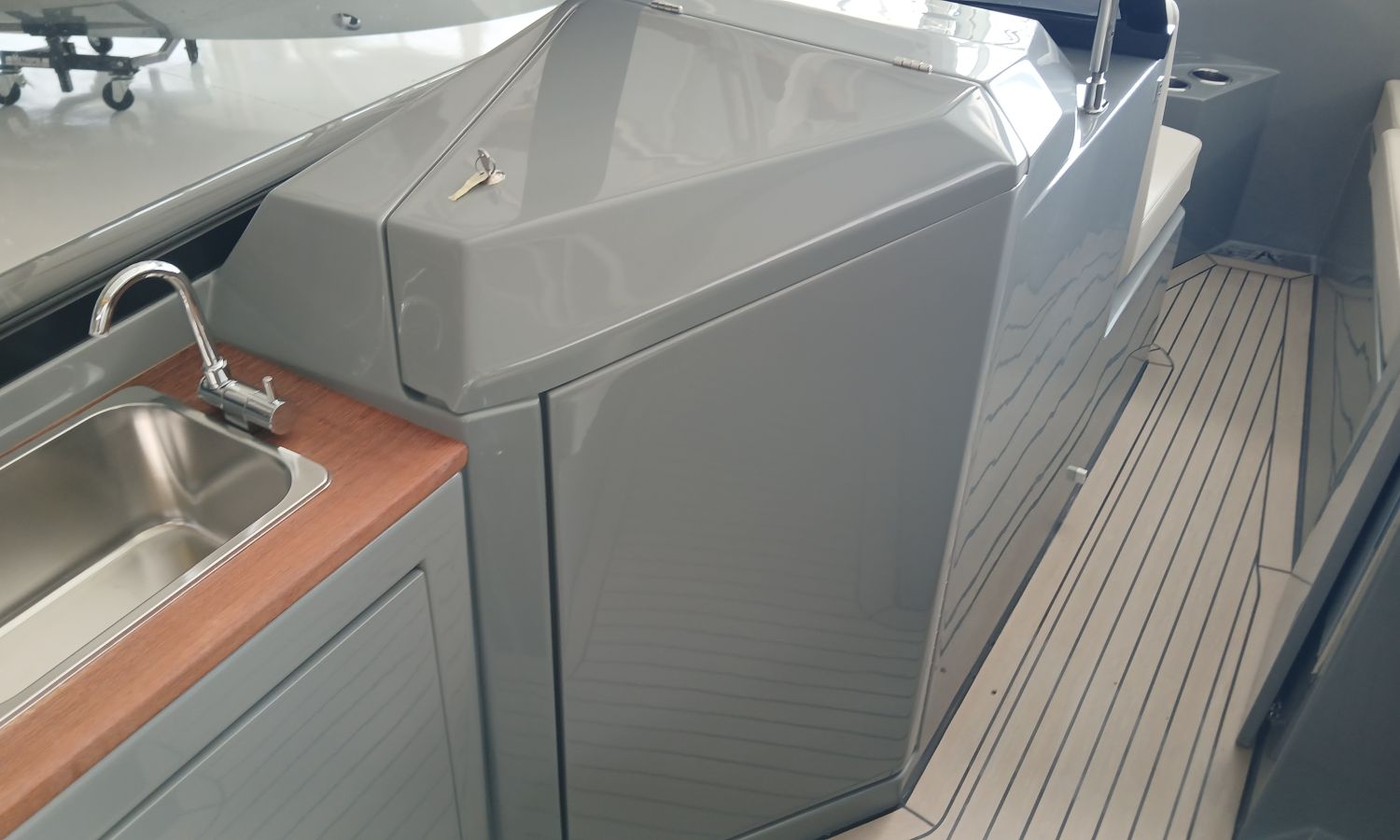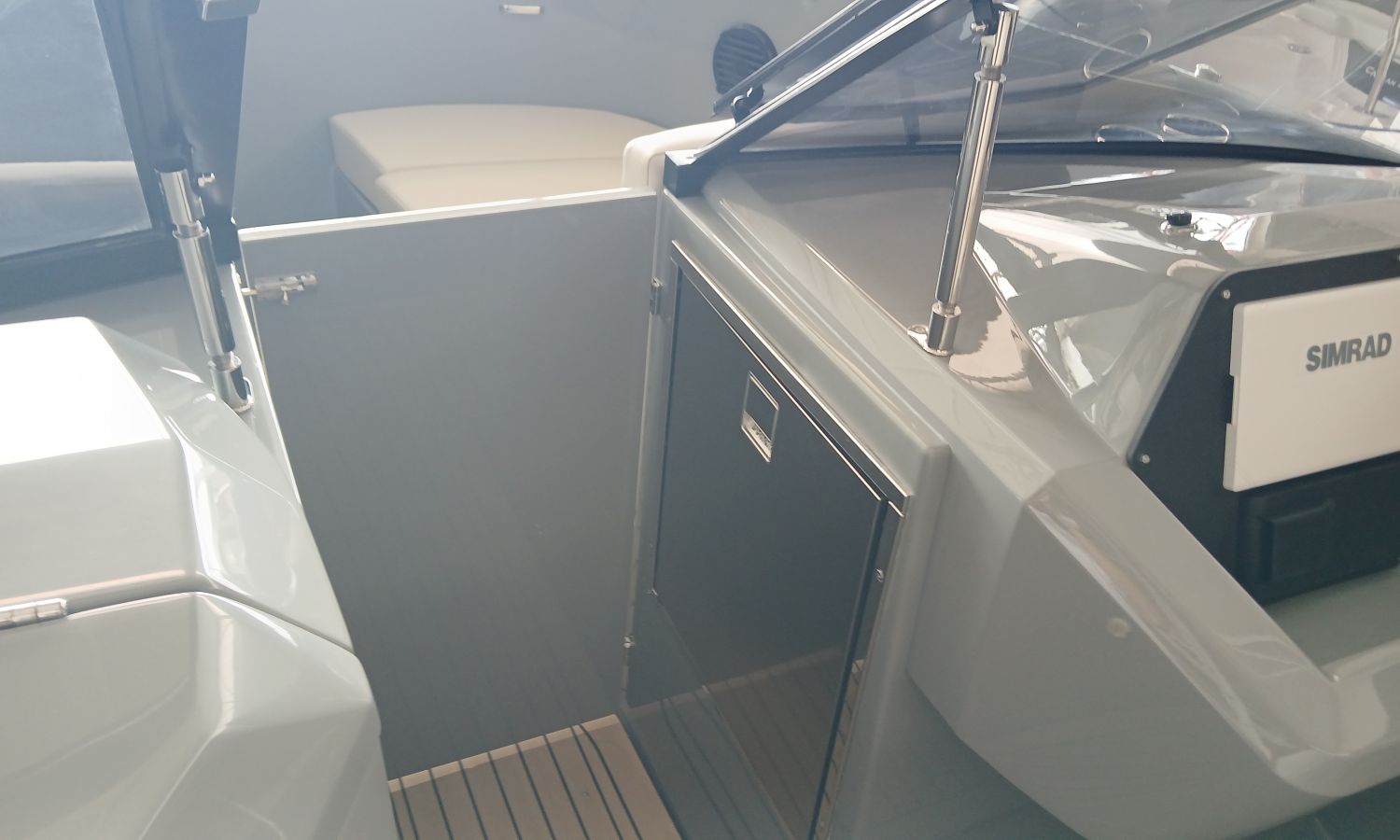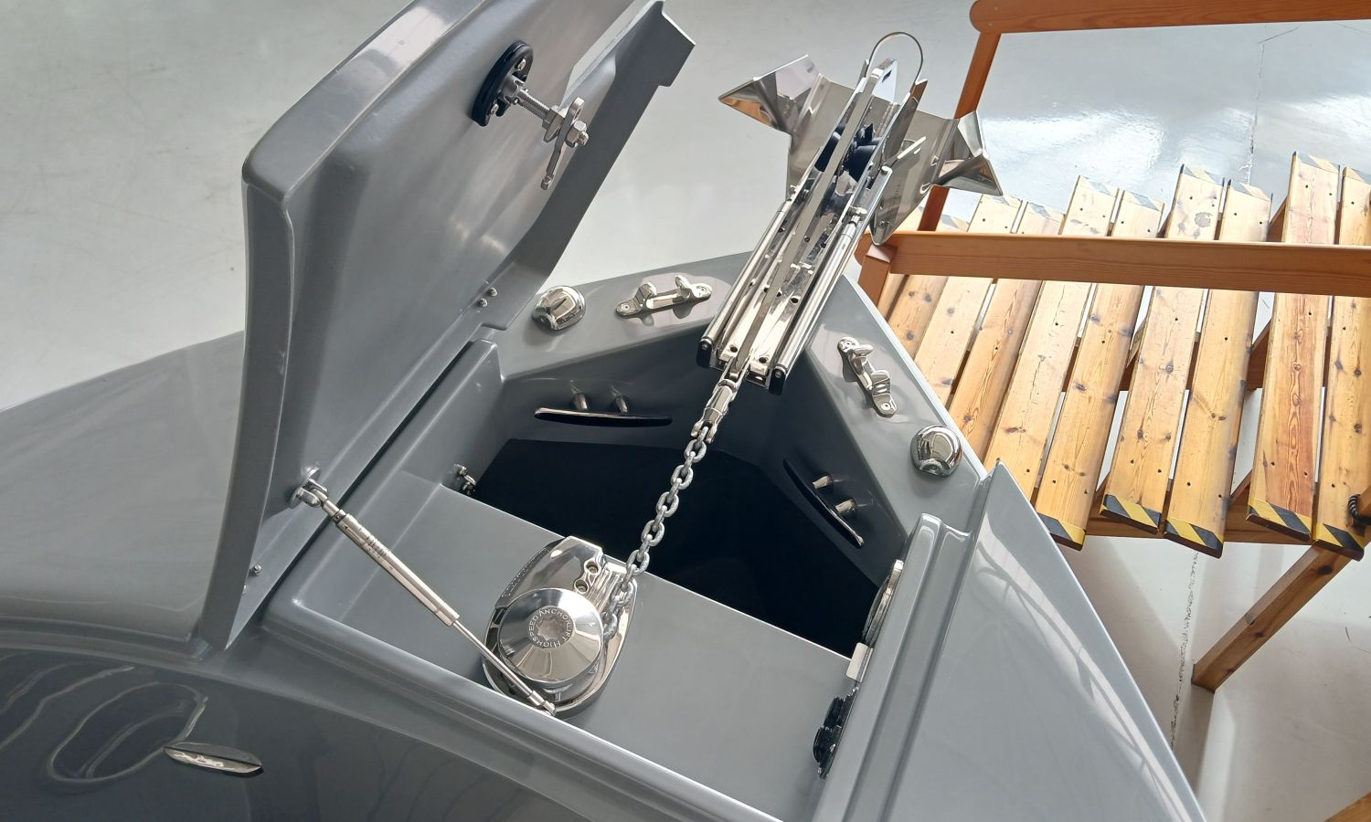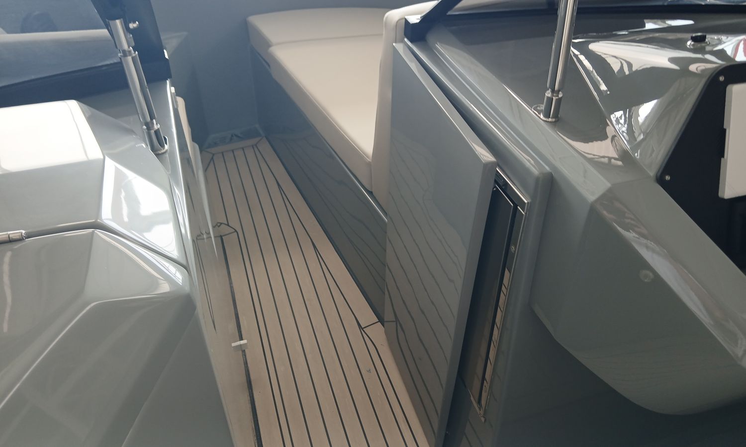 Casco color Grey Ski (RAL 7037) - Tapicería Silvertex Macadamia - Bordon defensa color gris - Mueble de cocina a babor con fregadero y grifo - Sistema de agua a presión con ducha en bañera y WC marino eléctrico con depósito de aguas negras - Hélice de proa - Equipo de audio sistema Premium B&O - Paquete de iluminación Led premium - Molinete eléctrico + Kit de fondeo - Defensas + soportes - Ducha en popa - Refrigerador de luxe - Escalera de baño Premium - Flaps automáticos Zipwake - Lona de fondeo - Toma de puerto + Cargador de baterías - Transporte Astillero-Costa-Brava - Pintura Antifouling - Preparación, montaje, botadura y entrega con pruebas en el mar incluido..Descripción embarcación