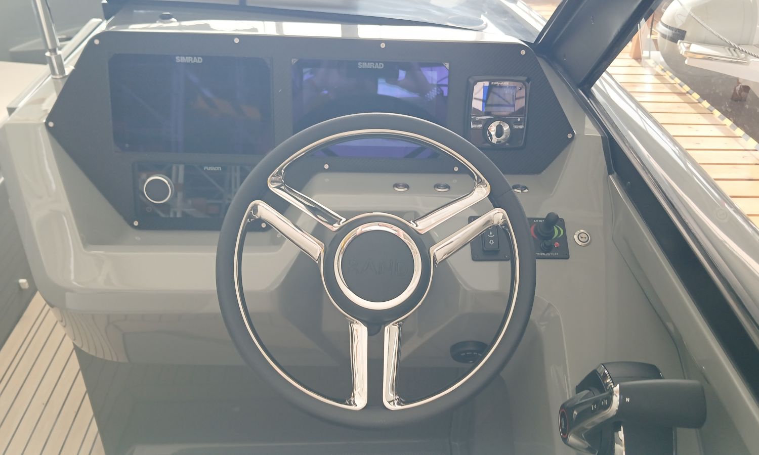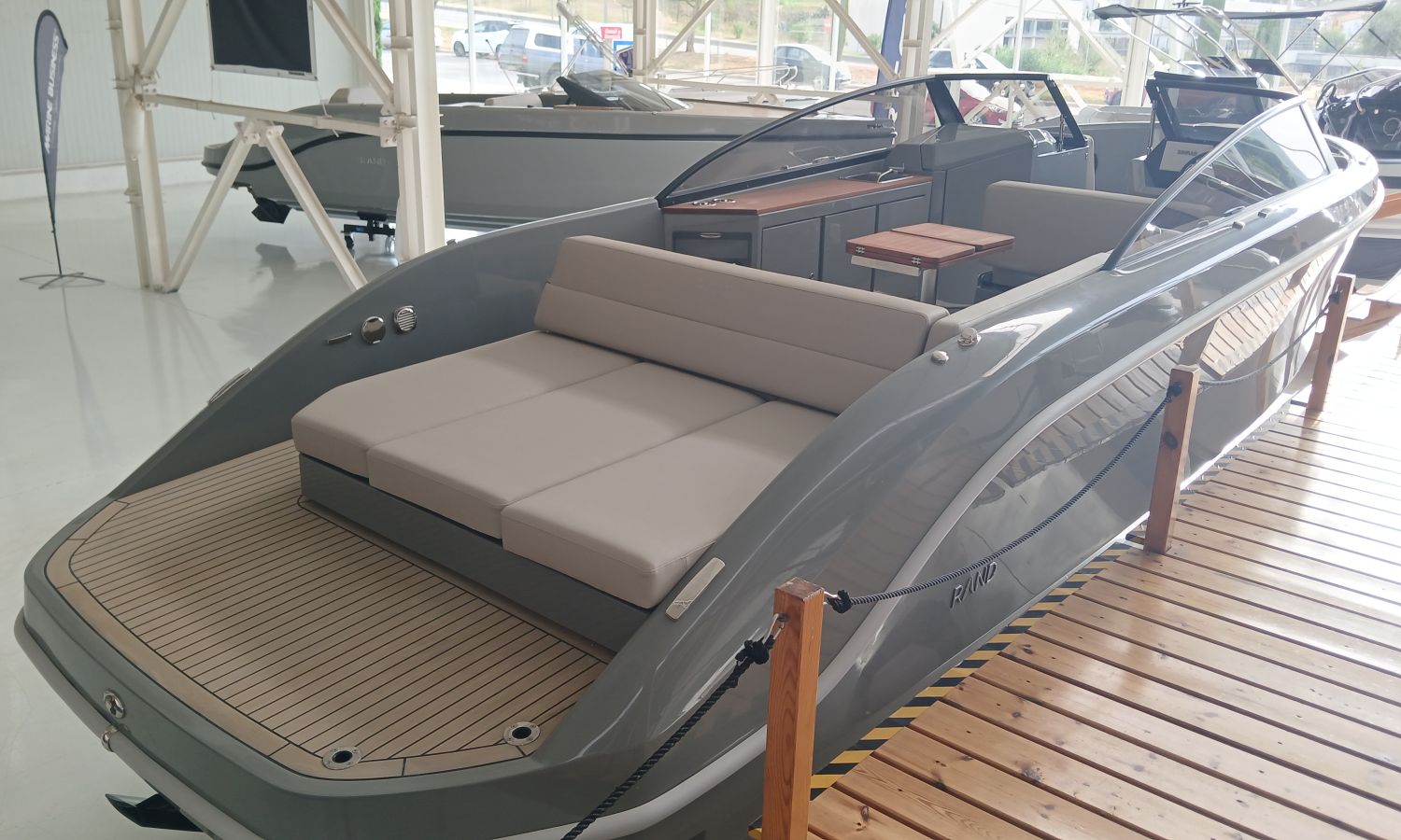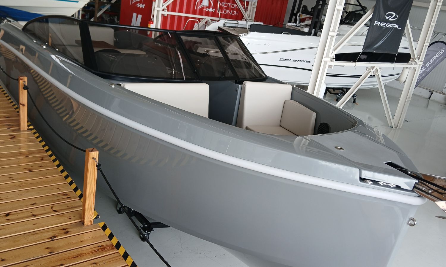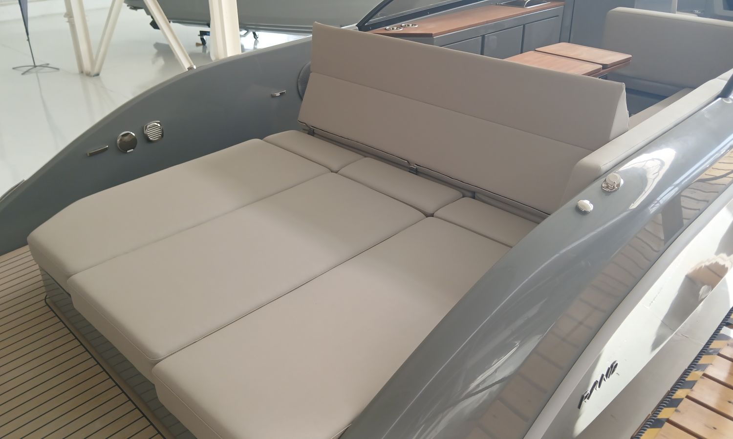 Casco color Grey Ski (RAL 7037) - Tapicería Silvertex Macadamia - Bordon defensa color gris - Mueble de cocina a babor con fregadero y grifo - Sistema de agua a presión con ducha en bañera y WC marino eléctrico con depósito de aguas negras - Hélice de proa - Equipo de audio sistema Premium B&O - Paquete de iluminación Led premium - Molinete eléctrico + Kit de fondeo - Defensas + soportes - Ducha en popa - Refrigerador de luxe - Escalera de baño Premium - Flaps automáticos Zipwake - Lona de fondeo - Toma de puerto + Cargador de baterías - Transporte Astillero-Costa-Brava - Pintura Antifouling - Preparación, montaje, botadura y entrega con pruebas en el mar incluido..Descripción embarcación