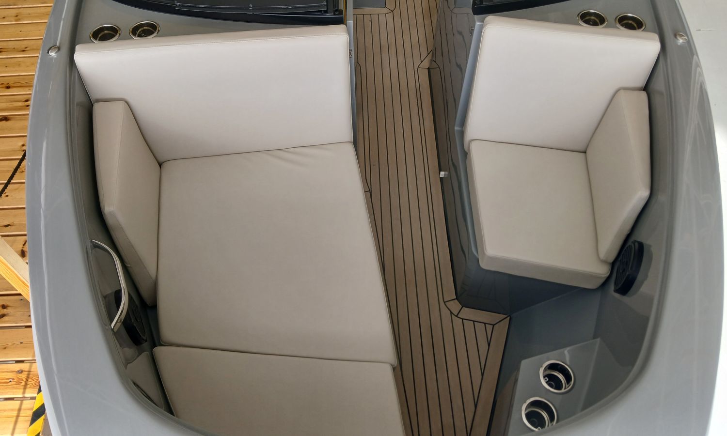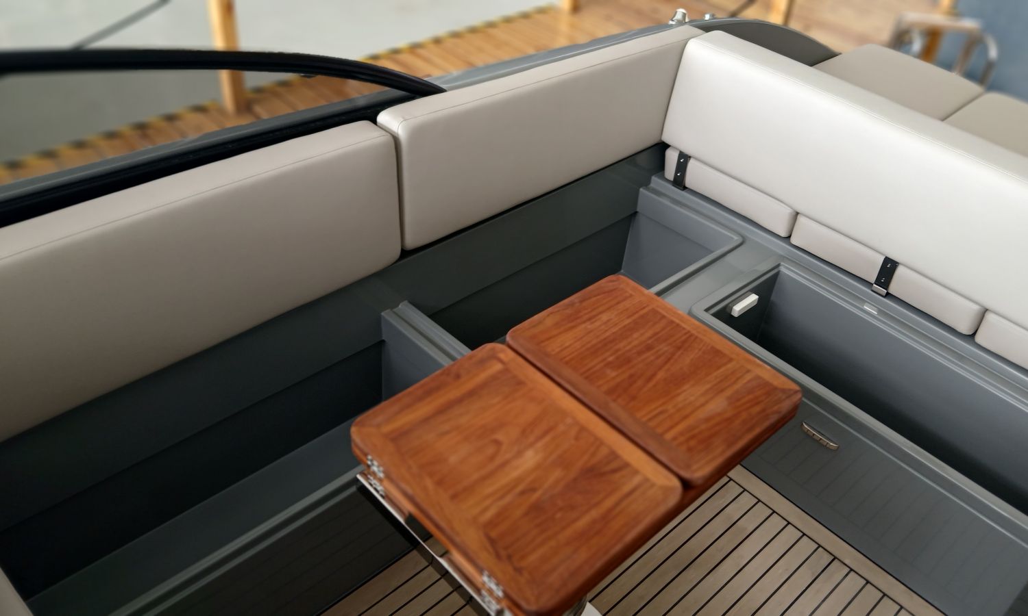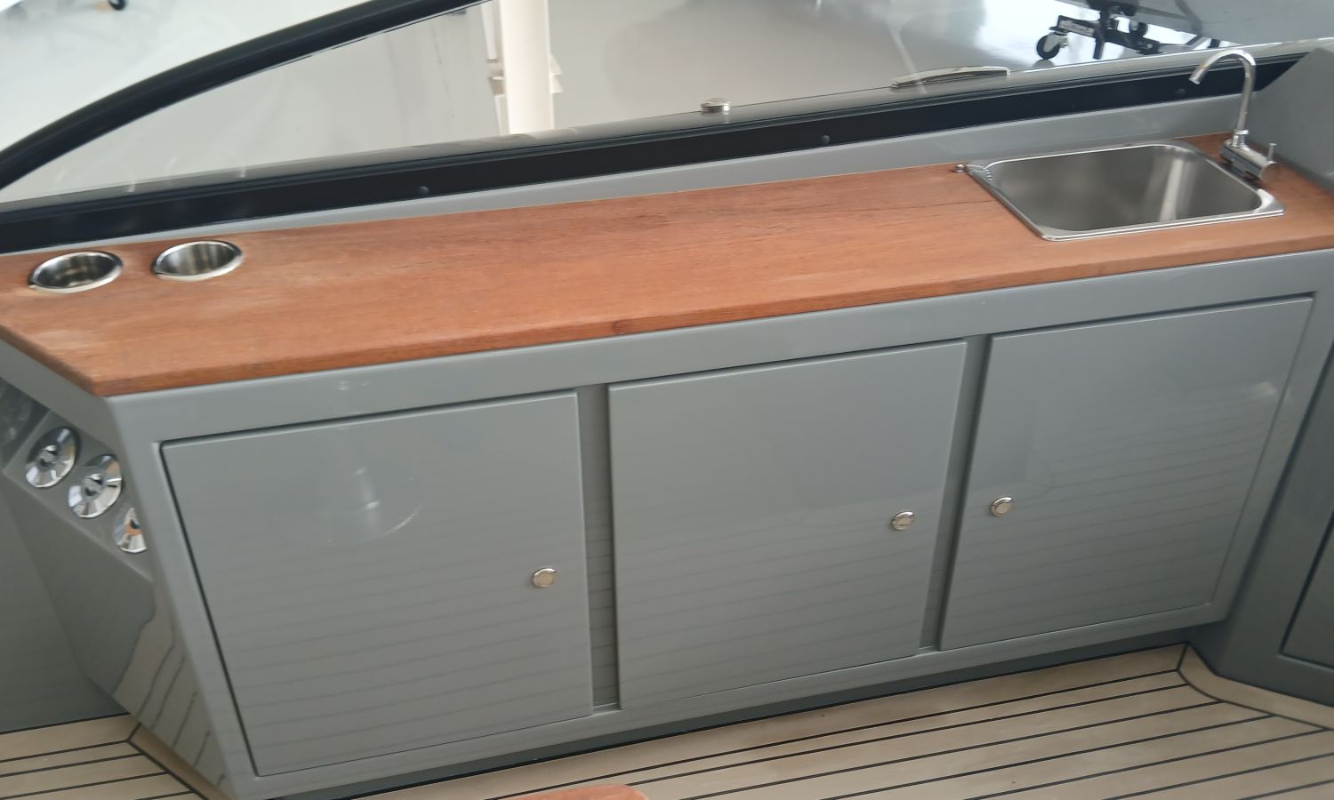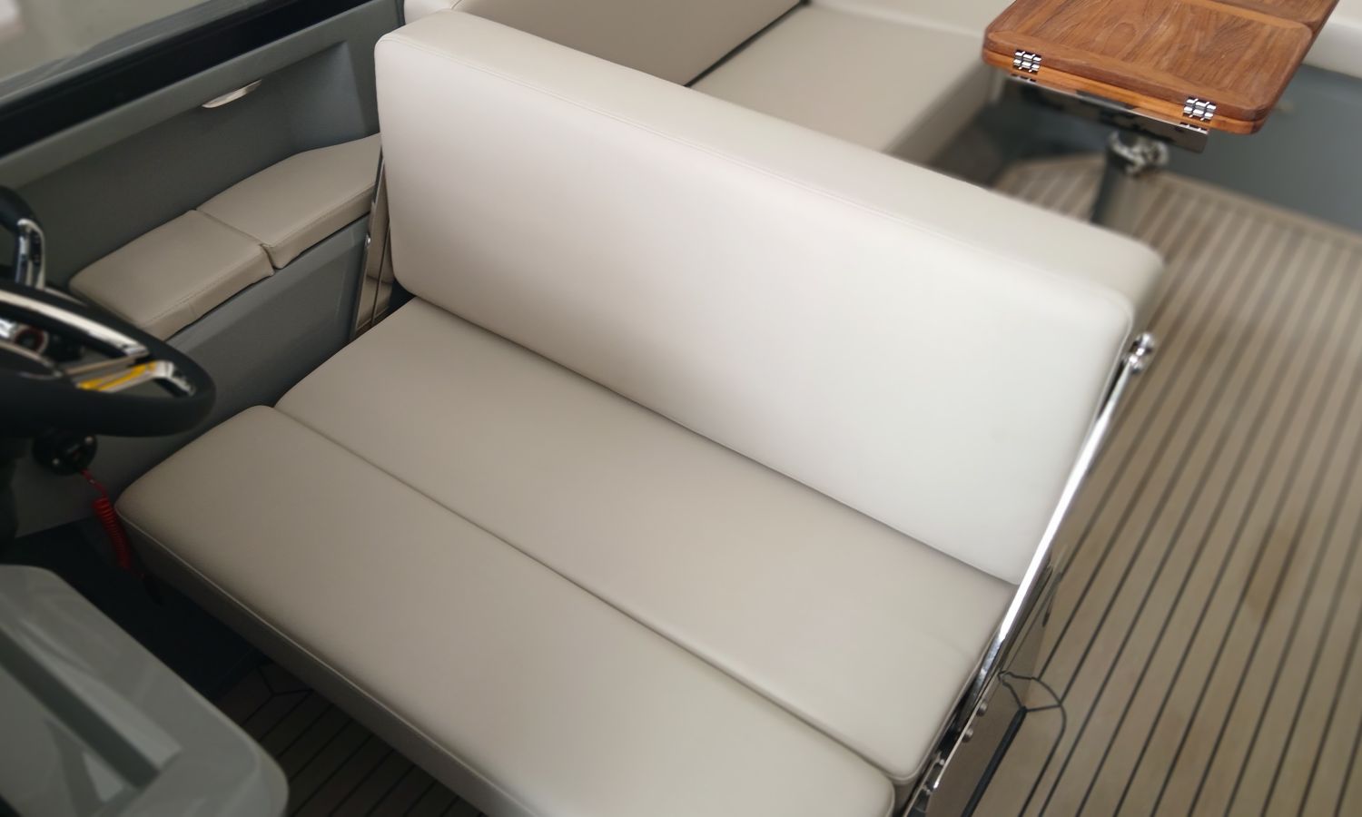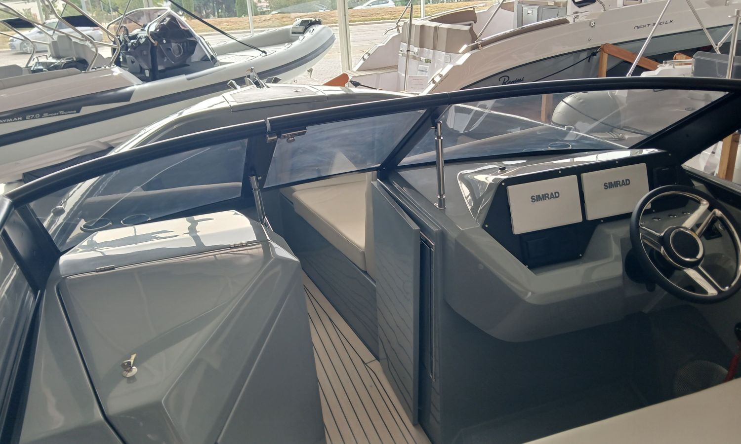 Casco color Grey Ski (RAL 7037) - Tapicería Silvertex Macadamia - Bordon defensa color gris - Mueble de cocina a babor con fregadero y grifo - Sistema de agua a presión con ducha en bañera y WC marino eléctrico con depósito de aguas negras - Hélice de proa - Equipo de audio sistema Premium B&O - Paquete de iluminación Led premium - Molinete eléctrico + Kit de fondeo - Defensas + soportes - Ducha en popa - Refrigerador de luxe - Escalera de baño Premium - Flaps automáticos Zipwake - Lona de fondeo - Toma de puerto + Cargador de baterías - Transporte Astillero-Costa-Brava - Pintura Antifouling - Preparación, montaje, botadura y entrega con pruebas en el mar incluido..Descripción embarcación