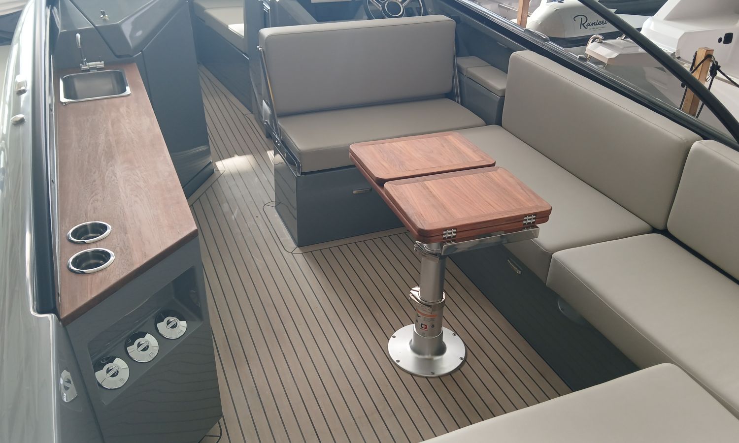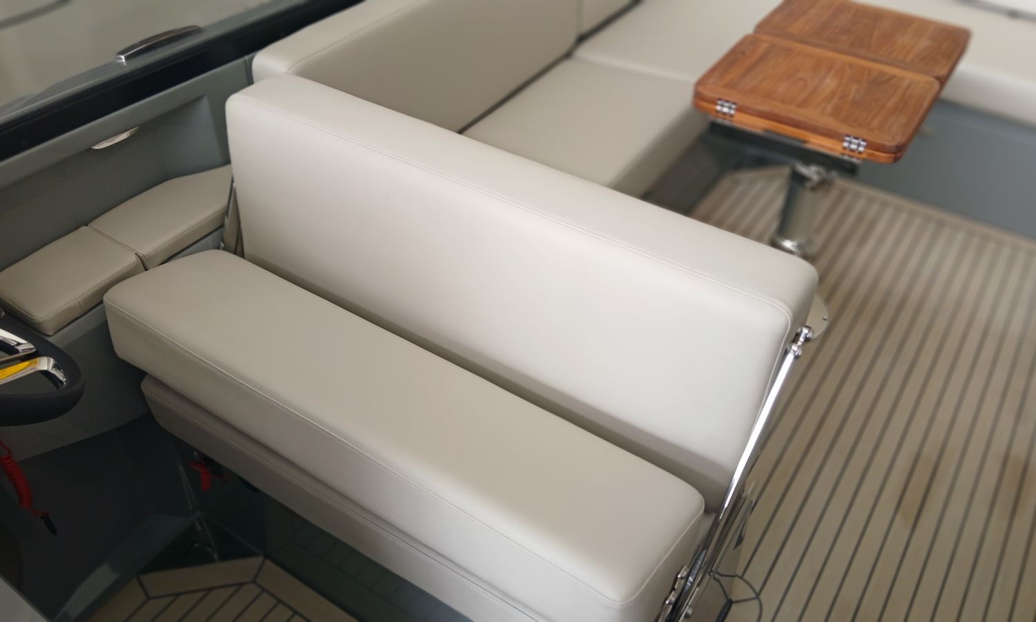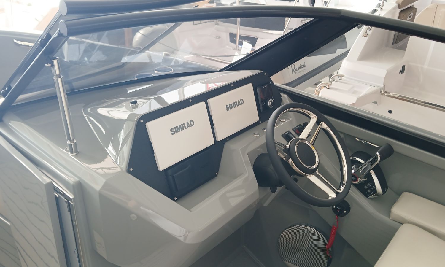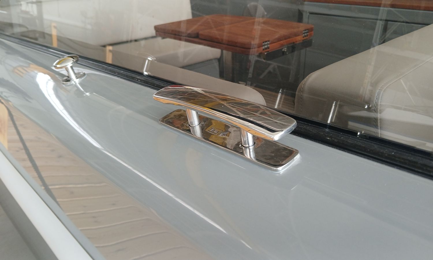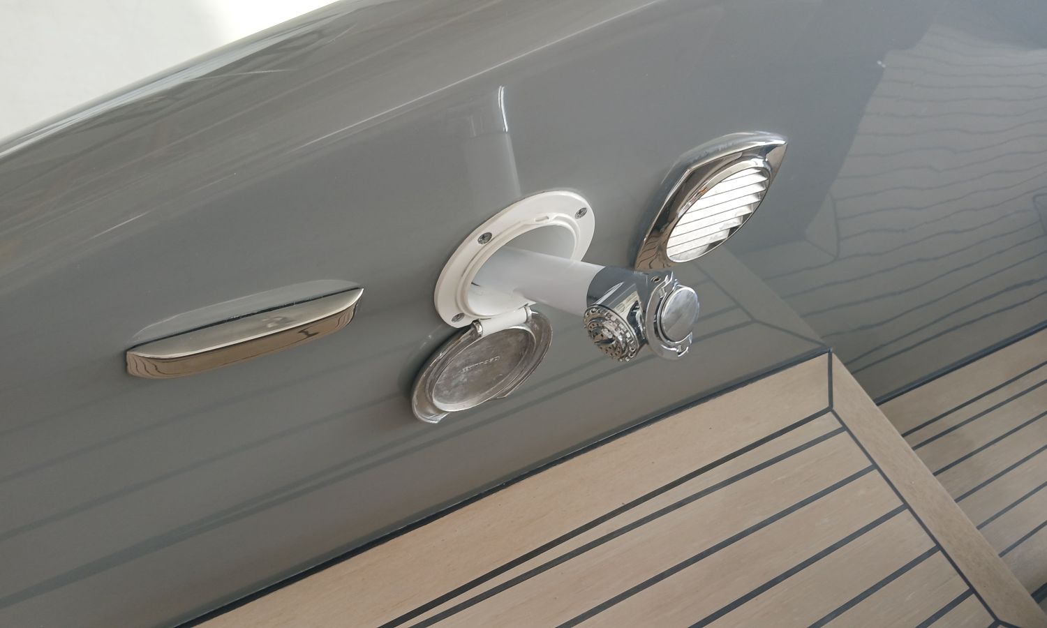 Casco color Grey Ski (RAL 7037) - Tapicería Silvertex Macadamia - Bordon defensa color gris - Mueble de cocina a babor con fregadero y grifo - Sistema de agua a presión con ducha en bañera y WC marino eléctrico con depósito de aguas negras - Hélice de proa - Equipo de audio sistema Premium B&O - Paquete de iluminación Led premium - Molinete eléctrico + Kit de fondeo - Defensas + soportes - Ducha en popa - Refrigerador de luxe - Escalera de baño Premium - Flaps automáticos Zipwake - Lona de fondeo - Toma de puerto + Cargador de baterías - Transporte Astillero-Costa-Brava - Pintura Antifouling - Preparación, montaje, botadura y entrega con pruebas en el mar incluido..Descripción embarcación