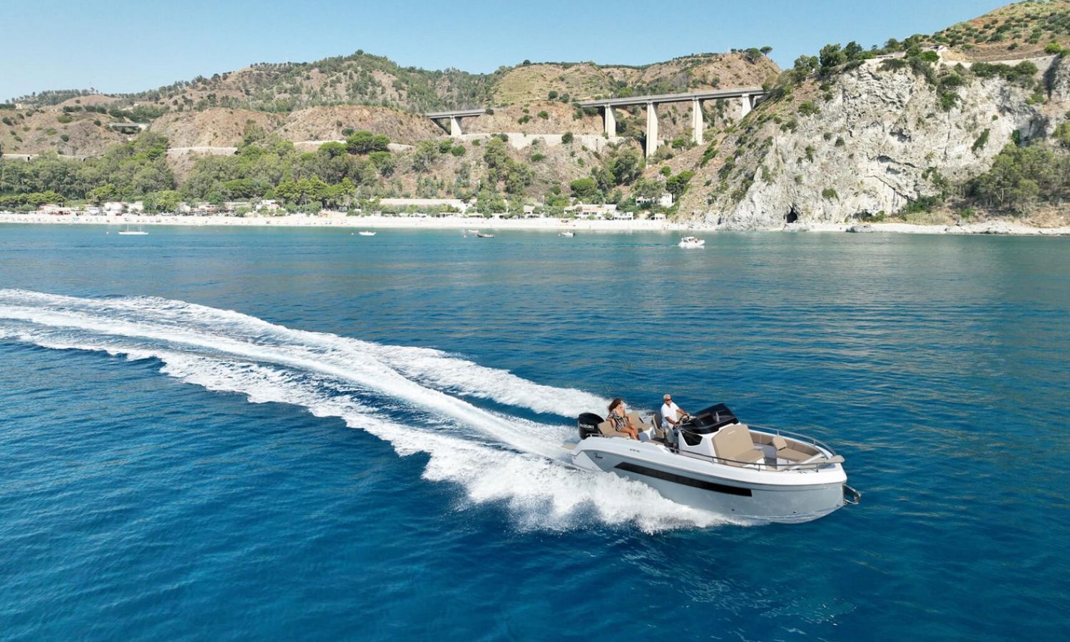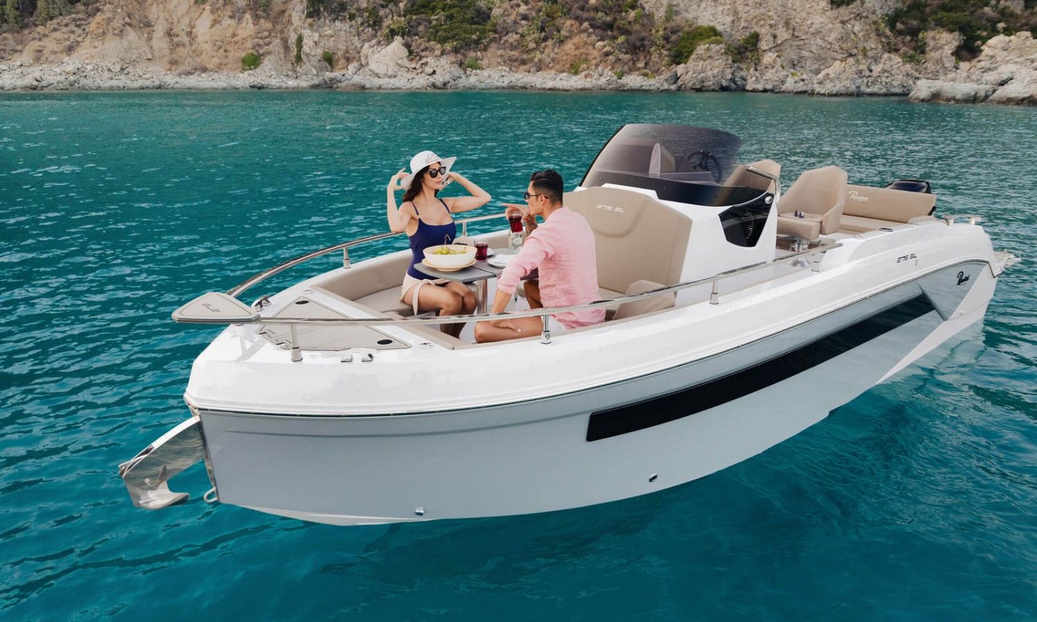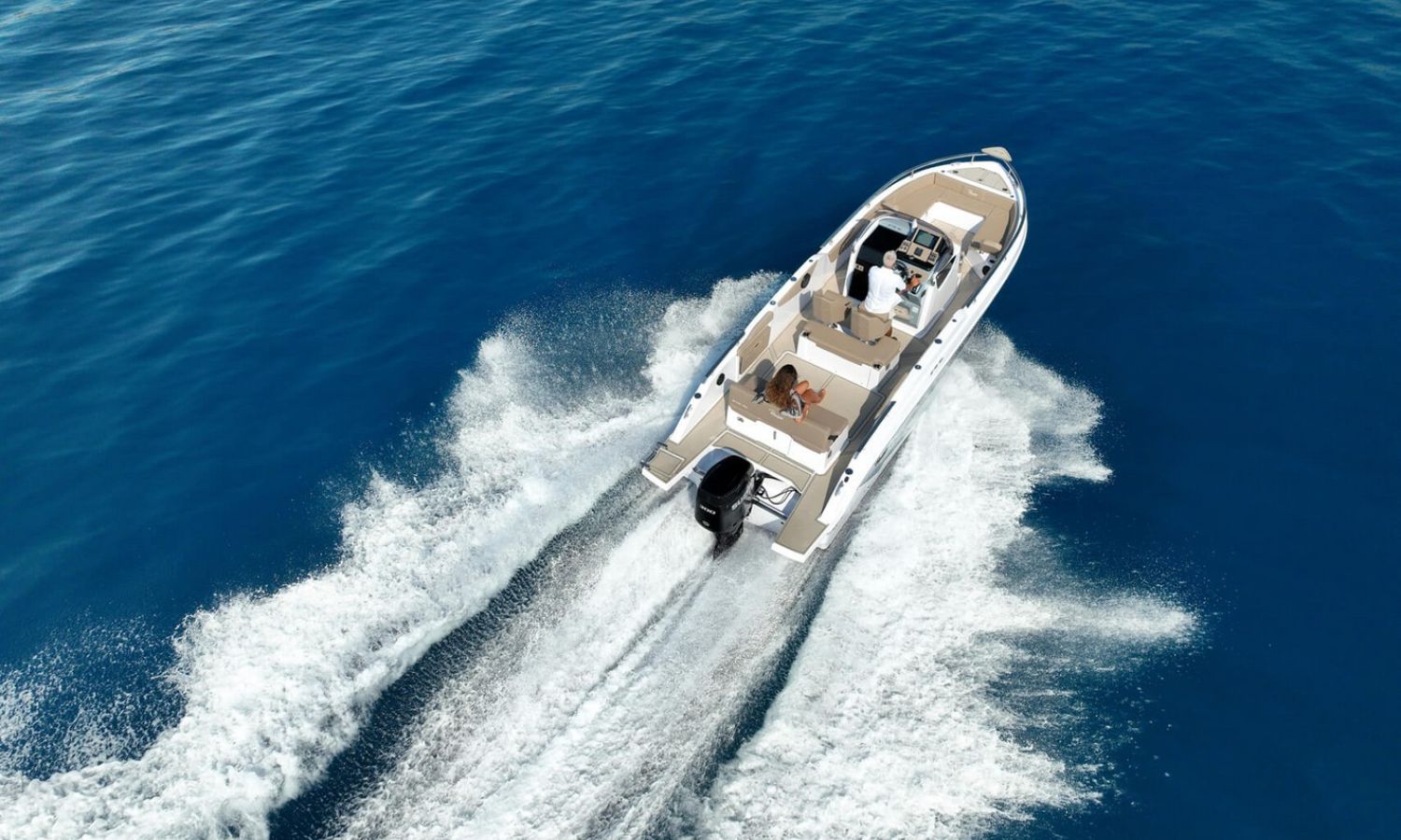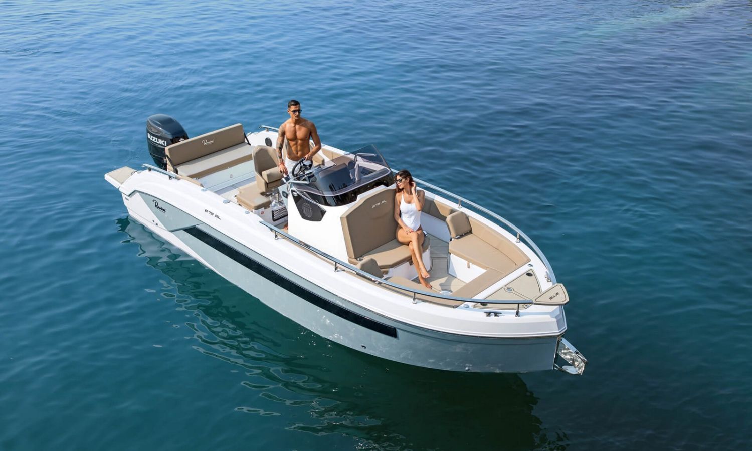 Bowrider de proa recta, motor fueraborda y gran bañera. Con múltiples posibilidades de equipamiento.