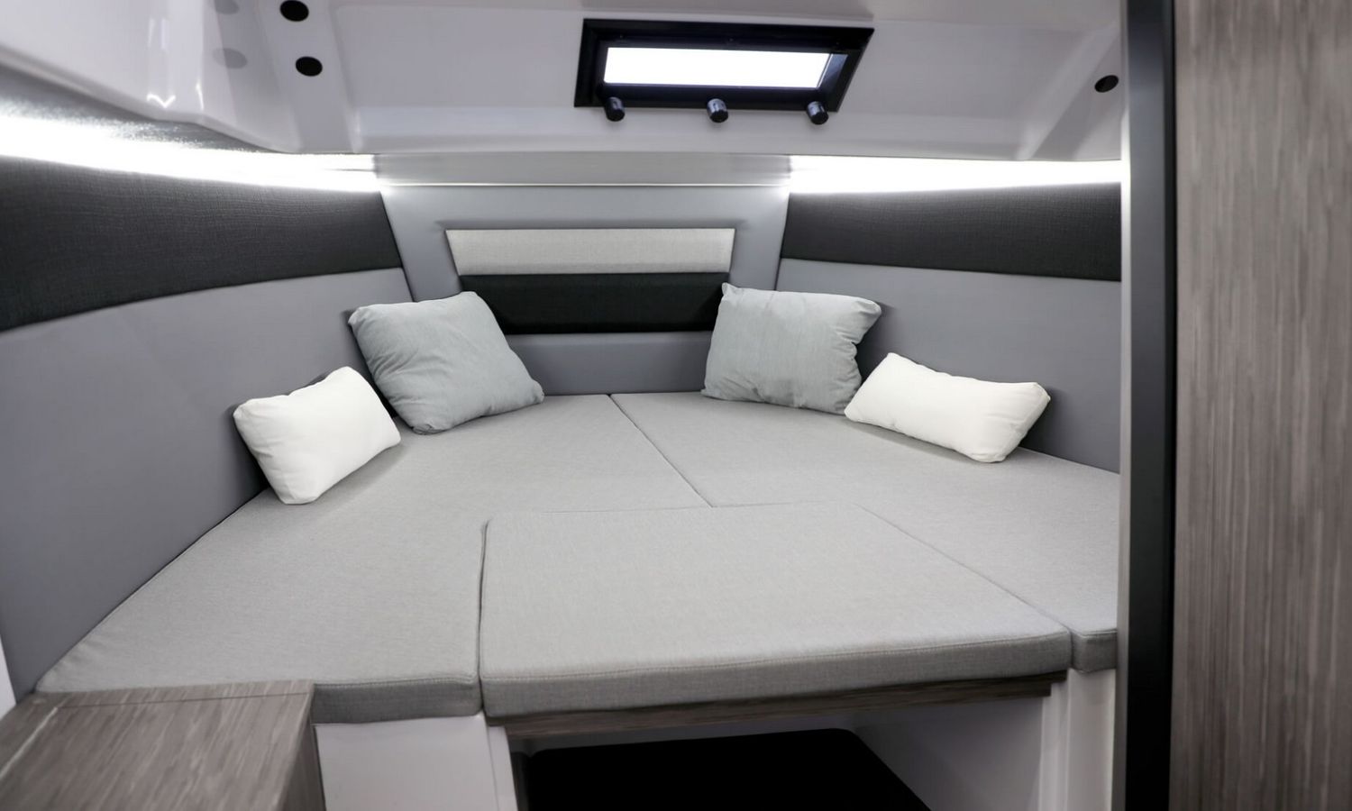 Este daycruiser con motores fueraborda, amplia cabina con baño, bañera verstátil y proa moderna le ofrece una navegación placentera y cómoda.