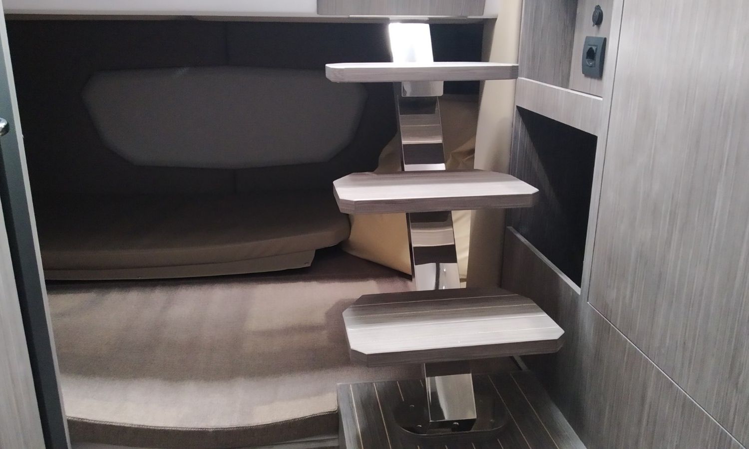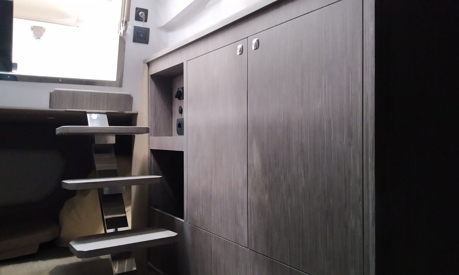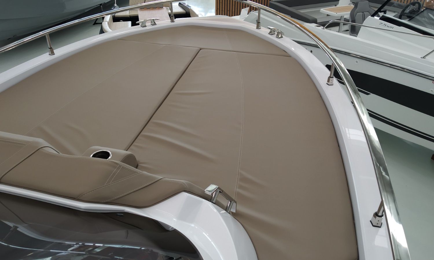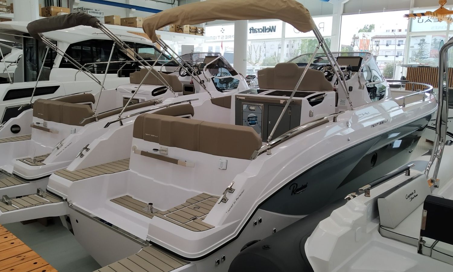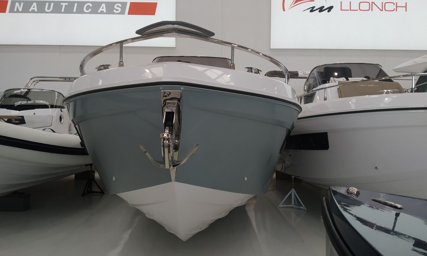 Color laterales casco gris - Contador cadena - Hélice de proa - Horno microondas con convertidor - Instalación para batería adicional - Kit asta esquí - Toma puerto 220 V - Asientos laterales plegables - Lona de fondeo - Toldo parasol - Pre-rigging Suzuki electrónico bi-motor - Transporte astillero a Costa Brava.Descripción embarcación