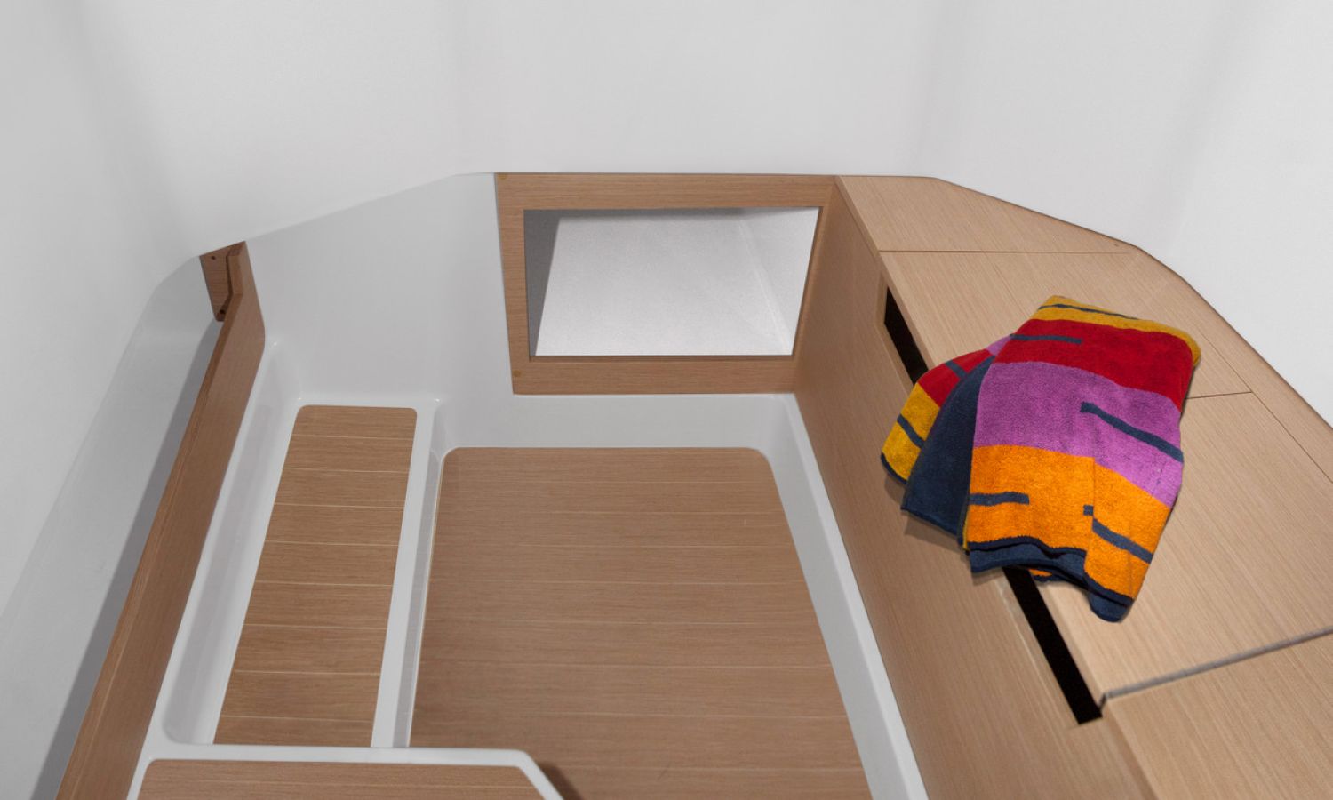 En su versión estándar viene equipada con extractor de gas, colchonetas solárium de proa, indicador nivel de carburante, luces de navegación, mueble de roble, 2 escotillas consola, porta-objetos, bomba sentina automática, casco Redan HIS, casco blanco, escalera de baño, depósito de agua, depósito de carburante, pasamanos en inox, stand up, desconectador de batería, tapicería externa, guanteras laterales, dirección mecánica y bocina eléctrica. Con los múltiples accesorios opcionales que ofrece este modelo podrá configurar la embarcación de sus sueños.