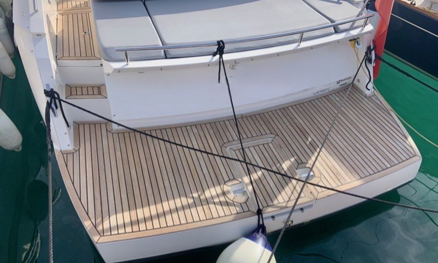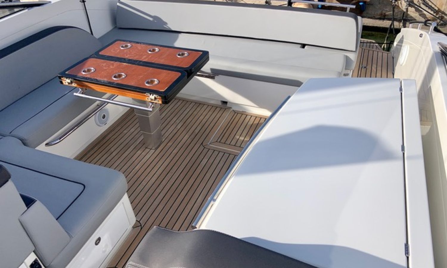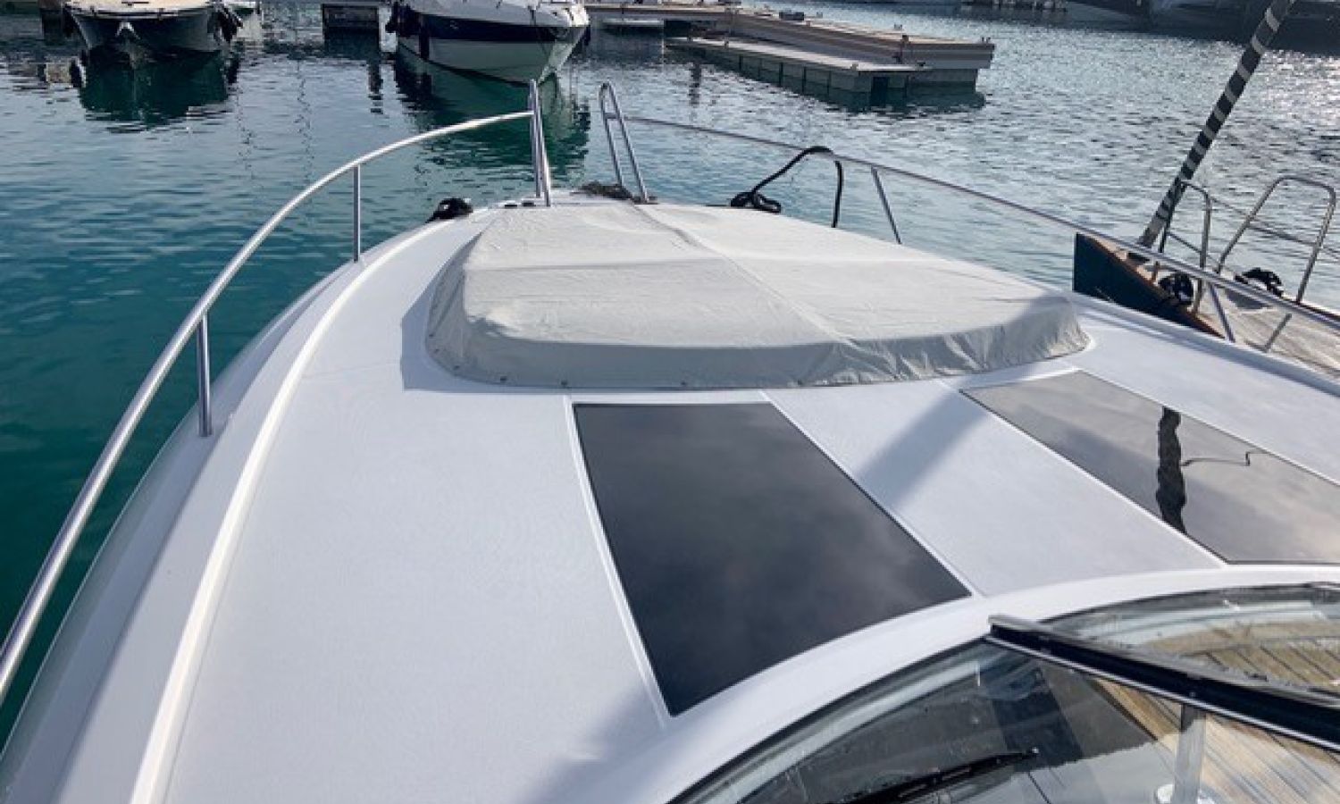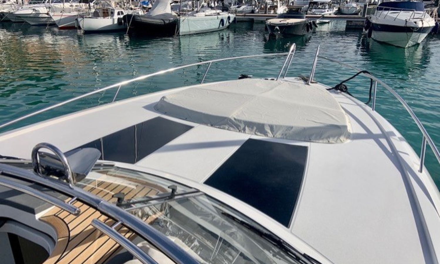 Toldo bimini - Garaje en popa - Generador - Aire acondicionado - Teka - Mesa bañera eléctrica - Nevera interior y exterior - Placa inducción - Tapiceria exterior nueva 2022 - Colchonetas solárium proa-popa - Toma de puerto 220 V. - Cargador de baterias - Mandos electrónicos - Gps/Plotter/Sonda - VHF - Hélice de proa - Joystick - Equipo audioDescripción embarcación