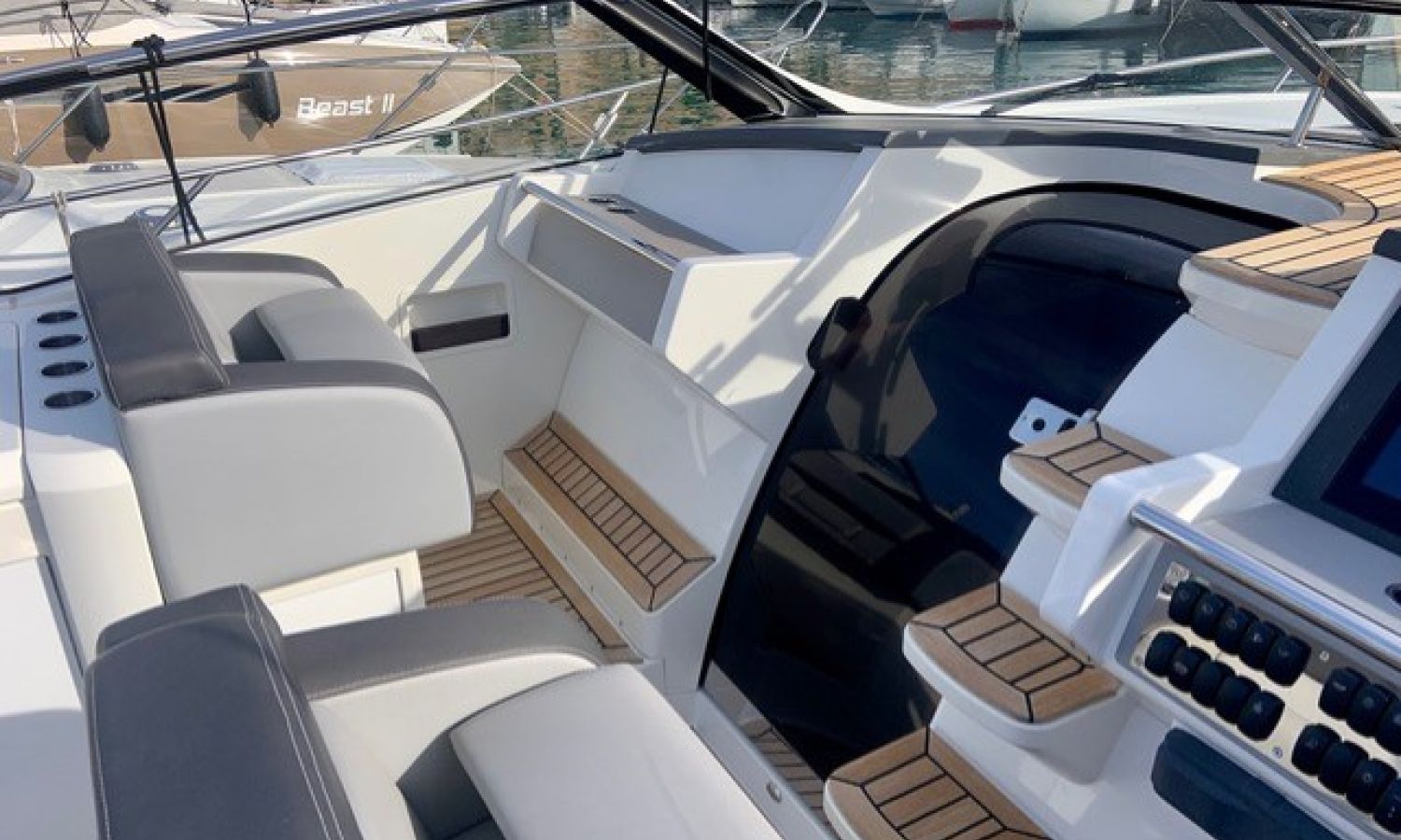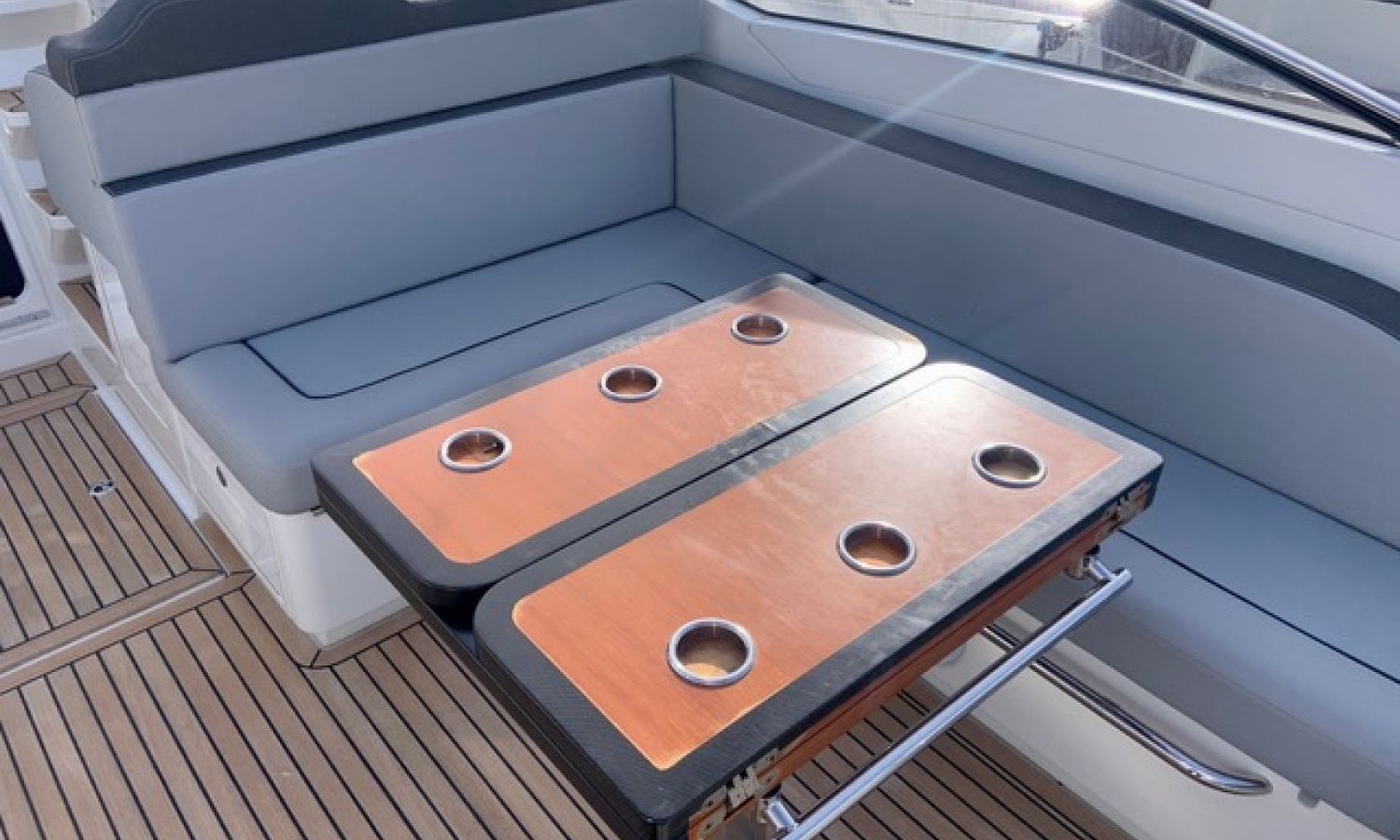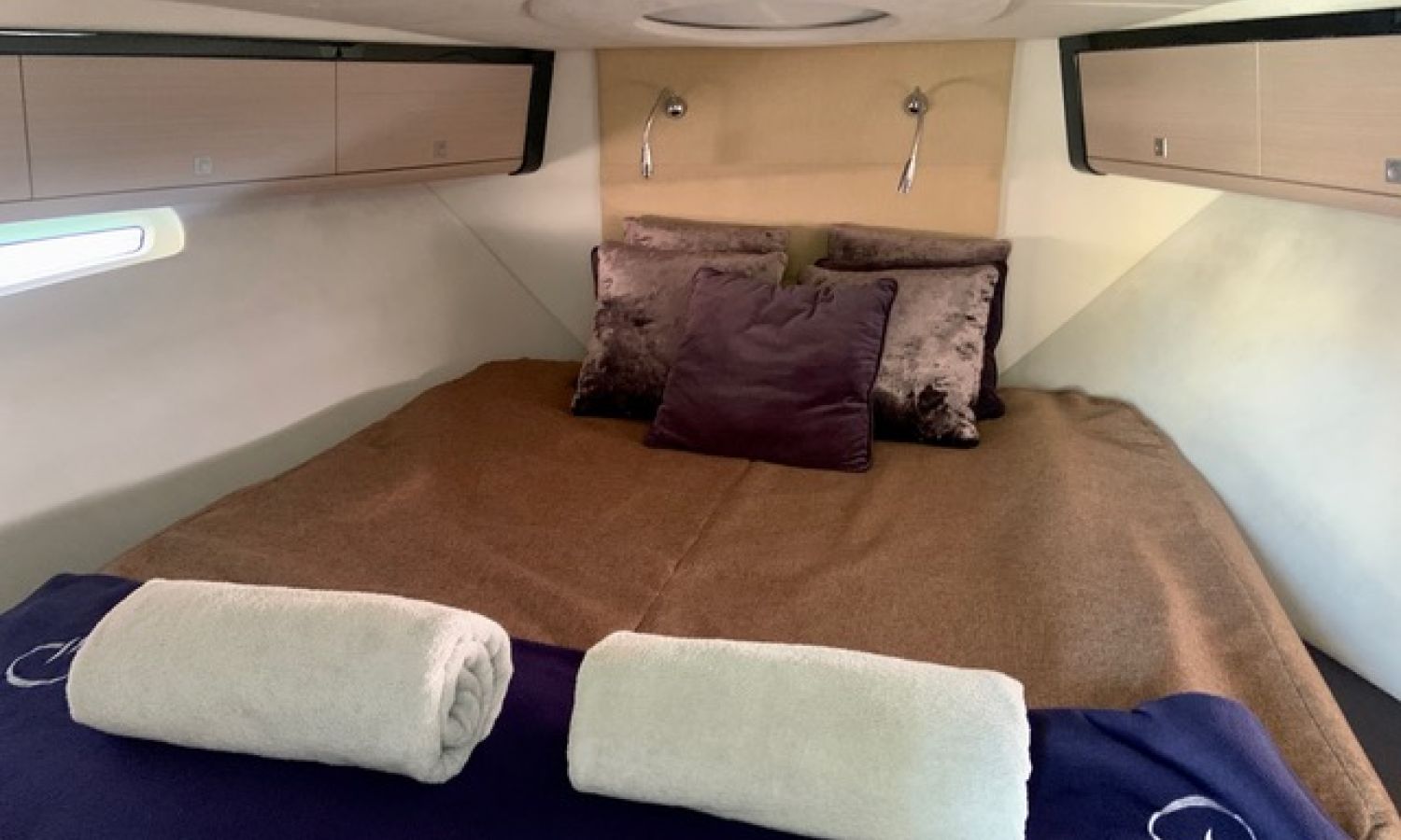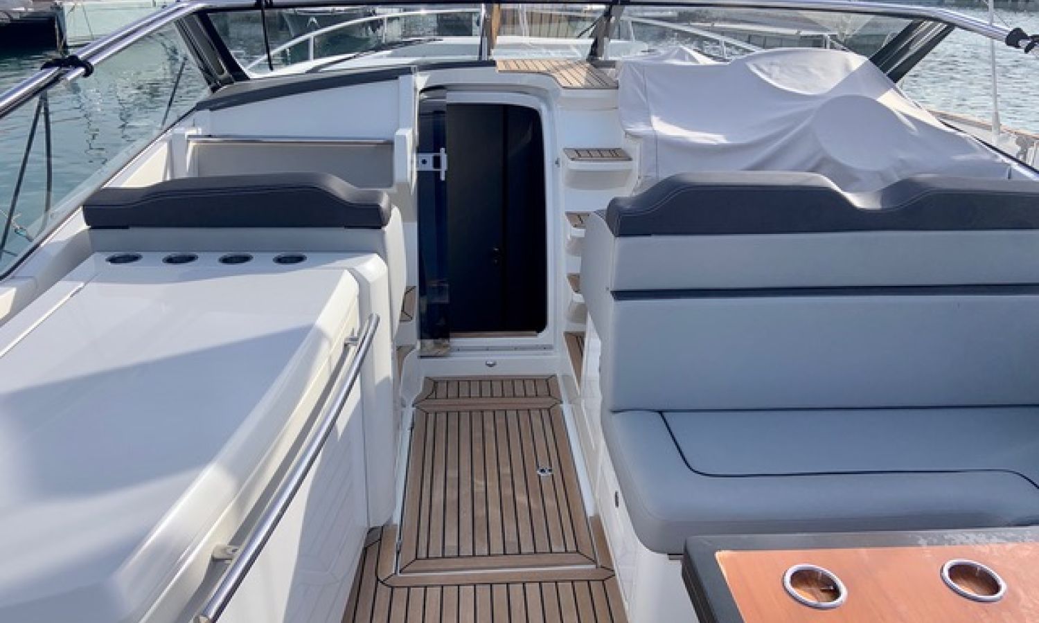 Toldo bimini - Garaje en popa - Generador - Aire acondicionado - Teka - Mesa bañera eléctrica - Nevera interior y exterior - Placa inducción - Tapiceria exterior nueva 2022 - Colchonetas solárium proa-popa - Toma de puerto 220 V. - Cargador de baterias - Mandos electrónicos - Gps/Plotter/Sonda - VHF - Hélice de proa - Joystick - Equipo audioDescripción embarcación