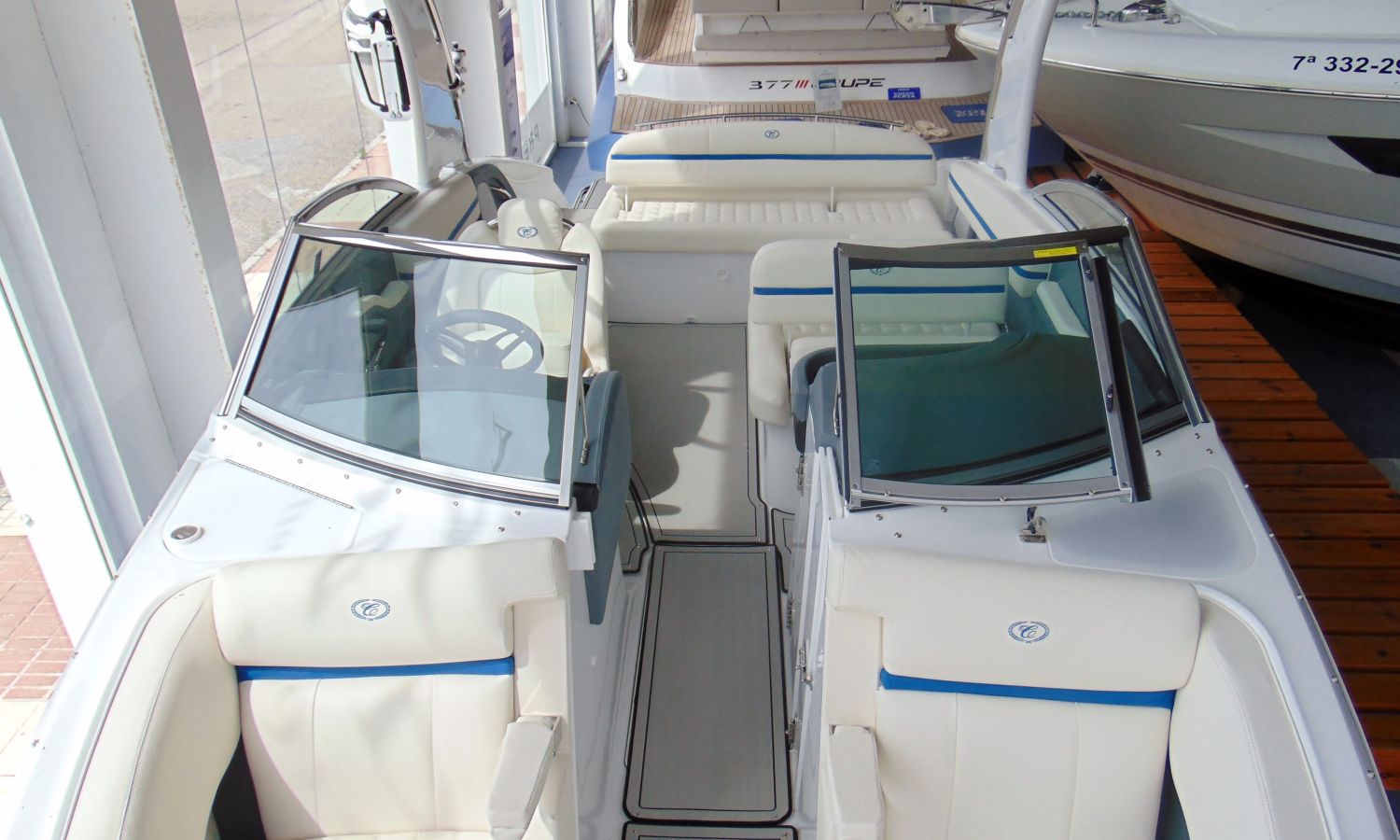 COQUE PACIFIC BLUE AVEC BANDE ROUGE - BACHE D’HIVER PROUE ET CARRE COULEUR PACIFIC BLUE - INDICATEUR POSITION DU MOTEUR - FEUX DE PROUE EN ACIER INOXYDABLE - SALLE DES MACHINES AVEC OUVERTURE ELECTRIQUE - HUBLOT DANS LES TOILETTES - SUPPORTS POUR WAKEBOARD TRITON - DOUCHE DANS LA PLATEFORME - SUPPLEMENT COUSSIN CENTRAL DE PROUE - TABLE DANS LE CARRE - FEUX LED DANS LE CARRE - EVIER DANS LES TOILETTES - MATERIAU SYNTHETIQUE DE COULEUR GRIS SUR LE PLANCHER - EXTENSION BAIN DE SOLEIL DE POUPE - CHARGEUR DE BATTERIES - SYSTEME D´EXTINCTION AUTOMATIQUE - GUINDEAU ELECTRIQUE AVEC ANCRE ET CHAINE - DOUBLE COUPE BATTERIE - TRANSPORT CHANTIER NAVAL-COSTA-BRAVA.
