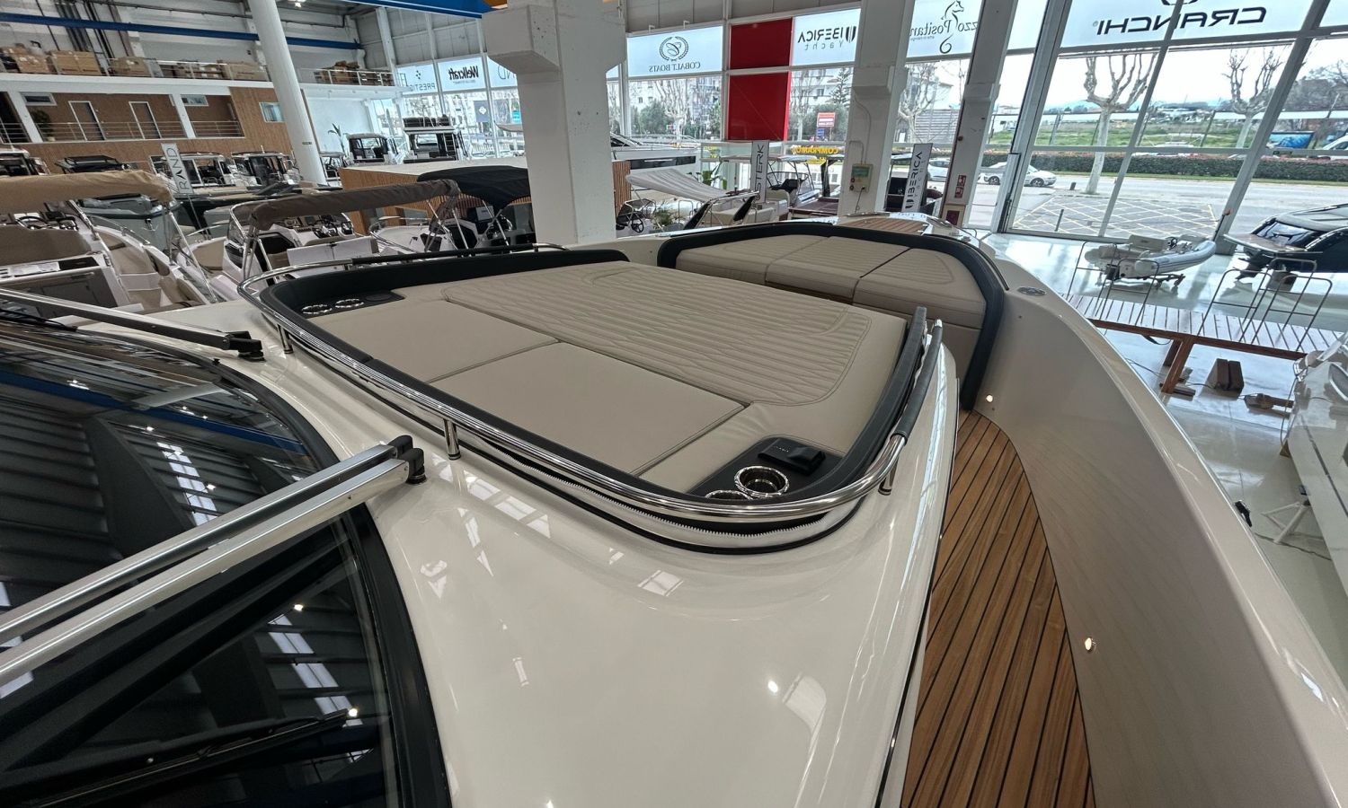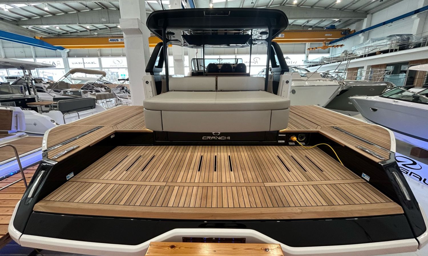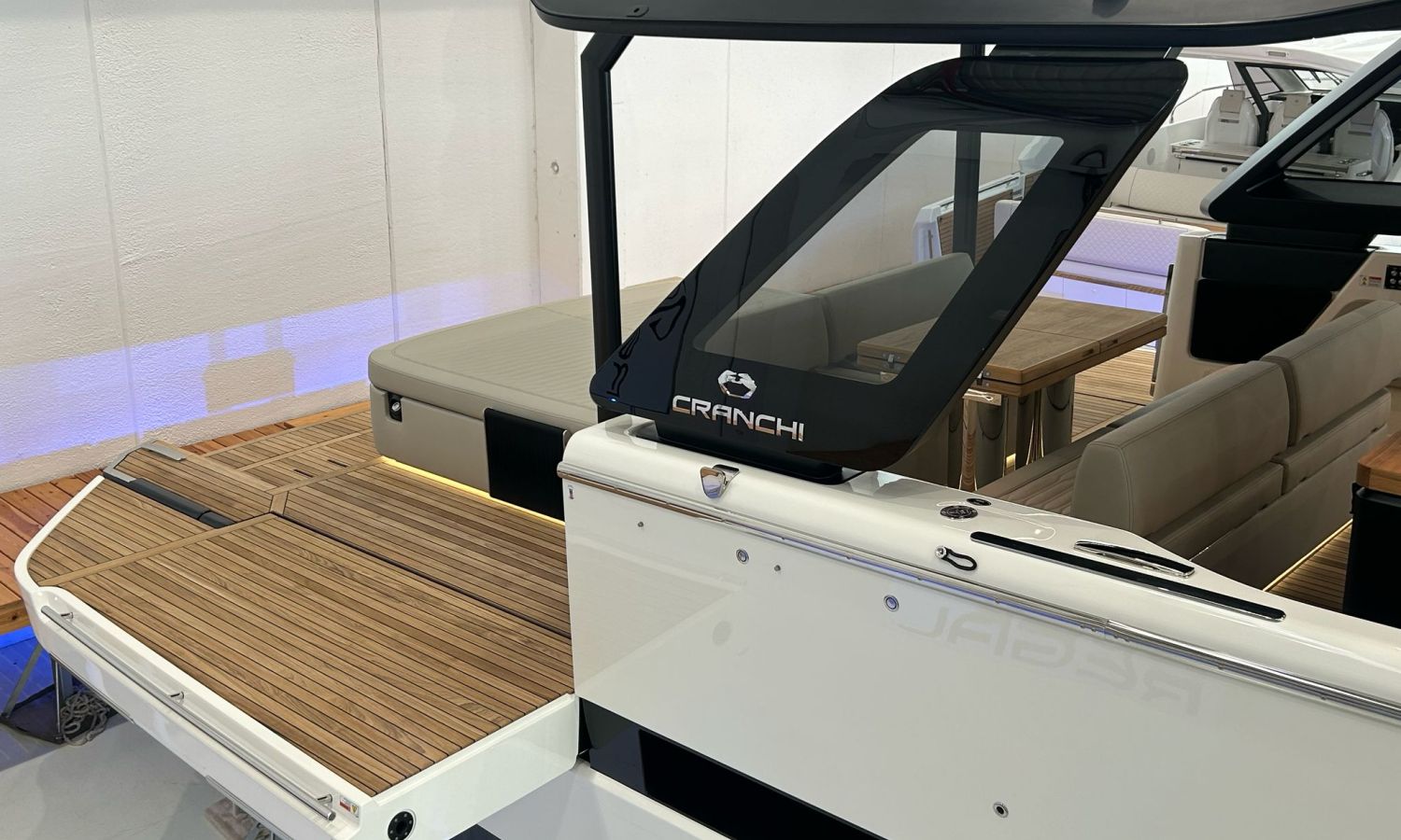 Bateau en stock. Livraison immédiate. Modèle A 46 Luxury Tender du chantier naval italien Cranchi de 14,25 mètres de longueur totale. Bateau avec hard top et un grand bain de soleil arrière. Intérieurs modernes et grande habitabilité.SOL-Nº 7957