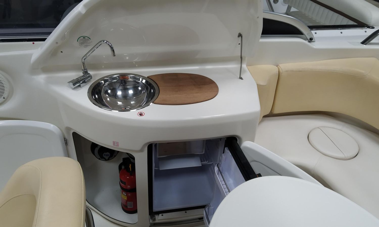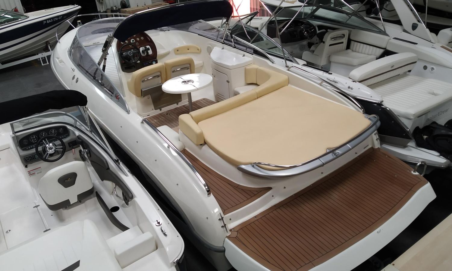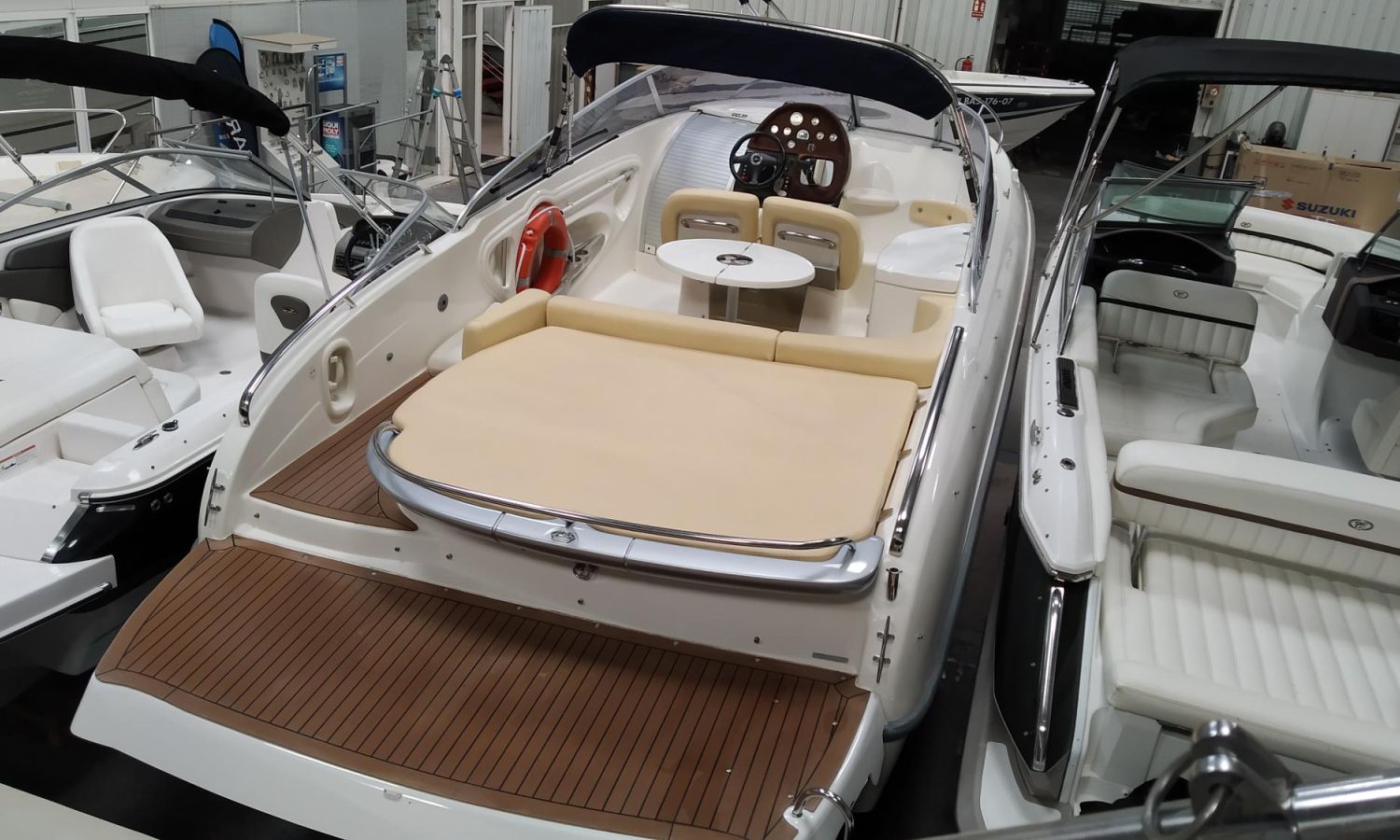 Taud de mouillage - Taud soleil - Guindeau électrique avec ancre et chaîne - Table de cockpit - Meuble-bar dans le cockpit avec évier et réfrigérateur - Réservoir d'eau - Réservoir de carburant - Douche de cockpit - Plateforme de bain avec échelle - WC marin électrique - Réservoir d'eaux sales - Système d'audio avec haut-parleurs - Flexiteek sur la plateforme de bain - Cockpit en teck - Bain de soleil à l'arrière avec ouverture hydraulique pour accès au moteur - Peinture anti-algues.Description du bateau