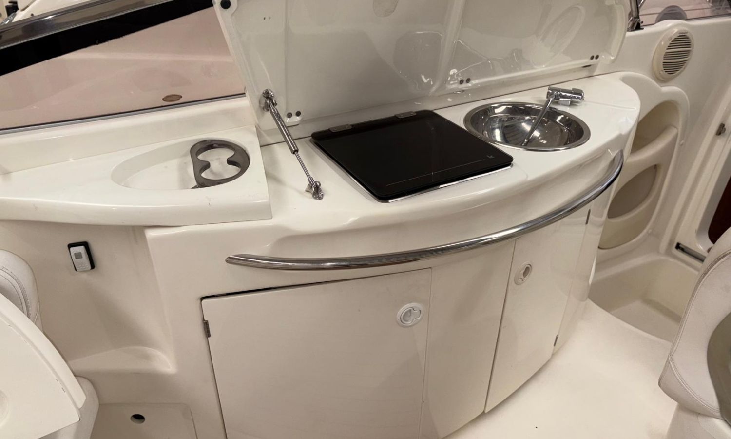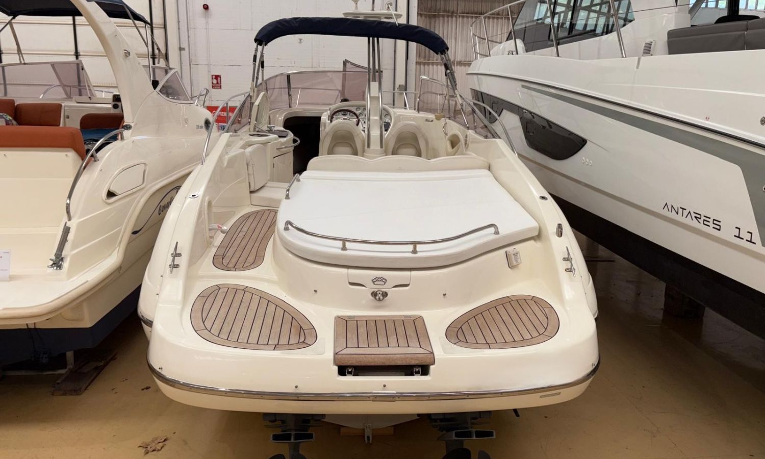 Taud de soleil - Douche de poupe - Plate-forme de bain avec échelle - Bain de soleil avant à ouverture hydraulique - Table de cockpit - Table de cockpit avec évier - Réfrigerateur de cockpit - Chargeur de batterie - Prise bâbord - Guindeau électrique - Gps/Sondeur - Toilettes marines avec réservoir de rétention - Cabine - Taud de mouillage - AntifoulingDescription du bateau