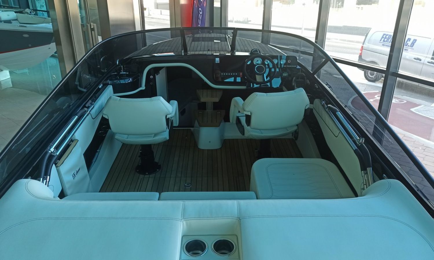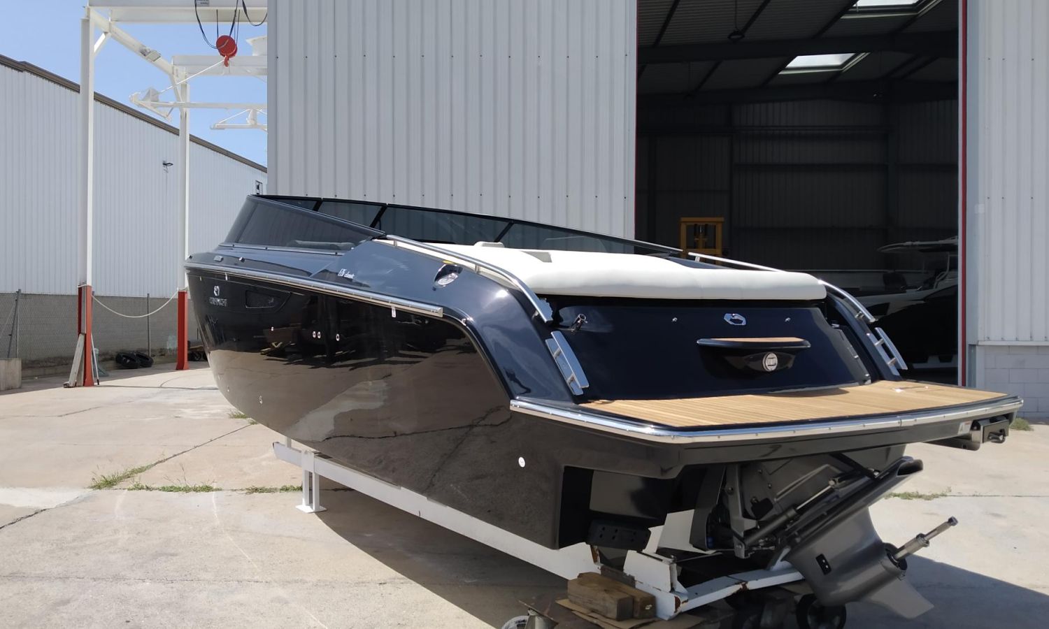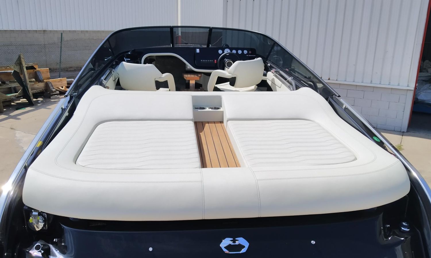 Réservoir d'eaux noires - Taud de soleil microperforée noir - Propulseur d´étrave avec extincteur automatique - Réfrigérateur cabine 42 l - Installation électrique 230 V avec chargeur de batteries et prise de quai avec câble de connexion - 6 Pare-battages et couvertures - Radio Fusion Bluetooth/USB - Table de cockpit avec housse - Teck sur le pont de proue complet - Cockpit en teck - Taud de mouillage - Guindeau électrique avec ancre et chaîne - WC marin électrique avec couvercle - Couvertures pare-battages couleur alternative du standard - Sellerie extérieure Silvertex - Coque et pont en couleur laquée - Certificat CE et déclaration de conformité - Transport du chantier naval à la Costa Brava.Description du bateau