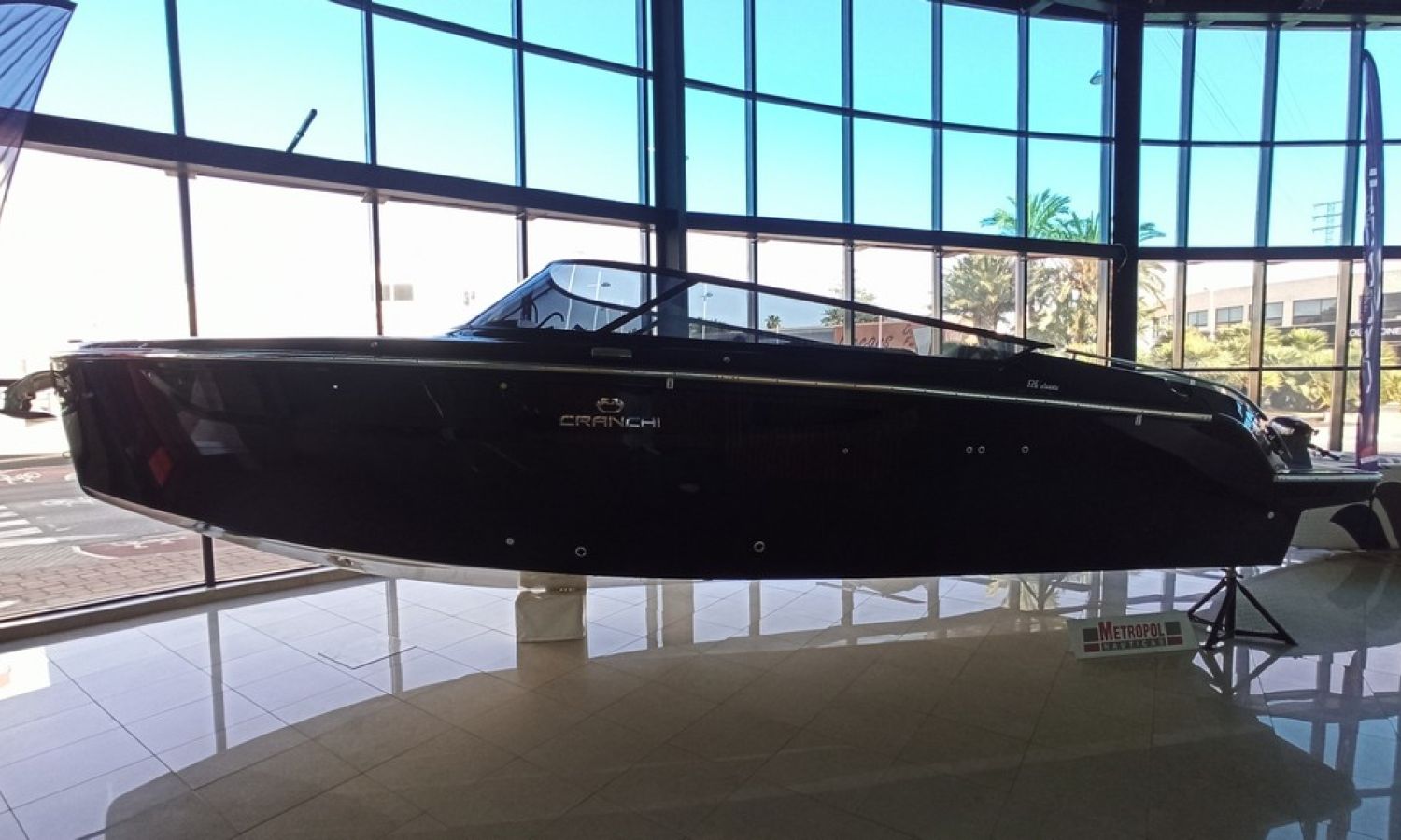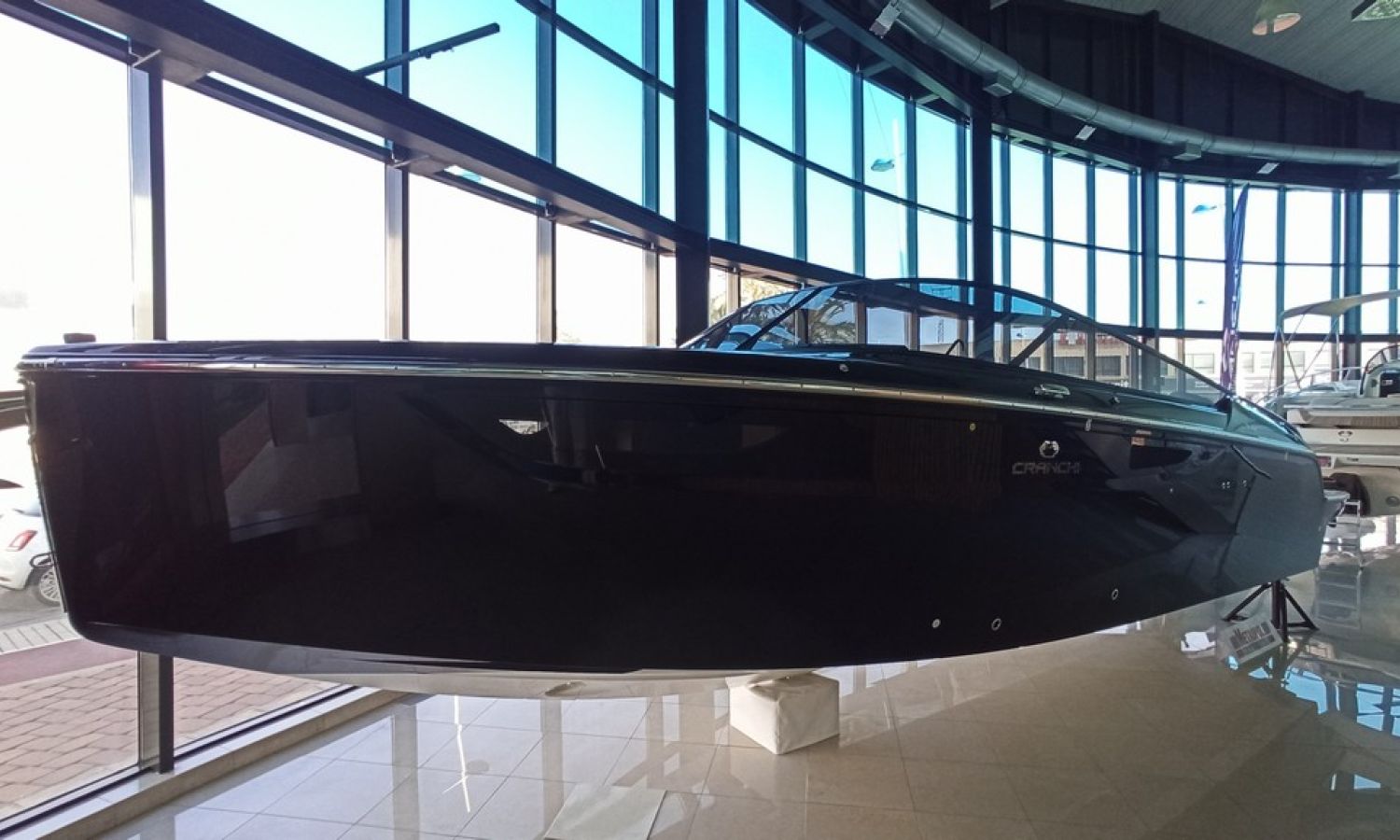 Bateau neuf en stock. Livraison immédiate. Modèle E 26 Classic du chantier naval italien Cranchi de 7,85 mètres de longueur totale. Bateau avec plate-forme de bain confortable, avec cabine et bain de soleil arrière.PAL-Nº 7813Z