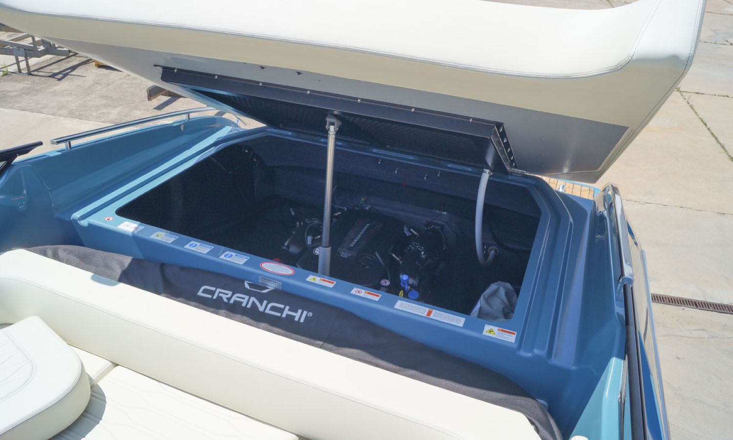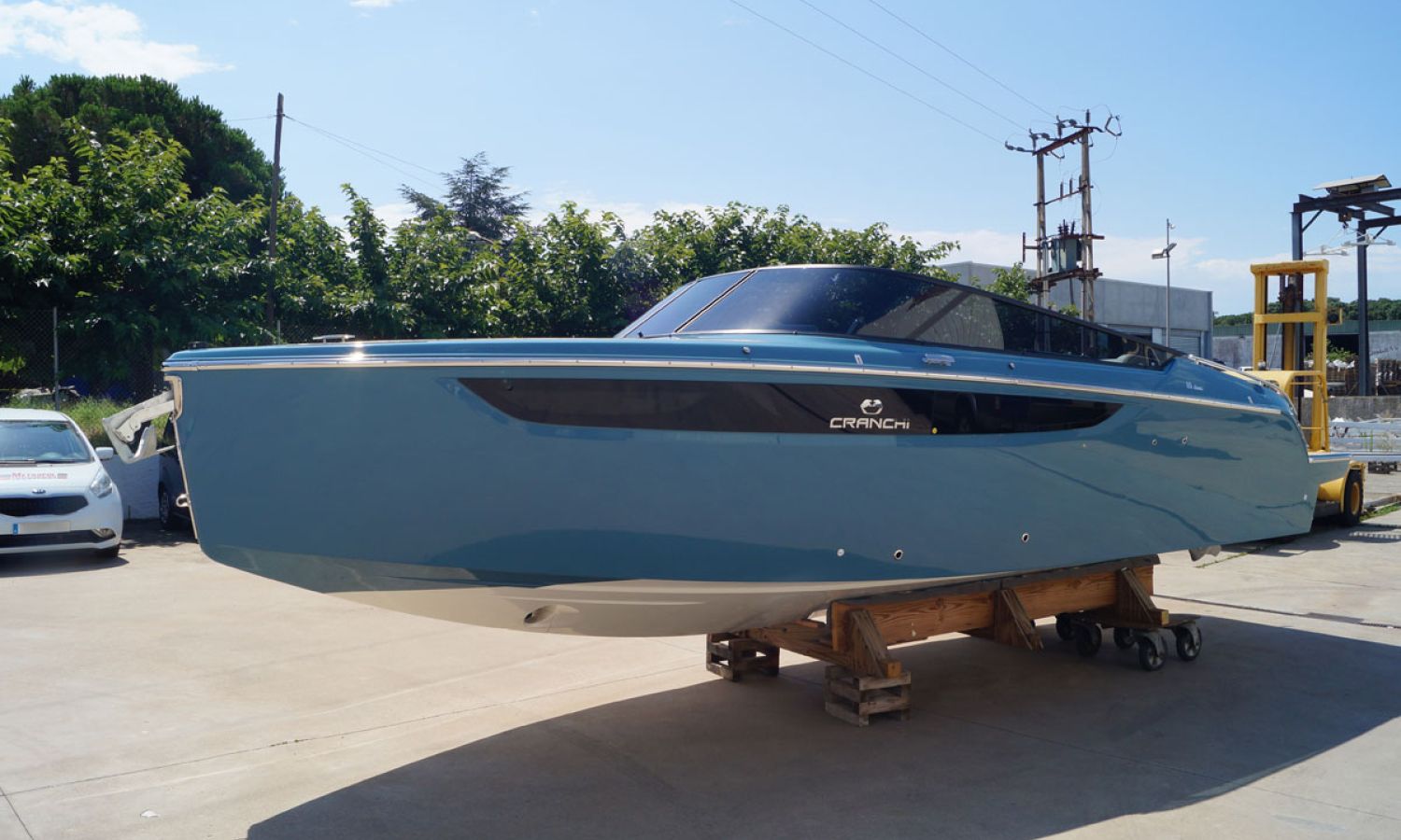 Bateau neuf en stock. Livraison Janvier 2026. Banque de photos, couleurs et équipement peuvent ne correspondre pas exactement à l'unité offerte. Modèle E 26 Classic du chantier naval italien Cranchi de 7,85 mètres de longueur totale. Bateau avec plate-forme de bain confortable, avec cabine et bain de soleil arrière.AST-Nº 7970