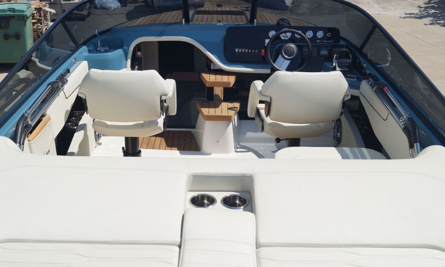 Taud de soleil microperforée noir - Coussin bain de soleil avant - Propulseur d´étrave avec extincteur automatique - Réfrigérateur cabine 42 l - GPS/Chartplotter à couleur + transducteur pour la profondeur, la température de l'eau, interfacé avec le moteur - Installation électrique 230 V avec chargeur de batteries et prise de quai avec câble de connexion - 6 Pare-battages et couvertures - Radio Fusion Bluetooth/USB, 2 haut-parleurs, amplificateur, subwoofer et télécommande dans le cockpit - Table de cockpit avec housse - Teck sur le pont de proue complet - Cockpit en teck - Taud de mouillage - Guindeau électrique 500 W avec 30 m chaîne et ancre 8 kg Ultramarine en acier inoxydable - Couvertures pare-battages couleur alternative du standard - Sellerie extérieure Silvertex couleur alternative du standard - Coque et pont en couleur laquée - Certificat CE et déclaration de conformité - Transport du chantier naval à la Costa Brava.Description du bateau