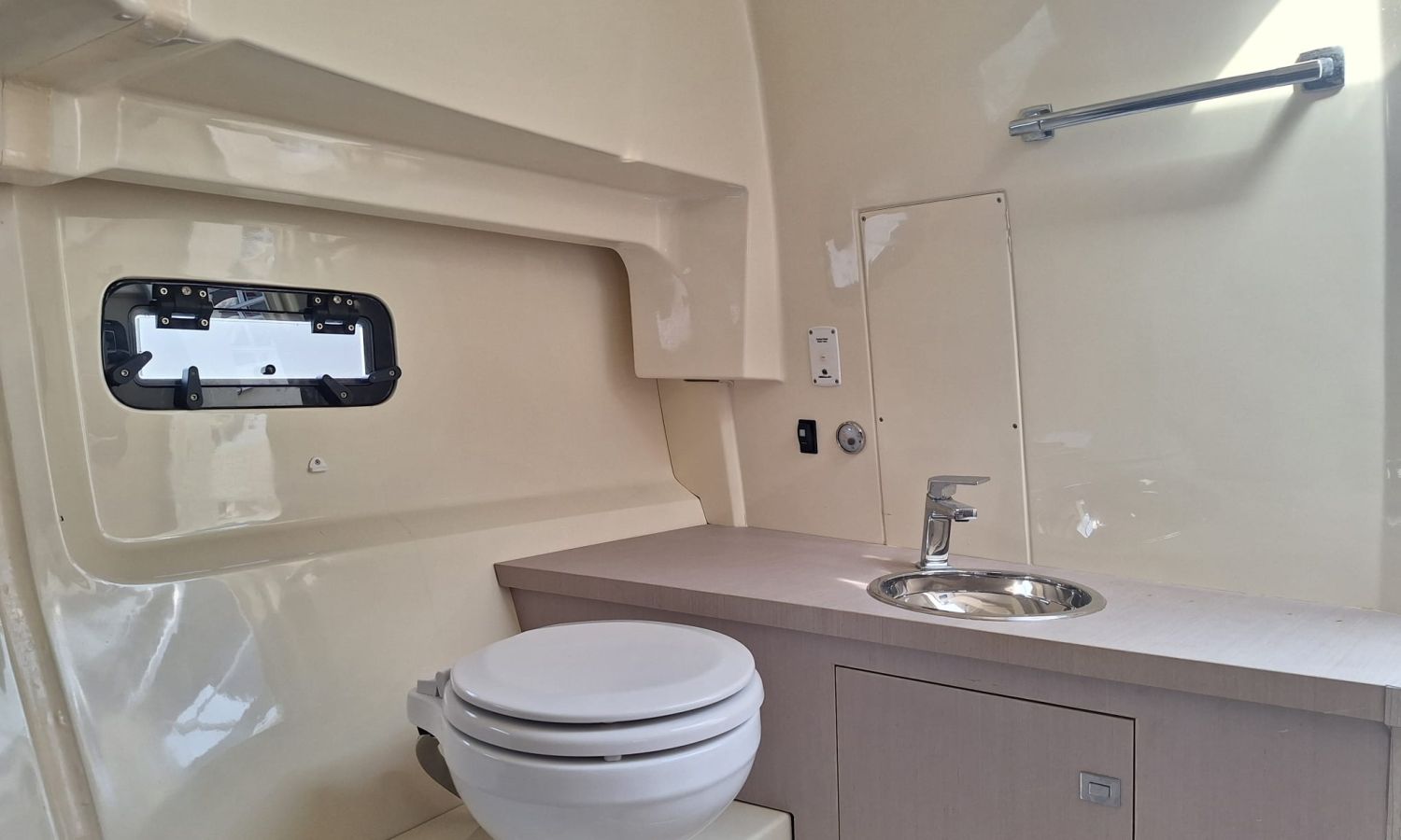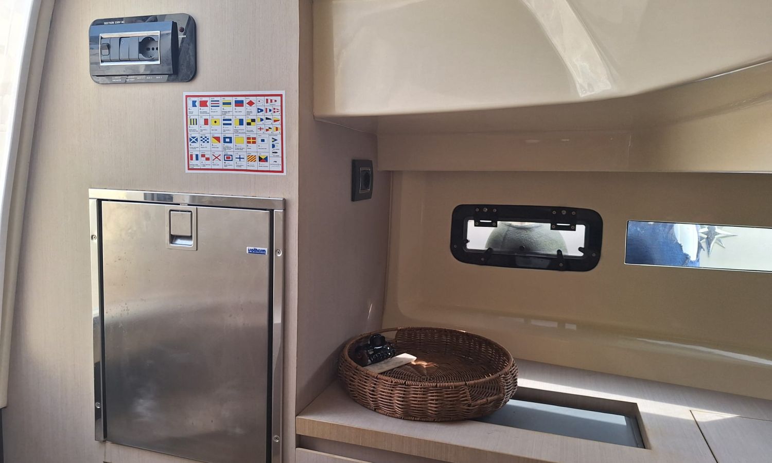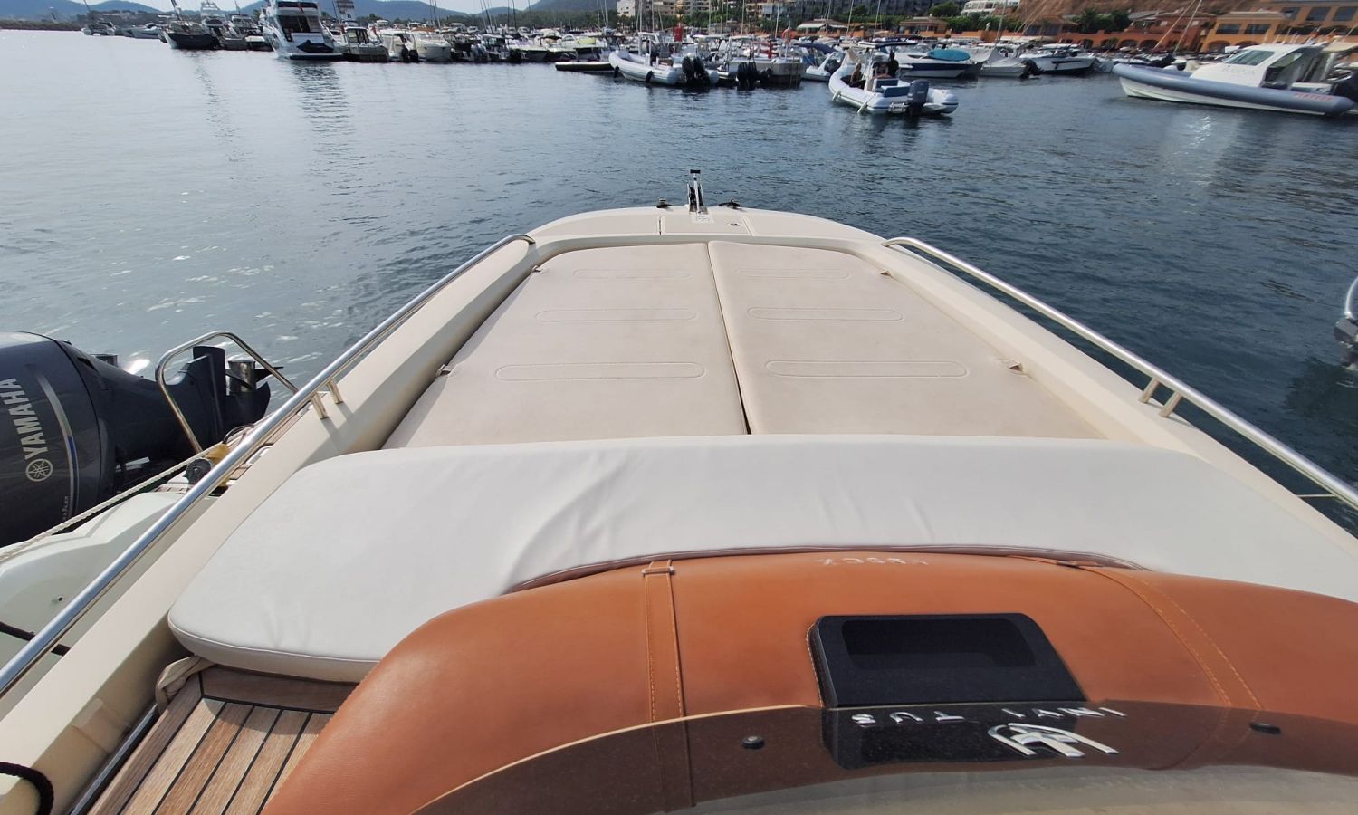 Flaps de réglage électriques - Guideau électrique - Bain de soleil de proue - Toit bimini - Douche de poupe - Gps/Plotter/Sondeur - Chargeur de batterie - Prise d'eau à bâbord - Propulseur d'étrave - Teck - Réfrigérateur - Toilettes marines - Cabine - AntifoulingDescription du bateau