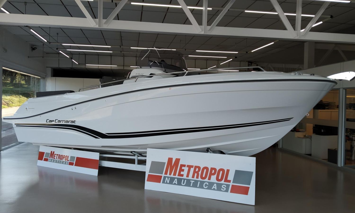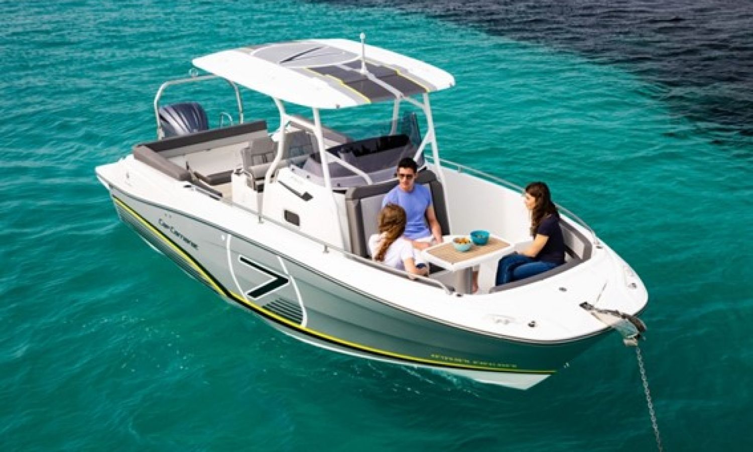 VERSION LEANING POST POUR CUISINE DE BAIGNOIRE - CUISINIÈRE À GAZ ET BOÎTE À GAZ EN LEANING POST - PACK AUDIO FUSION RA70N - BIMINI TOP - NIVEAU D’ÉQUIPEMENT PREMIERE 7.5 CC - KIT D’AMARRAGE - KIT DE FONÇAGE - PROPULSEUR DE PROUE - MOLETTE ÉLECTRIQUE - COMMANDE MOLETTE SUR SALONNIÈRE - PRISE DE QUAI 220V + CHARGEUR - PLATES-FORMES DE BAIN AVEC POLYESTER - DOSSIERS POUR LES SIÈGES LATÉRAUX DE BAIGNOIRE ARRIÈRE LUX - VOLETS AUTOMATIQUES ZIPWAKE - DOSSIERS DE SALON D’AVANT + DOSSIERS AMOVIBLES - DOSSIER CONSOLE AVANT - WC MARIN ET DÉPÔT EAUX NOIRES - PEINTURE ANTIFOULING - PRÉ-GRÉEMENT SUZUKI ÉLECTRIQUE - TRANSPORT CHANTIER NAVAL-COSTA BRAVA - PRÉPARATION, MONTAGE, LANCEMENT ET LIVRAISON AVEC ESSAIS EN MER.Description du bateau