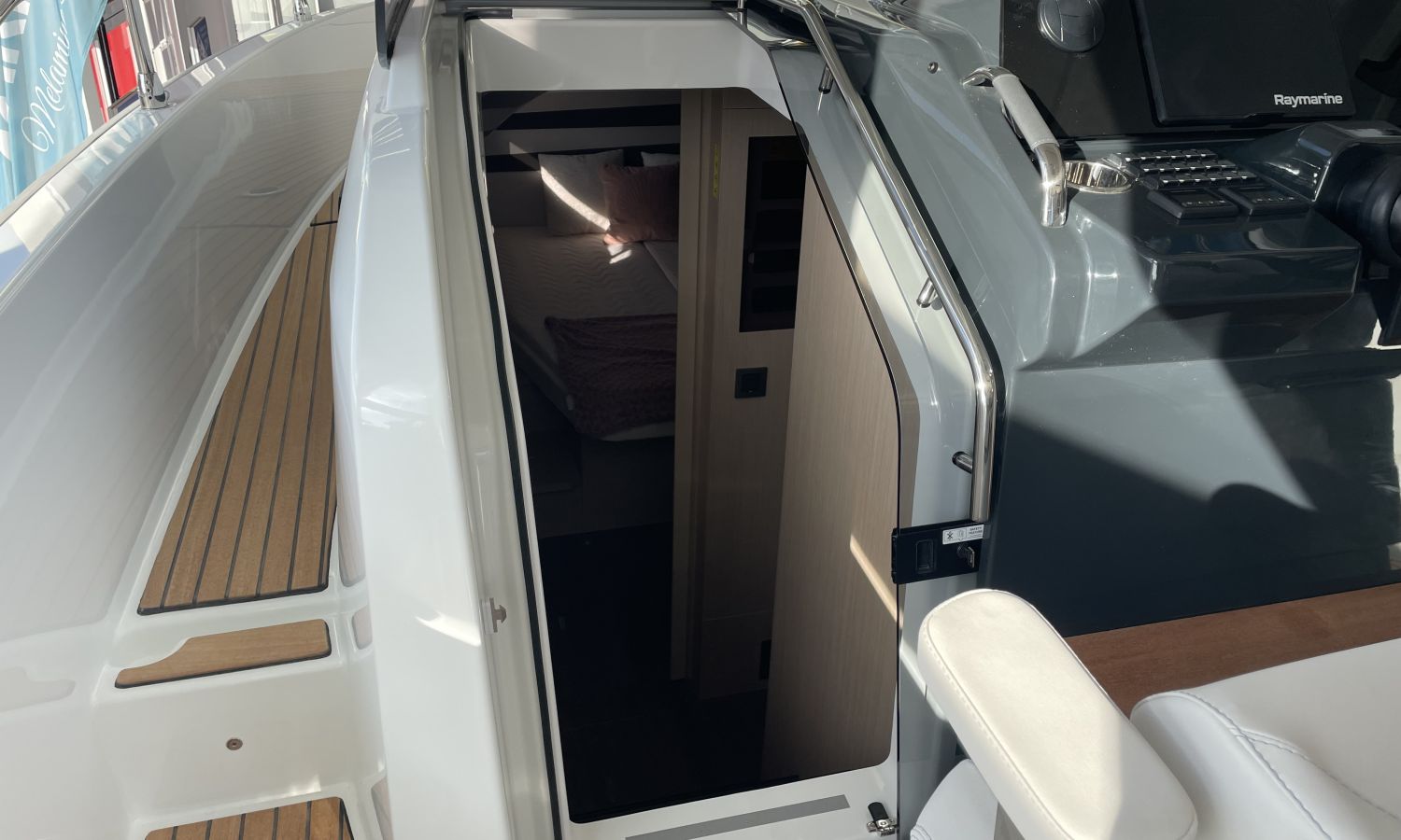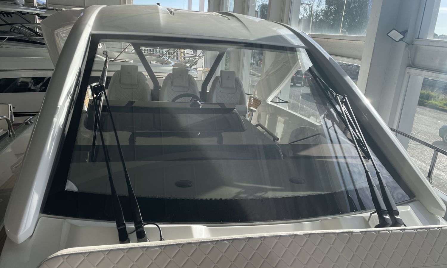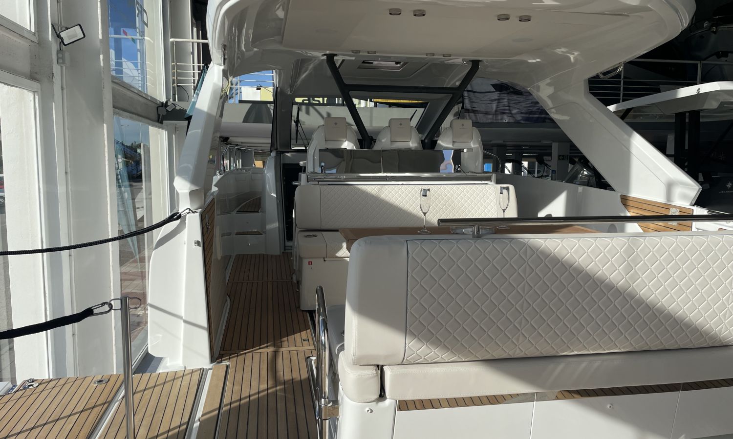 Joystick - Version 2 Cabines + 1 salle de bain - Version Sportop - Kit d’amarrage - Kit ancrage en acier inoxydable - Niveau équipement Premiere - Pack Confort - Four Micro-ondes - Climatisation intérieure 16000 BTU - Batterie supplémentaire 140A - Convertisseur 2000VA - Propulseur avant - Rallonge pour prise de quai 220V - Volets électriques - Échelle de bain pour plates-formes latérales - Coussins cockpit Ice Blue - Table de baignoire en bois avec pieds télescopiques + bain de soleil - Bain de soleil à l’avant Ice Blue - Supplément bain de soleil à l’avant Ice Blue Réfrigérateur dans le meuble baignoire - Teck dans la baignoire et passerelle à l’avant - Fer à repasser dans la cuisine baignoire - Pack électronique Raymarine amélioré - Transport Chantier-Costa Brava - Peinture Antifouling - Préparation, montage, lancement et essais en mer..Description du bateau