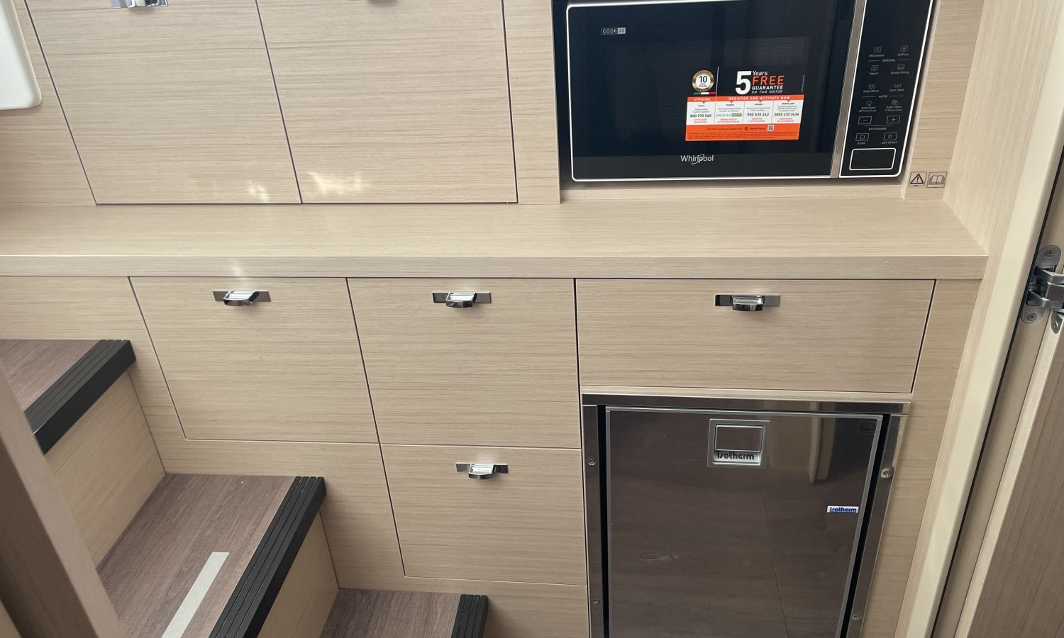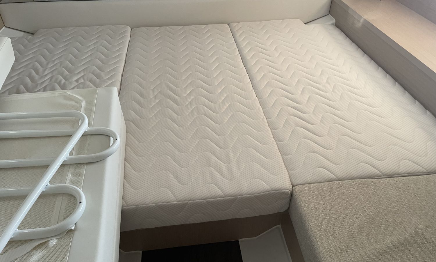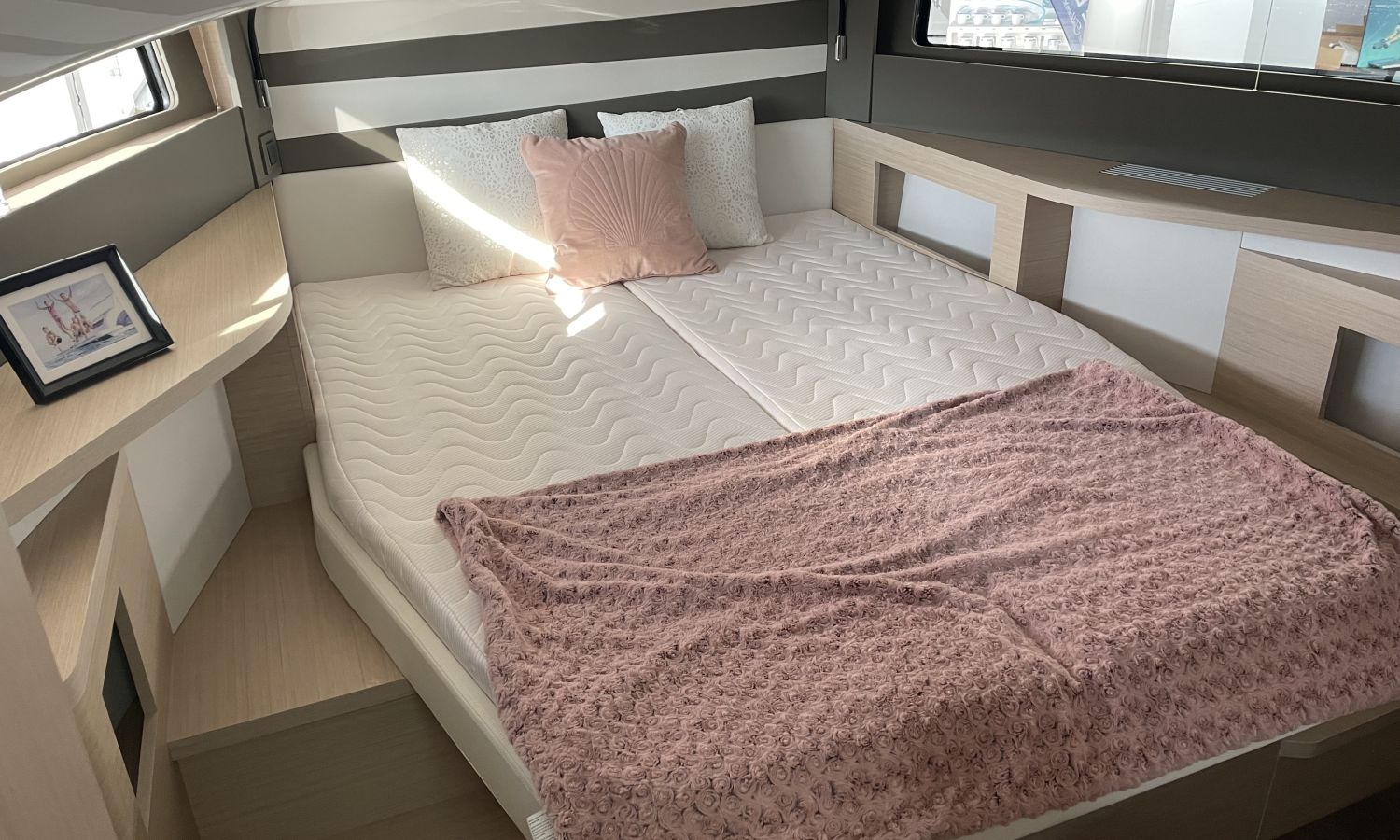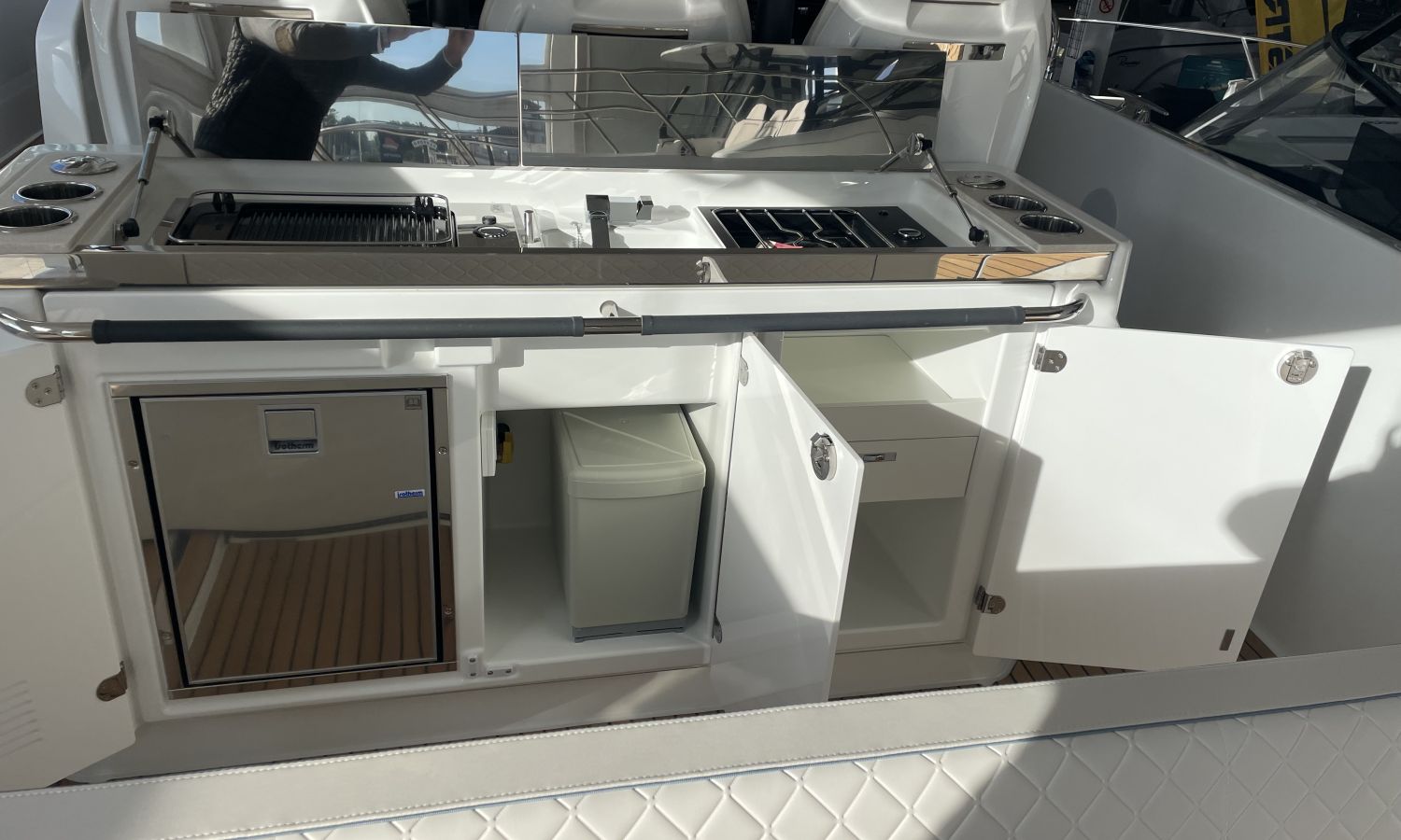 Joystick - Version 2 Cabines + 1 salle de bain - Version Sportop - Kit d’amarrage - Kit ancrage en acier inoxydable - Niveau équipement Premiere - Pack Confort - Four Micro-ondes - Climatisation intérieure 16000 BTU - Batterie supplémentaire 140A - Convertisseur 2000VA - Propulseur avant - Rallonge pour prise de quai 220V - Volets électriques - Échelle de bain pour plates-formes latérales - Coussins cockpit Ice Blue - Table de baignoire en bois avec pieds télescopiques + bain de soleil - Bain de soleil à l’avant Ice Blue - Supplément bain de soleil à l’avant Ice Blue Réfrigérateur dans le meuble baignoire - Teck dans la baignoire et passerelle à l’avant - Fer à repasser dans la cuisine baignoire - Pack électronique Raymarine amélioré - Transport Chantier-Costa Brava - Peinture Antifouling - Préparation, montage, lancement et essais en mer..Description du bateau