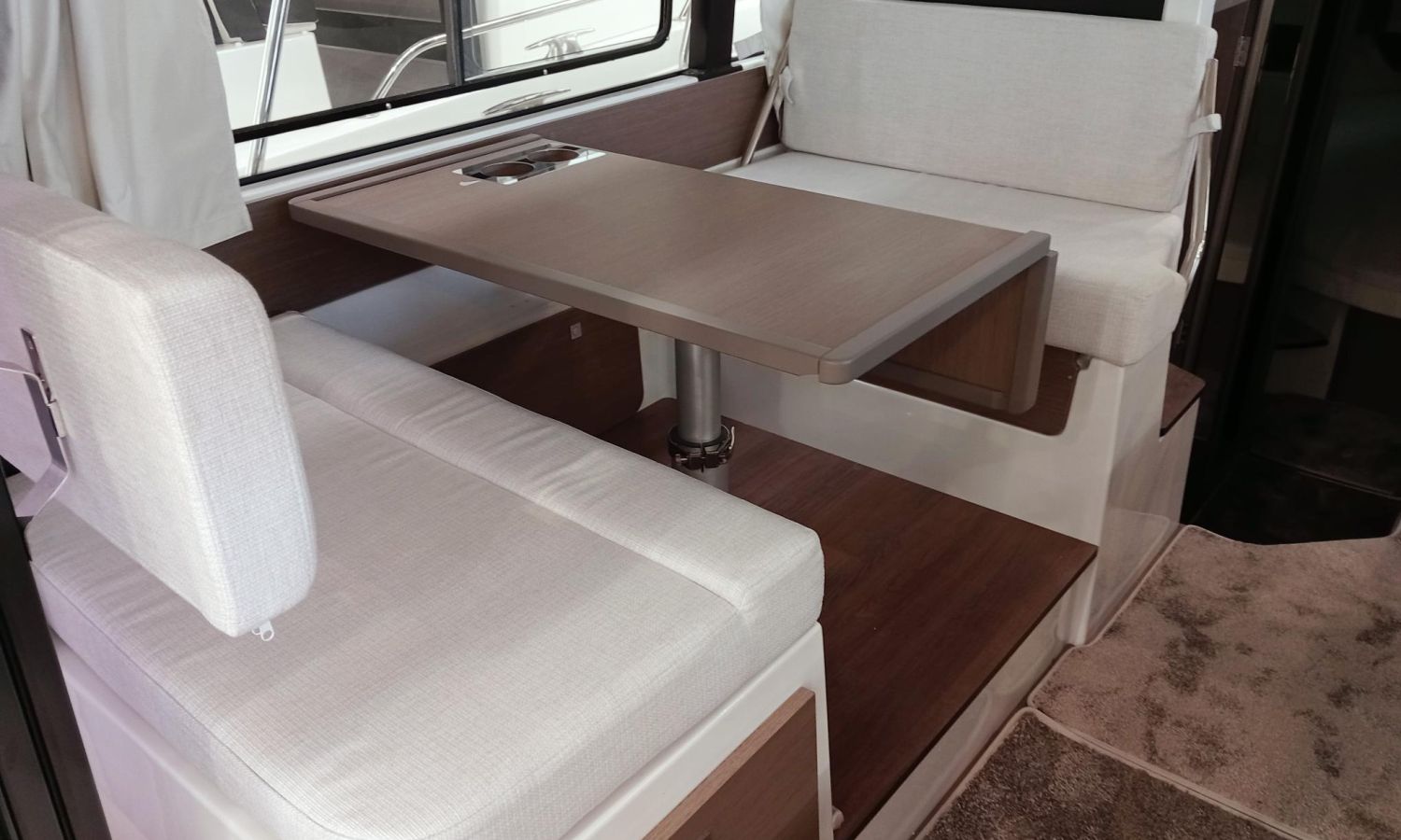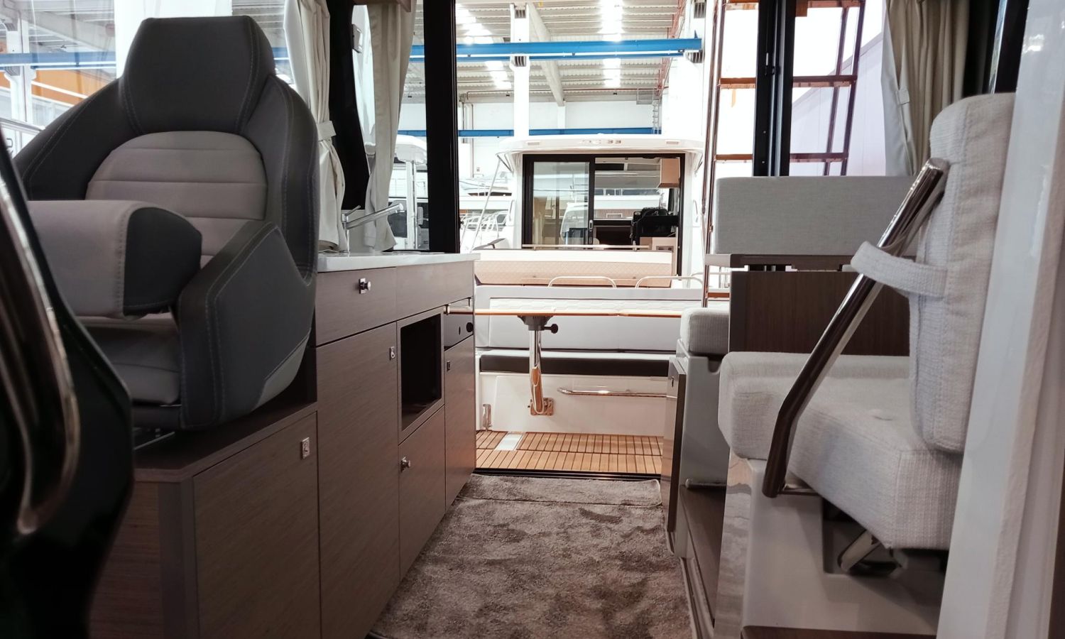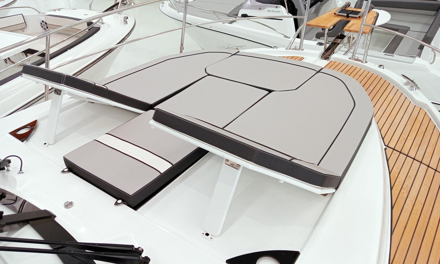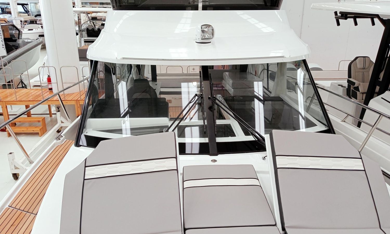 PREMIERE EQUIPMENT LEVEL - PACKAGE AUDIO FUSION RA70N - JUMBO PURE SALON ROOM COVER - BATHROOM SUN CANOPY - BOW SUNBATH COVER - FLYING BRIDGE BIMINI - IMPROVEDED GARMIN ELECTRONICS PACK Map 1223 FLY VERSION - GARMIN VHF RADIO - COMFORT PACK FLY VERSION - KIT D'AMARRAGE - KIT D'ANCRE - PROJECTEUR DE PONT - PROPULSEUR D'ÉTRAVE AVEC DOUBLE COMMANDE (FLY ET GOUVERNAIL) - ÉCHELLE DE COUPÉE AVEC PLATEFORME EN BOIS - TABLE DE FLYBRIDGE + COUSSIN CHAISE LONGUE - BAIN DE SOLEIL DE PROUE SUR LE FLYBRIDGE - BAIN DE SOLEIL DE PROUE AVEC DOSSERETS RÉGLABLES, - 2 TABLES DE COCKPIT EN BOIS POUR LA VERSION FLYBRIDGE - MATELAS POUR TROISIÈME CABINE - LIT DOUBLE SUPPLÉMENTAIRE DANS LE SALON - COFFRE DE RANGEMENT HAUT DANS LA CUISINE - COFFRE DE RANGEMENT HAUT À BÂBORD DANS LE SALON - COFFRE DE RANGEMENT HAUT DANS LA CABINE AVANT - FOUR À MICRO-ONDES PRÉMONTÉ - PLAQUE VITROCÉRAMIQUE 230V - ENSEMBLE DE TAPIS AMOVIBLES DANS LE POSTE DE PILOTAGE ET LES CABINES - COURSIVE, pont avant dans le cockpit - taud d'étrave dans le cockpit - YAMAHA HMEX 2x 250-300 SBW FLY ELECT. - UPGRADE YAMAHA JOYSTICK FOR 2 300 SBW GREY - TRANSPORT DEPUIS LE CHANTIER NAVAL-COSTABRAVA - INSTALLATION DES MOTEURS - PEINTURE ANTIFOULING.Description du bateau