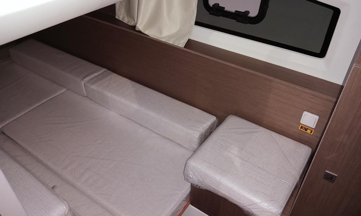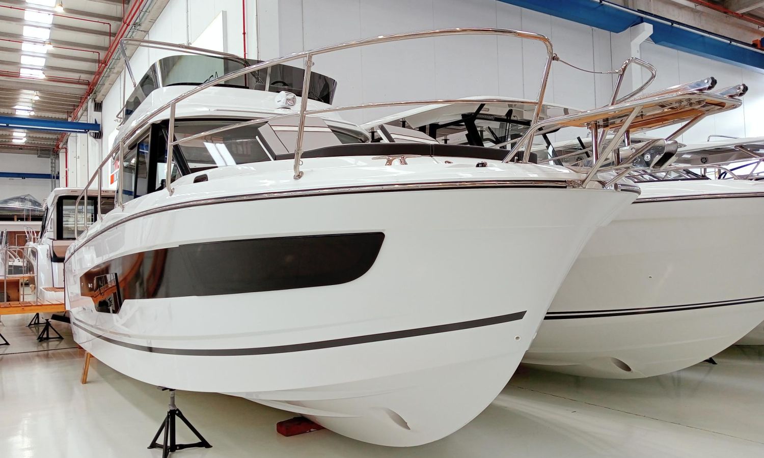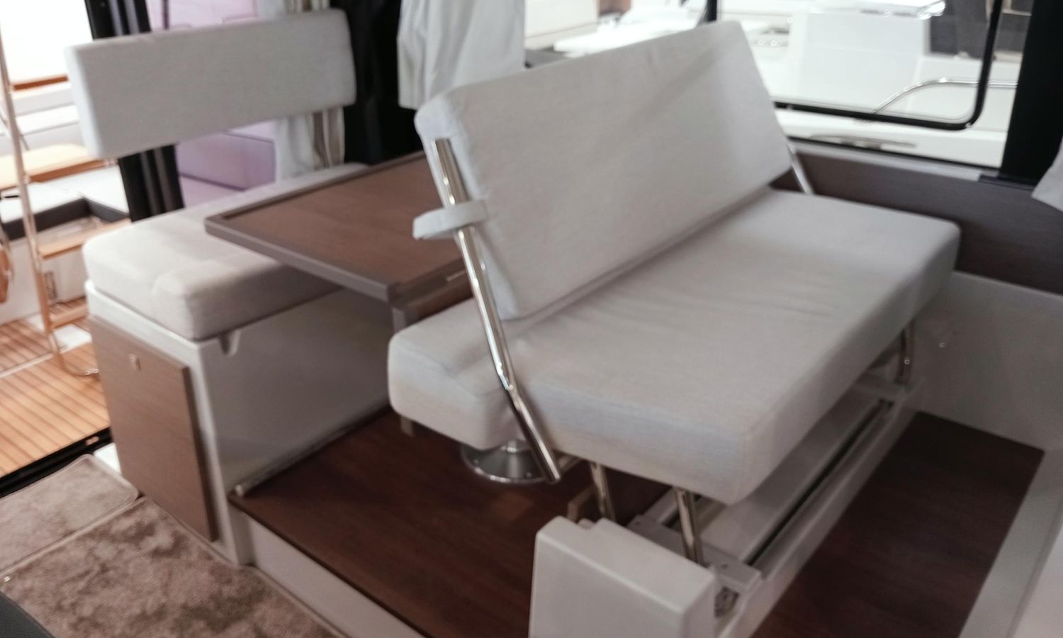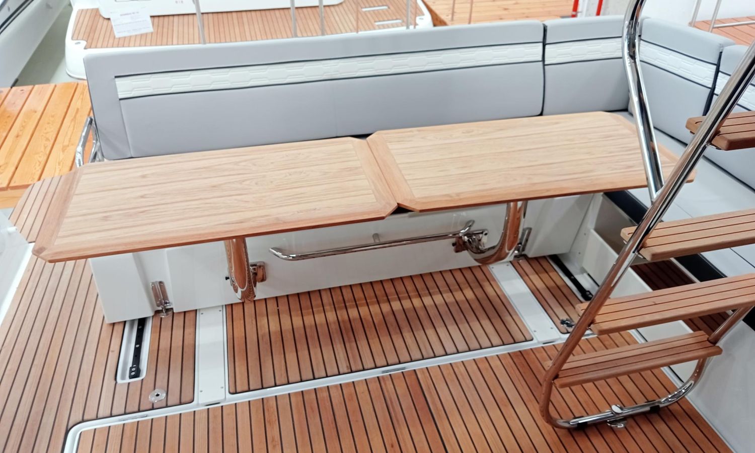 PREMIERE EQUIPMENT LEVEL - PACKAGE AUDIO FUSION RA70N - JUMBO PURE SALON ROOM COVER - BATHROOM SUN CANOPY - BOW SUNBATH COVER - FLYING BRIDGE BIMINI - IMPROVEDED GARMIN ELECTRONICS PACK Map 1223 FLY VERSION - GARMIN VHF RADIO - COMFORT PACK FLY VERSION - KIT D'AMARRAGE - KIT D'ANCRE - PROJECTEUR DE PONT - PROPULSEUR D'ÉTRAVE AVEC DOUBLE COMMANDE (FLY ET GOUVERNAIL) - ÉCHELLE DE COUPÉE AVEC PLATEFORME EN BOIS - TABLE DE FLYBRIDGE + COUSSIN CHAISE LONGUE - BAIN DE SOLEIL DE PROUE SUR LE FLYBRIDGE - BAIN DE SOLEIL DE PROUE AVEC DOSSERETS RÉGLABLES, - 2 TABLES DE COCKPIT EN BOIS POUR LA VERSION FLYBRIDGE - MATELAS POUR TROISIÈME CABINE - LIT DOUBLE SUPPLÉMENTAIRE DANS LE SALON - COFFRE DE RANGEMENT HAUT DANS LA CUISINE - COFFRE DE RANGEMENT HAUT À BÂBORD DANS LE SALON - COFFRE DE RANGEMENT HAUT DANS LA CABINE AVANT - FOUR À MICRO-ONDES PRÉMONTÉ - PLAQUE VITROCÉRAMIQUE 230V - ENSEMBLE DE TAPIS AMOVIBLES DANS LE POSTE DE PILOTAGE ET LES CABINES - COURSIVE, pont avant dans le cockpit - taud d'étrave dans le cockpit - YAMAHA HMEX 2x 250-300 SBW FLY ELECT. - UPGRADE YAMAHA JOYSTICK FOR 2 300 SBW GREY - TRANSPORT DEPUIS LE CHANTIER NAVAL-COSTABRAVA - INSTALLATION DES MOTEURS - PEINTURE ANTIFOULING.Description du bateau