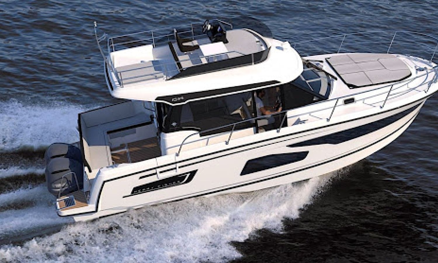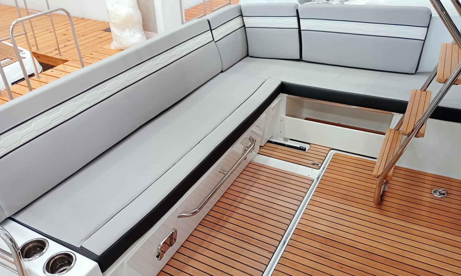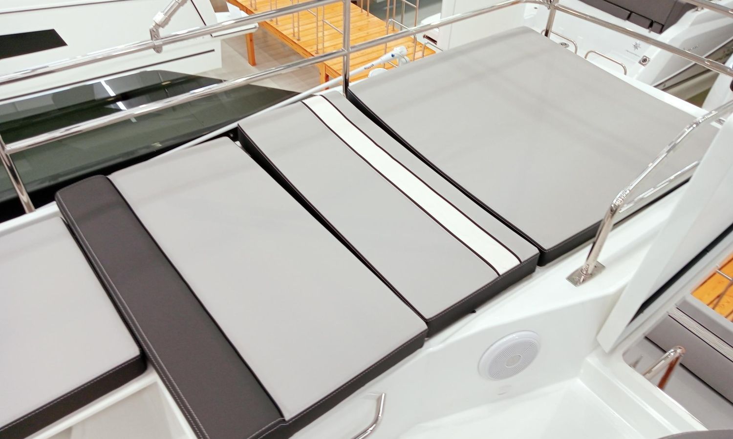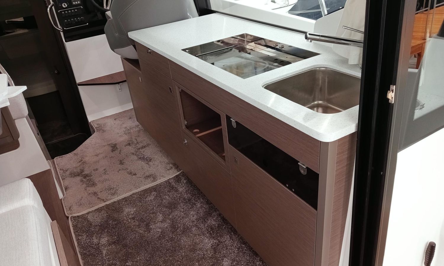 PREMIERE EQUIPMENT LEVEL - PACKAGE AUDIO FUSION RA70N - JUMBO PURE SALON ROOM COVER - BATHROOM SUN CANOPY - BOW SUNBATH COVER - FLYING BRIDGE BIMINI - IMPROVEDED GARMIN ELECTRONICS PACK Map 1223 FLY VERSION - GARMIN VHF RADIO - COMFORT PACK FLY VERSION - KIT D'AMARRAGE - KIT D'ANCRE - PROJECTEUR DE PONT - PROPULSEUR D'ÉTRAVE AVEC DOUBLE COMMANDE (FLY ET GOUVERNAIL) - ÉCHELLE DE COUPÉE AVEC PLATEFORME EN BOIS - TABLE DE FLYBRIDGE + COUSSIN CHAISE LONGUE - BAIN DE SOLEIL DE PROUE SUR LE FLYBRIDGE - BAIN DE SOLEIL DE PROUE AVEC DOSSERETS RÉGLABLES, - 2 TABLES DE COCKPIT EN BOIS POUR LA VERSION FLYBRIDGE - MATELAS POUR TROISIÈME CABINE - LIT DOUBLE SUPPLÉMENTAIRE DANS LE SALON - COFFRE DE RANGEMENT HAUT DANS LA CUISINE - COFFRE DE RANGEMENT HAUT À BÂBORD DANS LE SALON - COFFRE DE RANGEMENT HAUT DANS LA CABINE AVANT - FOUR À MICRO-ONDES PRÉMONTÉ - PLAQUE VITROCÉRAMIQUE 230V - ENSEMBLE DE TAPIS AMOVIBLES DANS LE POSTE DE PILOTAGE ET LES CABINES - COURSIVE, pont avant dans le cockpit - taud d'étrave dans le cockpit - YAMAHA HMEX 2x 250-300 SBW FLY ELECT. - UPGRADE YAMAHA JOYSTICK FOR 2 300 SBW GREY - TRANSPORT DEPUIS LE CHANTIER NAVAL-COSTABRAVA - INSTALLATION DES MOTEURS - PEINTURE ANTIFOULING.Description du bateau