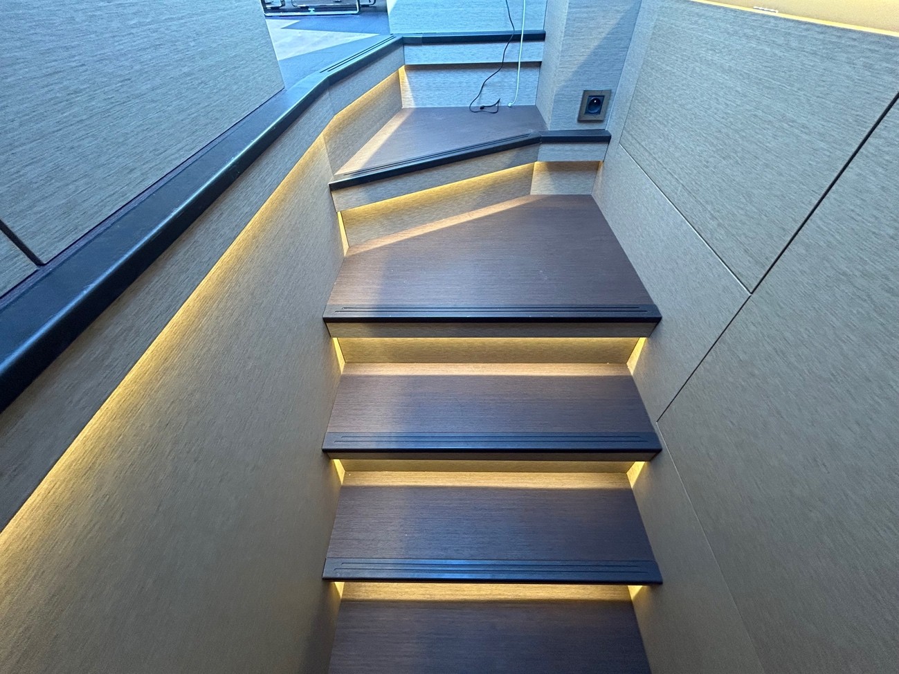 VERSION : Salon avec canapé à tribordFINITION : Chêne gris – 4 cabines