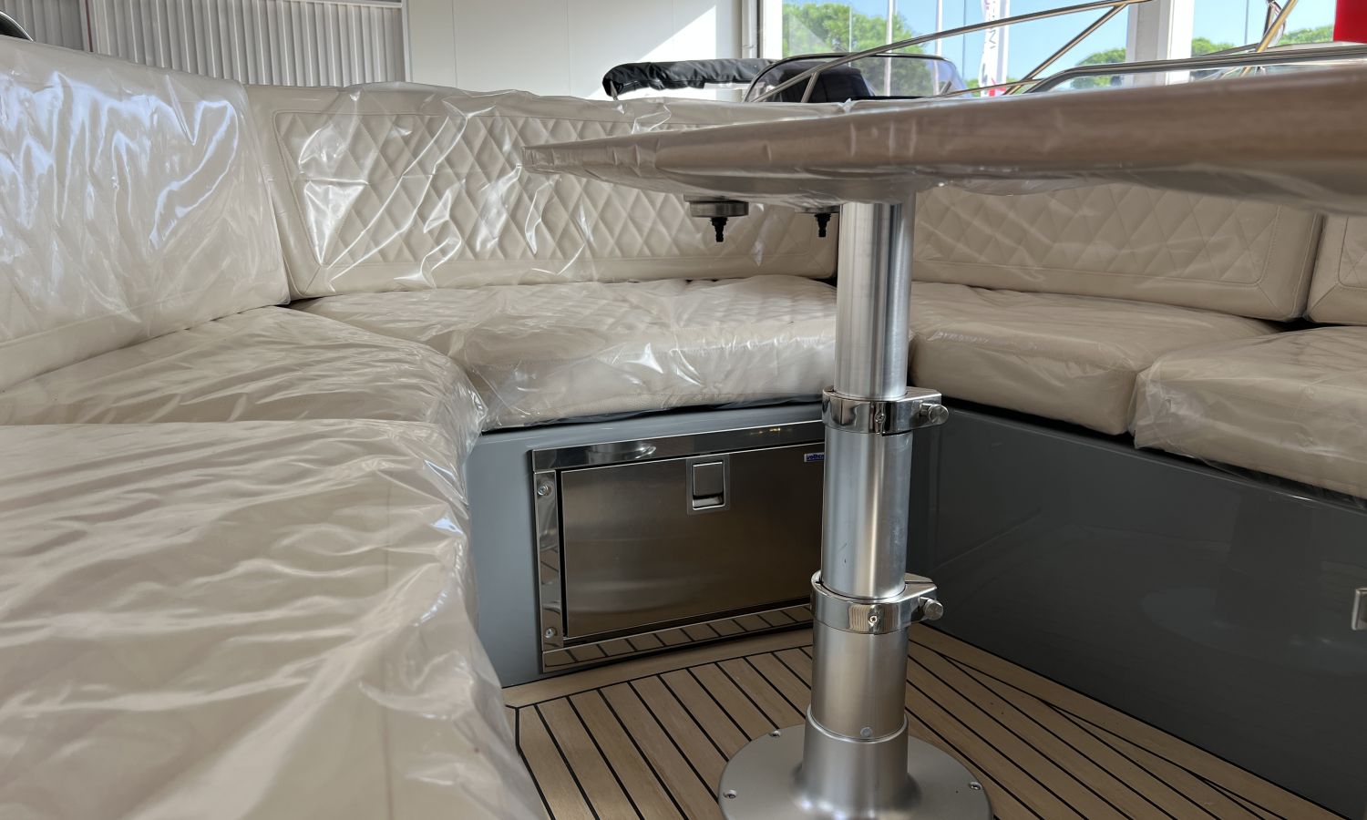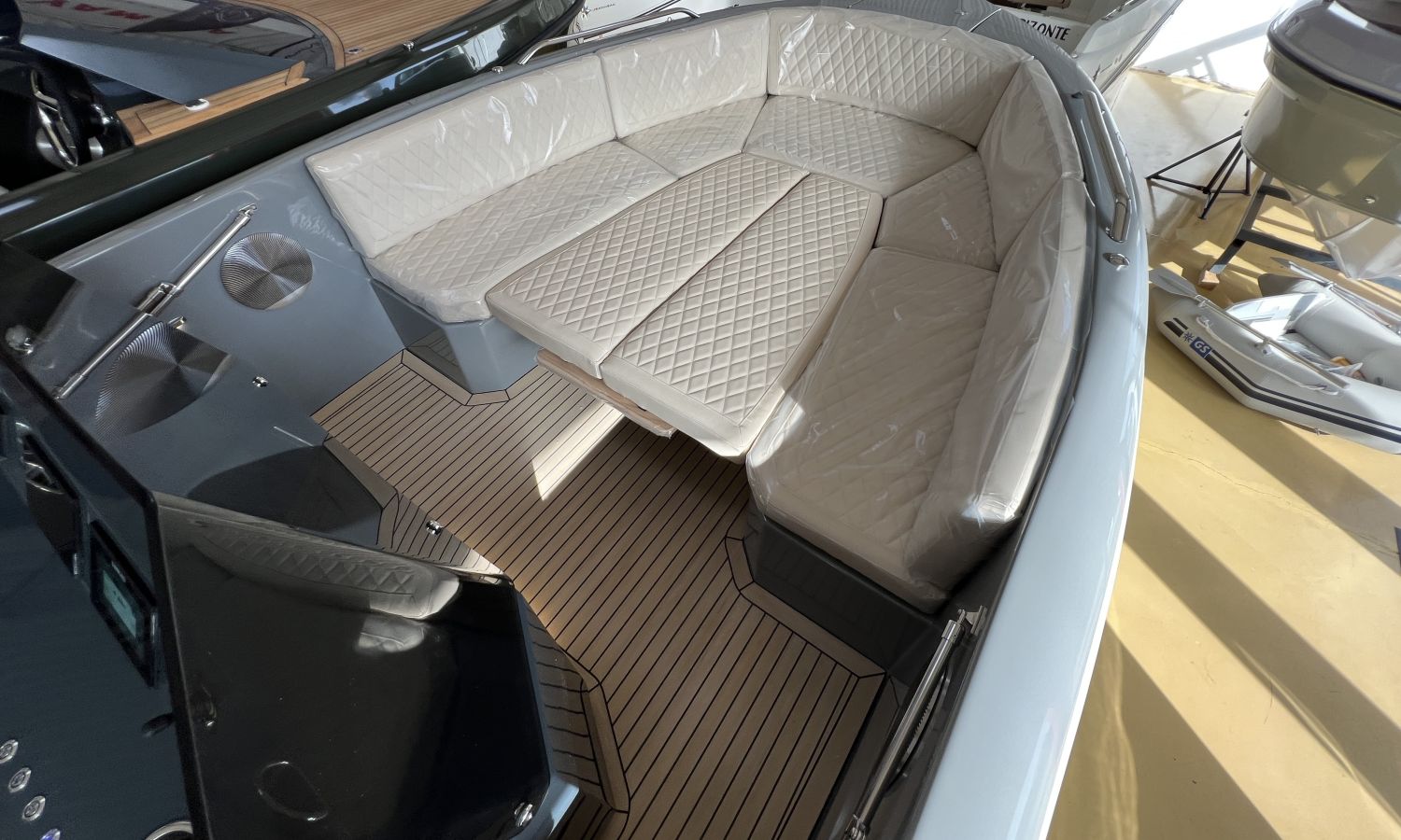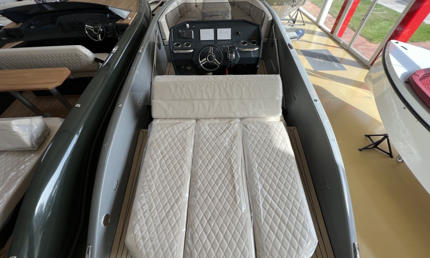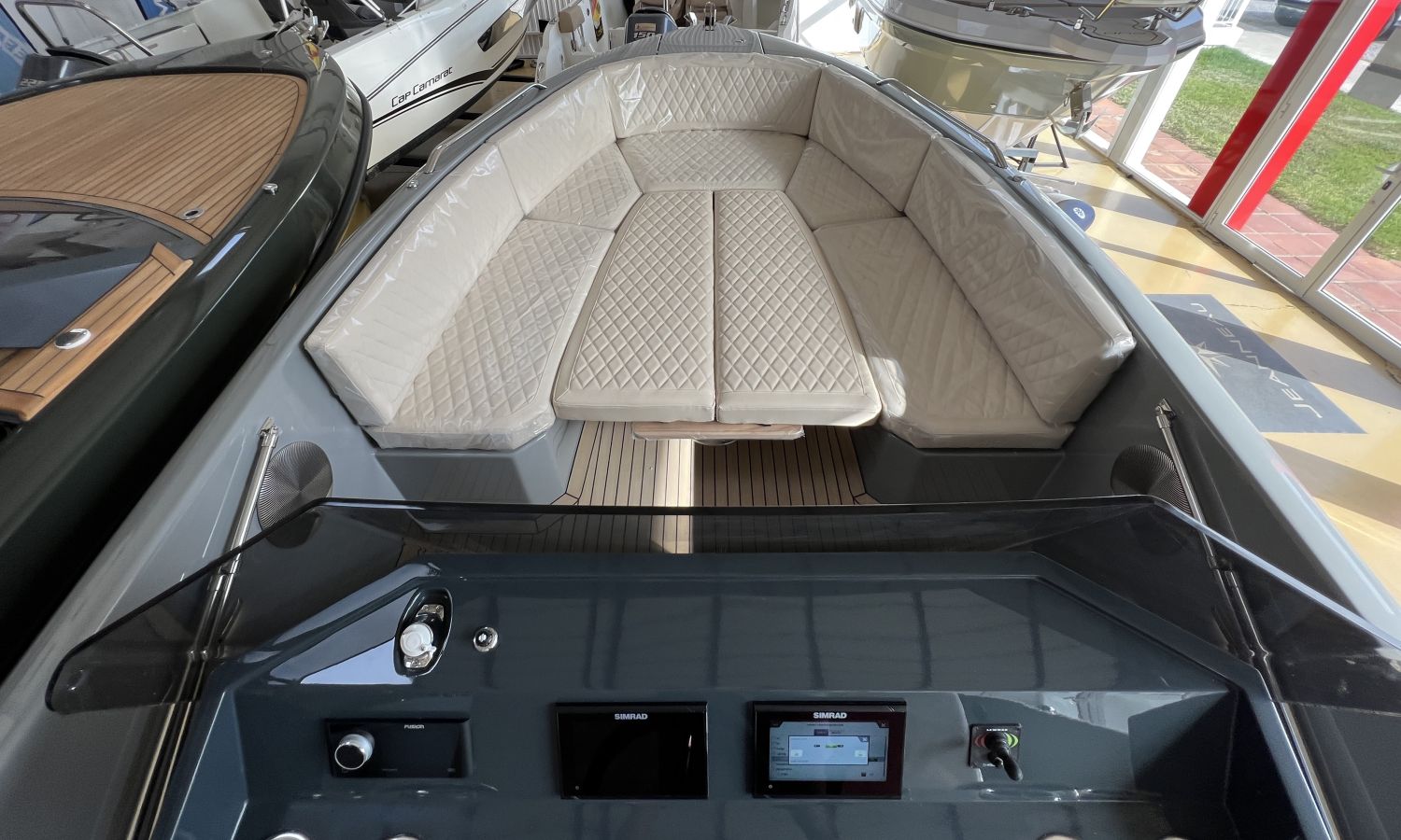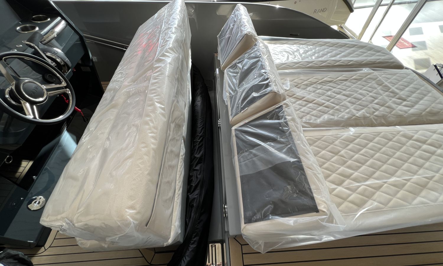 COULEUR DU CASQUE GRIS CIEL (RAL 7037) - SELLERIE CRÈME DIAMANT (BG 3151) - CAPOTE DE BIMINI - CAPOTE DE BAIN - ÉCLAIRAGE LED DANS LA SALLE DE BAIN - CROCHET À SKI - REPOSE-CAPOTE - DOUCHE D'ÉTRAVE - CHARGEUR DE BATTERIE - TREUIL ÉLECTRIQUE ANCLA - B&O PREMIUM AUDIO EQUIPMENT - FENDERS - SOLARIUM CUSHIONS FORWARD - 12V COOLER BOX - FORW HELICOM - DEPTH SENSOR - GRAY DEFENCE BORDER - TRANSPORT CHANTIER NAVAL-COSTA-BRAVA - PREMIUM LADDER - BOW SUN CANOPY EXTENSION.Description du bateau