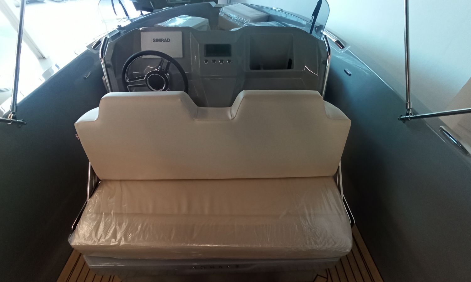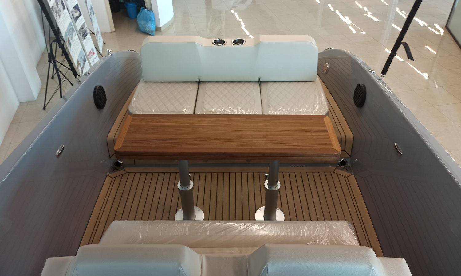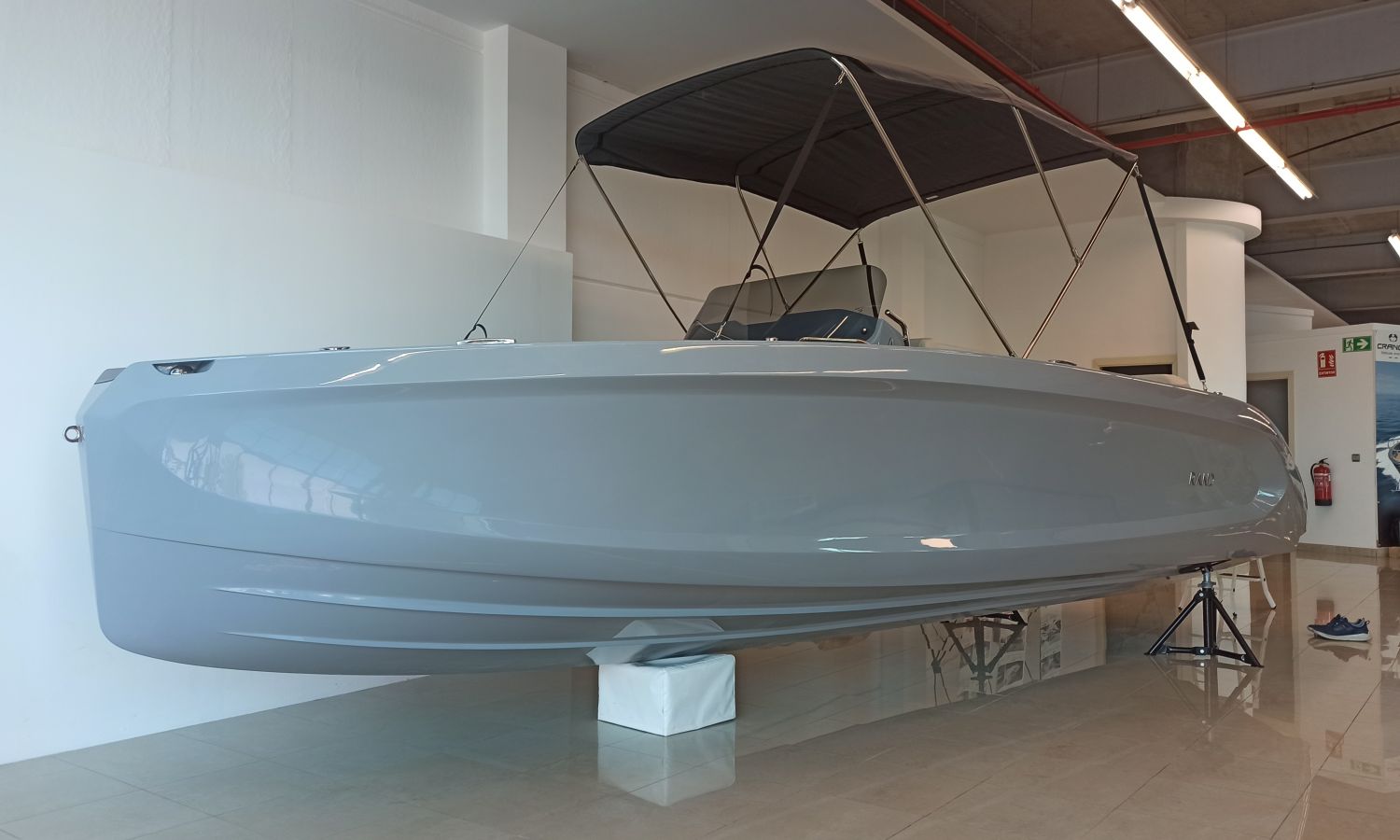 COULEUR DE LA COQUE TITANE - SELLERIE EN CREME DE DIAMANT - CROCHET POUR SPORTS NAUTIQUES - 4 PORTE-GOBELETS EN INOX SUR LA TABLE DE COCKPIT - DOUCHE DE POUPE - PARE-BATTAGES + SUPPORTS - ÉCLAIRAGE LED DANS LE COCKPIT - ÉCHELLE DE BAIN PREMIUM - BAIN DE SOLEIL AVANT - CHARGEUR DE BATTERIE - BAIN DE SOLEIL DANS LE COCKPIT - FRIGO DANS L'ÉCOUTILLE AVANT - BIMINI TOP -FLAPS AUTOMATIQUES- TRANSPORT PAR LE CHANTIER - COSTA-BRAVA - INSTALLATION DU MOTEUR + PRE-RIGGING.Description du bateau