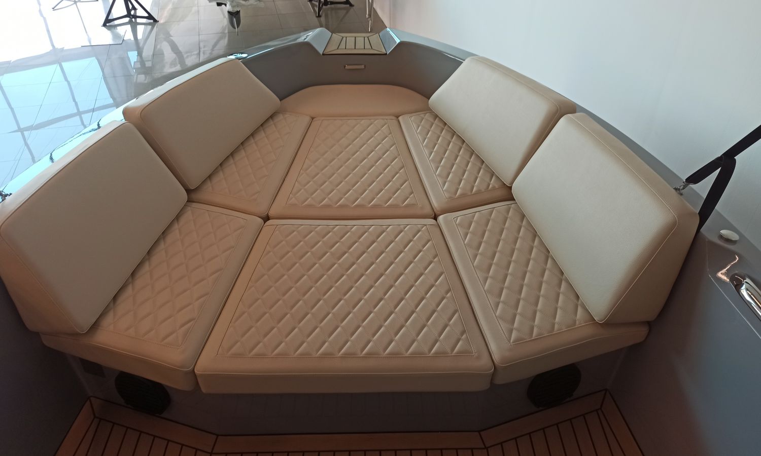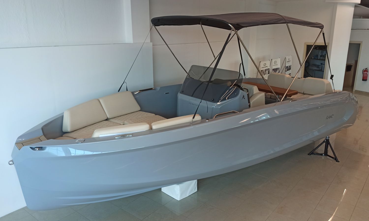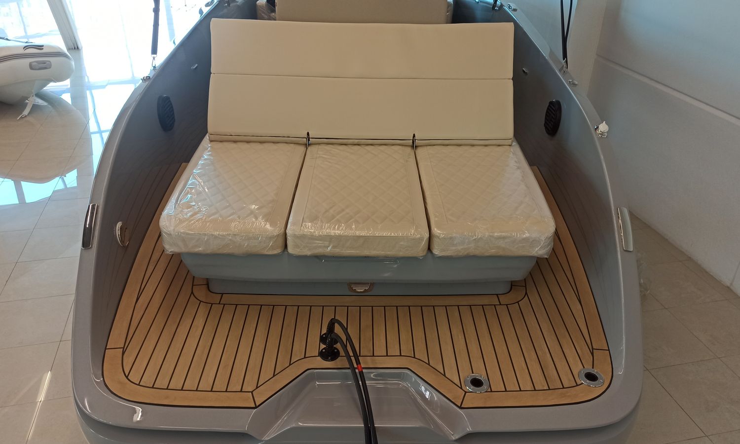 COULEUR DE LA COQUE TITANE - SELLERIE EN CREME DE DIAMANT - CROCHET POUR SPORTS NAUTIQUES - 4 PORTE-GOBELETS EN INOX SUR LA TABLE DE COCKPIT - DOUCHE DE POUPE - PARE-BATTAGES + SUPPORTS - ÉCLAIRAGE LED DANS LE COCKPIT - ÉCHELLE DE BAIN PREMIUM - BAIN DE SOLEIL AVANT - CHARGEUR DE BATTERIE - BAIN DE SOLEIL DANS LE COCKPIT - FRIGO DANS L'ÉCOUTILLE AVANT - BIMINI TOP -FLAPS AUTOMATIQUES- TRANSPORT PAR LE CHANTIER - COSTA-BRAVA - INSTALLATION DU MOTEUR + PRE-RIGGING.Description du bateau