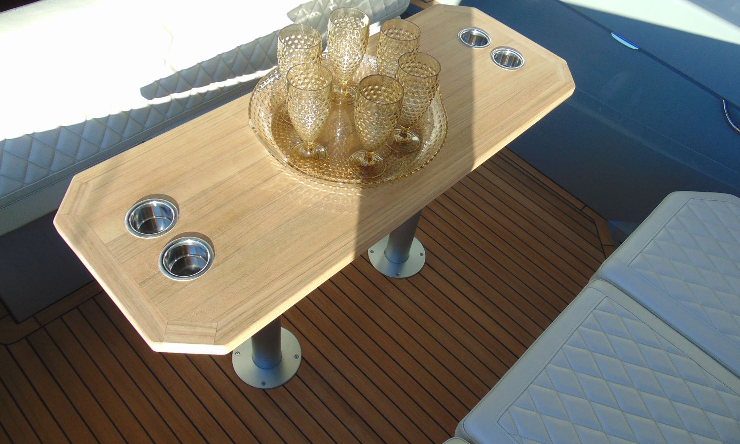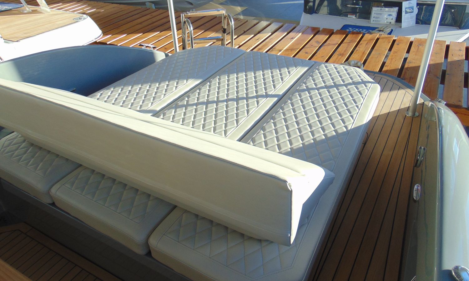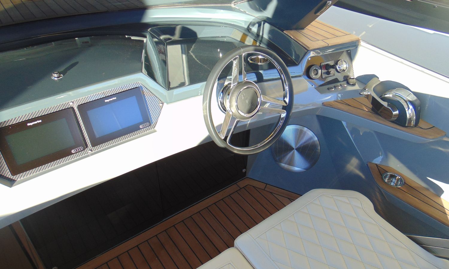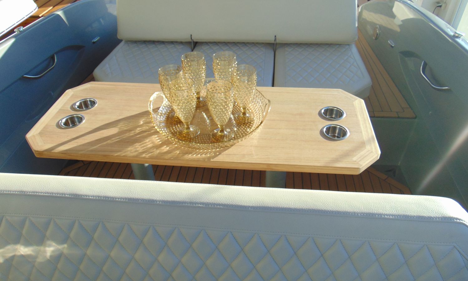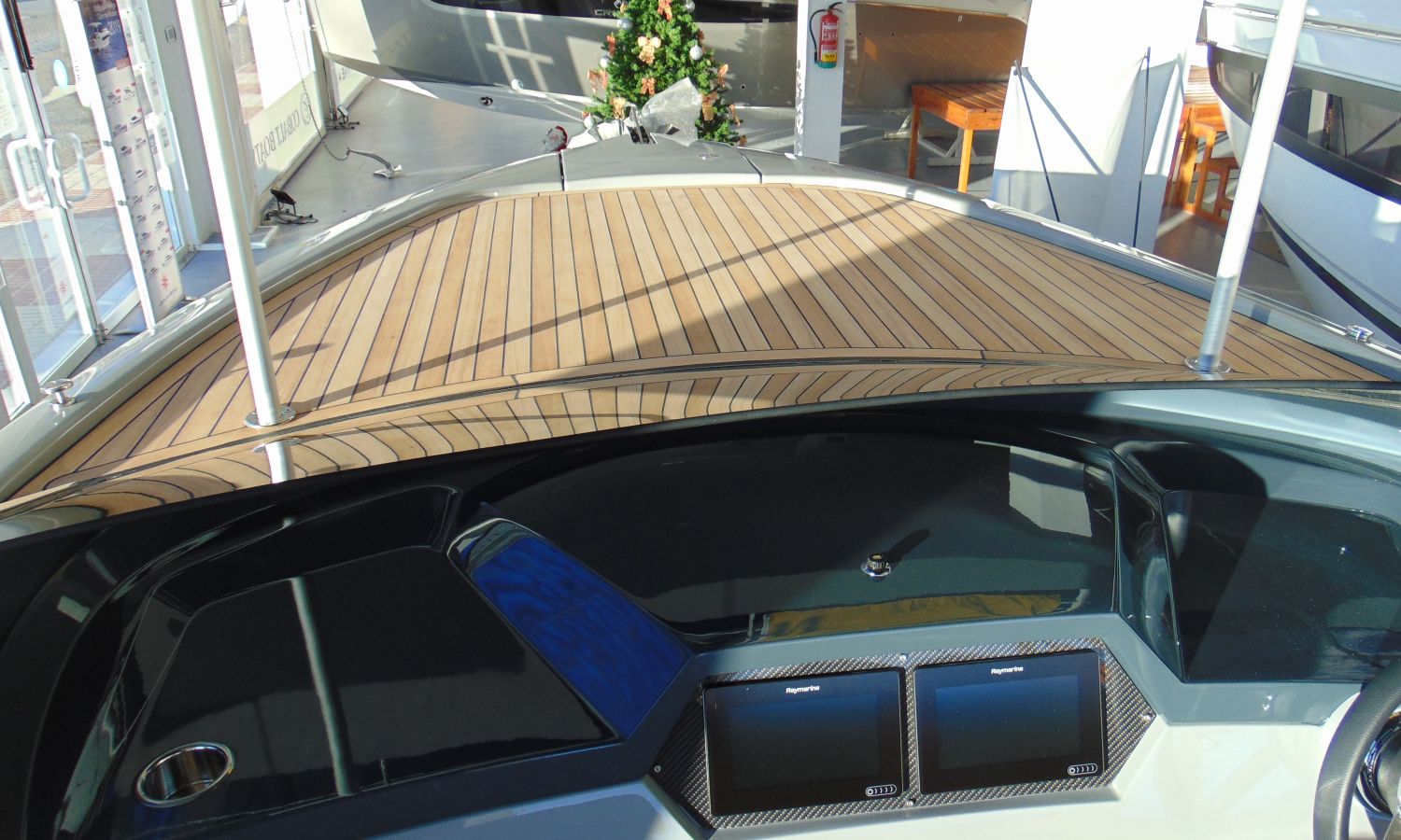 COQUE COULEUR GRISE SKI - SELLERIE EN CUIR DIAMANT - GUINDEAU ELECTRIQUE + KIT DE MOUILLAGE - DEUX ECRANS RAYMARINE 7" SUR LE TABLEAU DE BORD AVEC SYSTEME DOMOTIQUE - CROCHET A SKI - PORTE-VERRE - DOUCHE DE COCKPIT - FEUX A LEDS DANS LE COCKPIT - DEFENSES - ECHELLE DE BAIN PREMIUM - REFRIGERATEUR LUXE - TAUD DE MOUILLAGE - CAPTEUR DE PROFONDEUR - CHARGEUR DE BATTERIE – AUVENT DE TYPE HAIMA - PROPULSEUR D'ETRAVE - SYSTEME AUDIO B&O - EXTINCTEUR AUTOMATIQUE - TECK SUR PONT ET PLATEFORME DE BAIN - TRANSPORT CHANTIER NAVAL-COSTA-BRAVA.Description du bateau