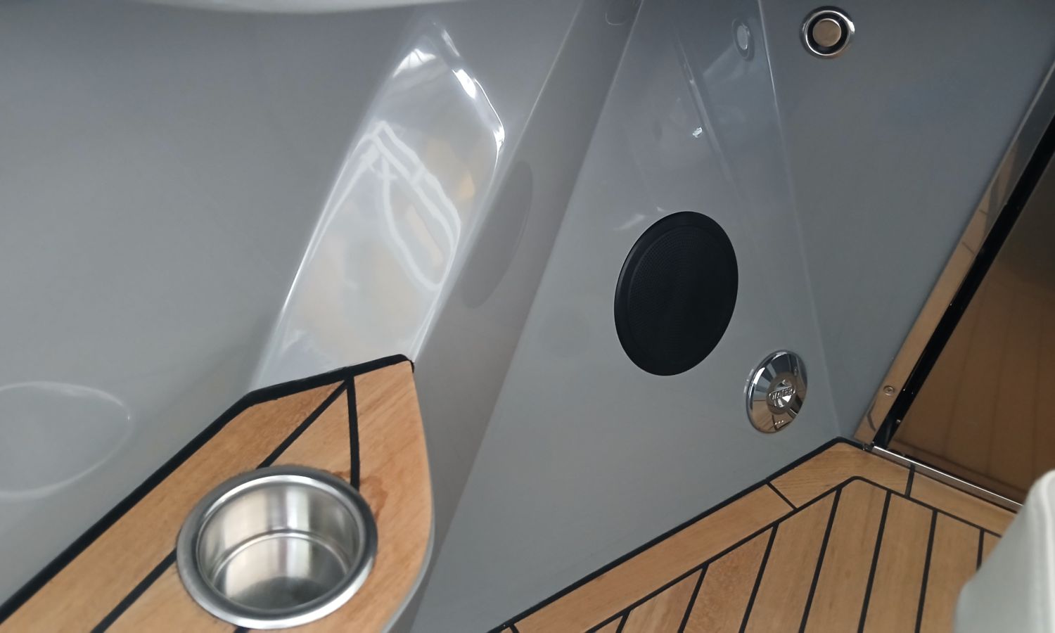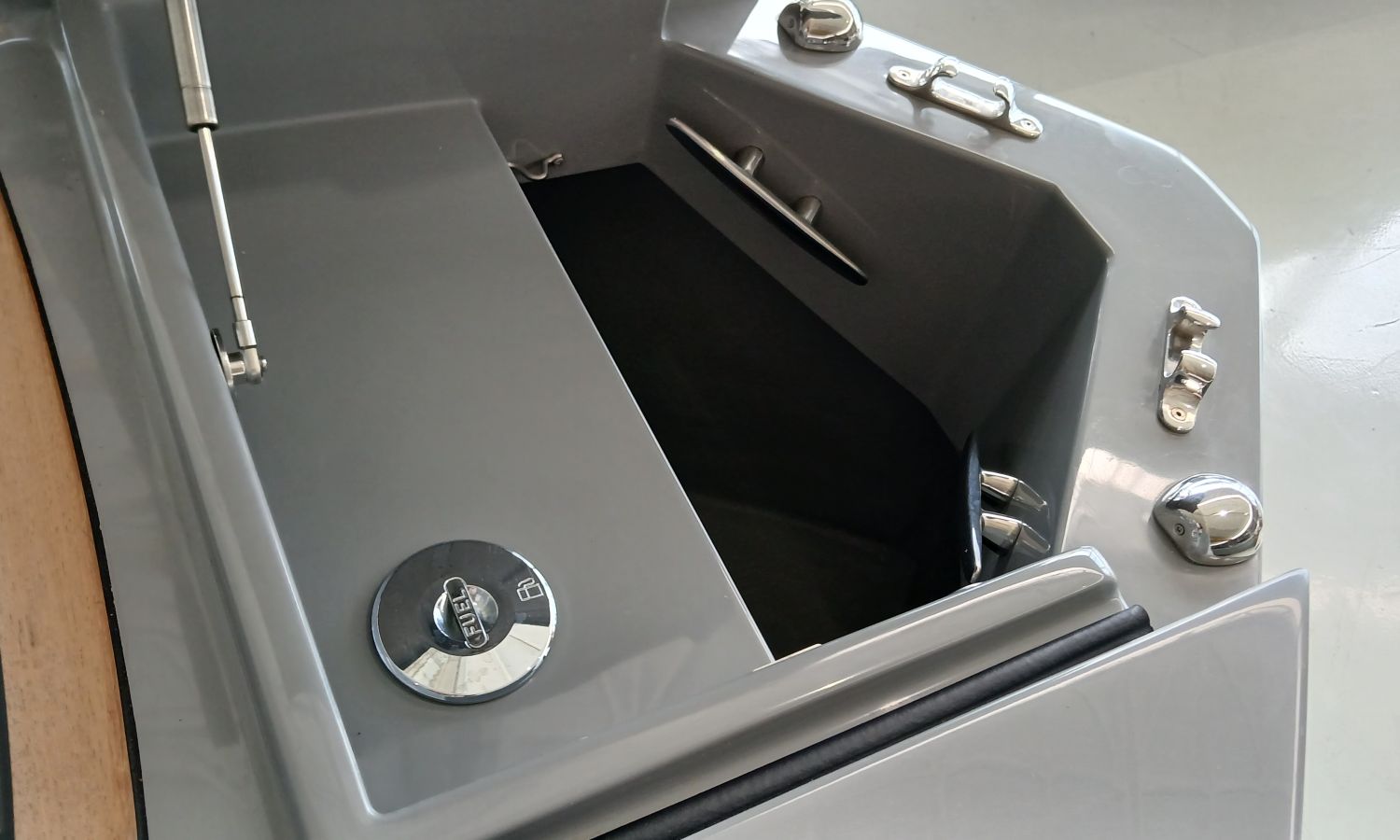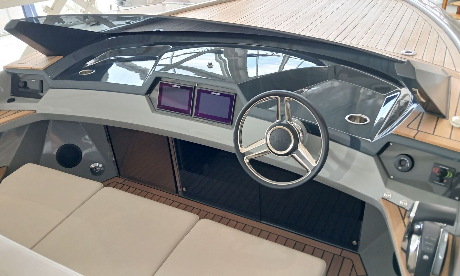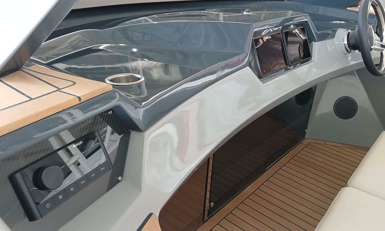 COQUE COULEUR GREY SKY (RAL 7037) - SELLERIE SILVERTEX - DEUX ECRANS RAYMARINE 7" SUR LE TABLEAU DE BORD AVEC SYSTEME DOMOTIQUE - CROCHET A SKI - DOUCHE DE COCKPIT - FEUX A LEDS DANS LE COCKPIT - DEFENSES - REFRIGERATEUR LUXE - AUVENT DE TYPE HAIMA - TOILE D'ANCRE - CAPTEUR DE PROFONDEUR - PROPULSEUR D'ETRAVE - EXTINCTEUR AUTOMATIQUE - TECK SUR PONT ET PLATEFORME DE BAIN.Description du bateau