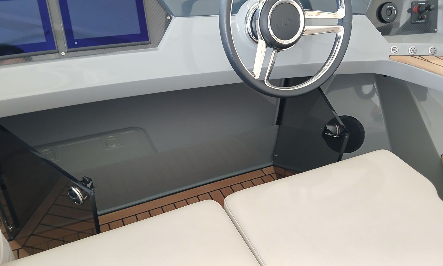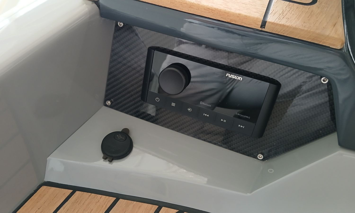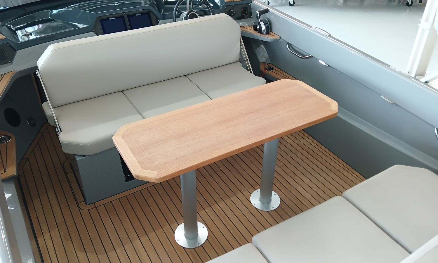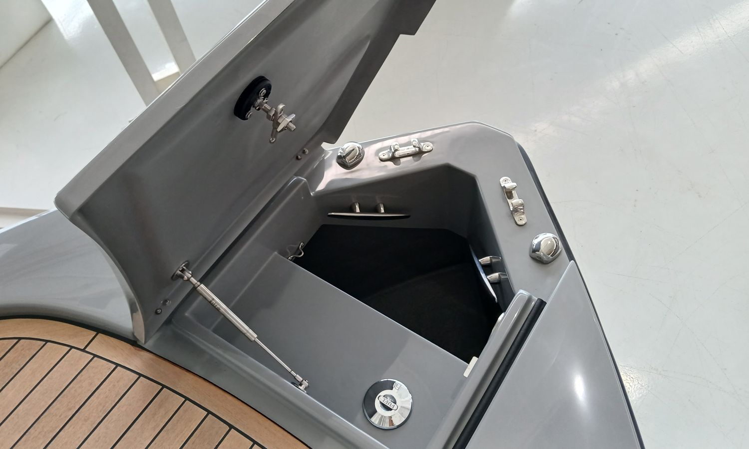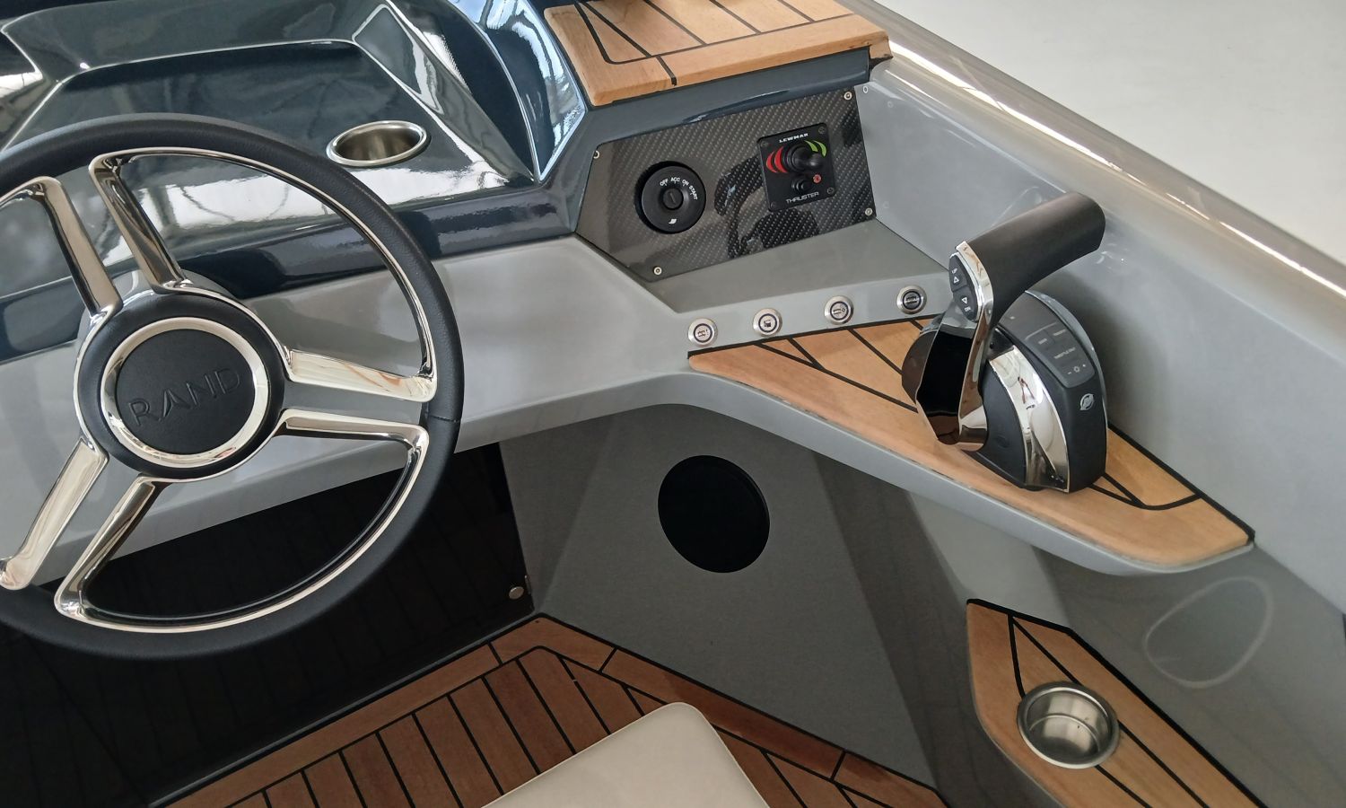 COQUE COULEUR GREY SKY (RAL 7037) - SELLERIE SILVERTEX - DEUX ECRANS RAYMARINE 7" SUR LE TABLEAU DE BORD AVEC SYSTEME DOMOTIQUE - CROCHET A SKI - DOUCHE DE COCKPIT - FEUX A LEDS DANS LE COCKPIT - DEFENSES - REFRIGERATEUR LUXE - AUVENT DE TYPE HAIMA - TOILE D'ANCRE - CAPTEUR DE PROFONDEUR - PROPULSEUR D'ETRAVE - EXTINCTEUR AUTOMATIQUE - TECK SUR PONT ET PLATEFORME DE BAIN.Description du bateau